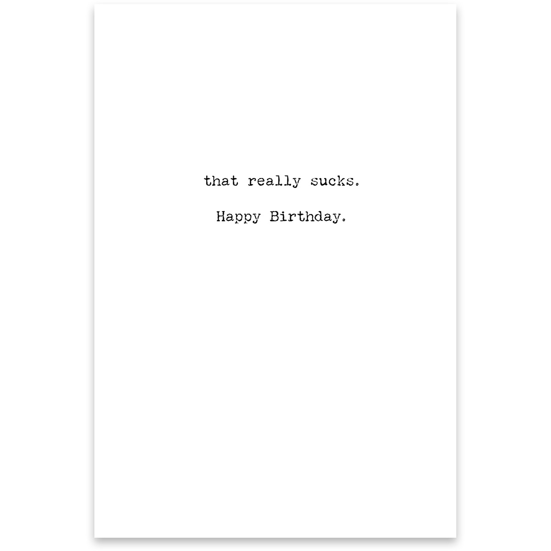 A humorous greeting card from our Trash Talk by Annie Collection features a vintage photograph with "You're Really Old…" sentiment on the outside, and "That Really Sucks. Happy Birthday." sentiment on the inside. Our Really Old greeting card is made in the USA.