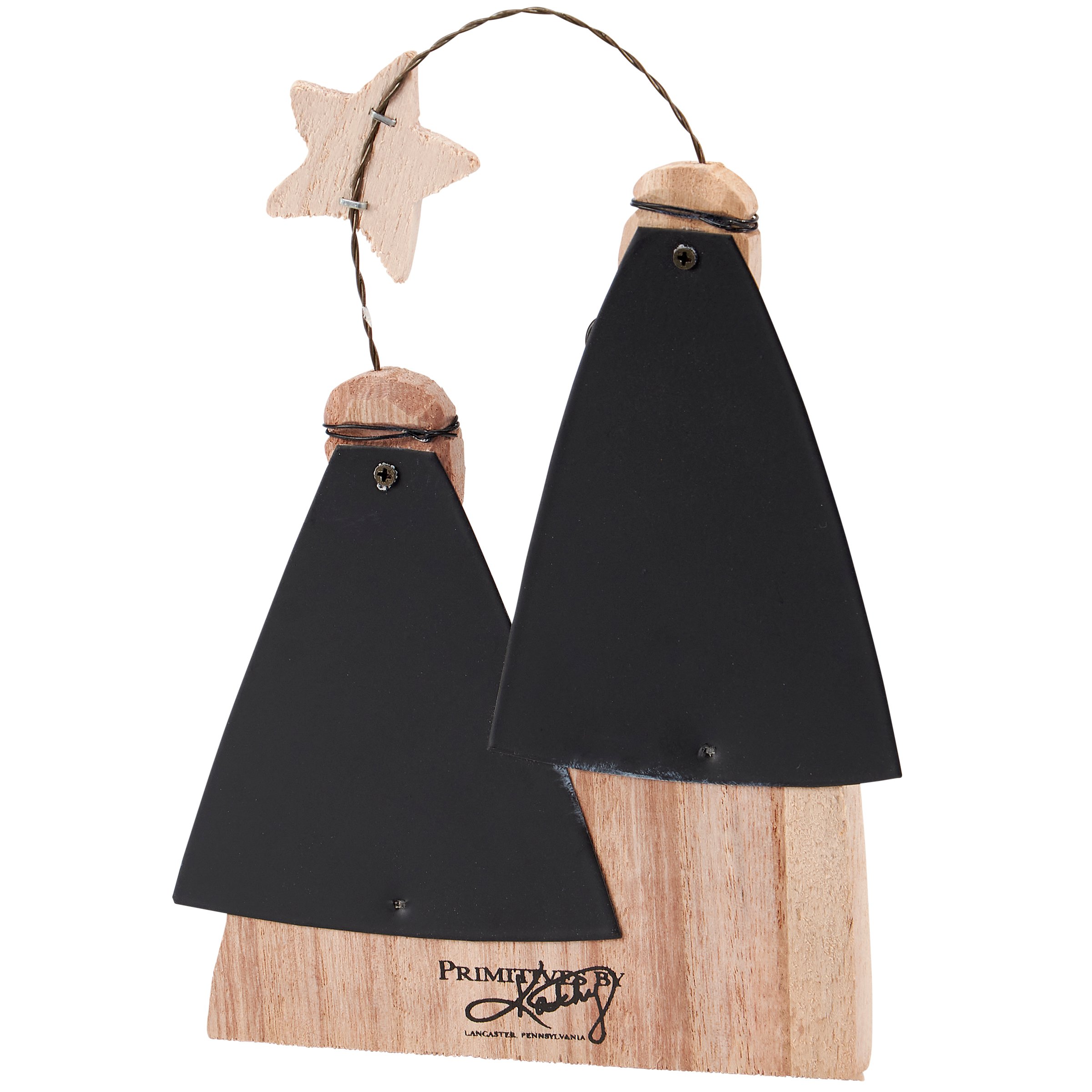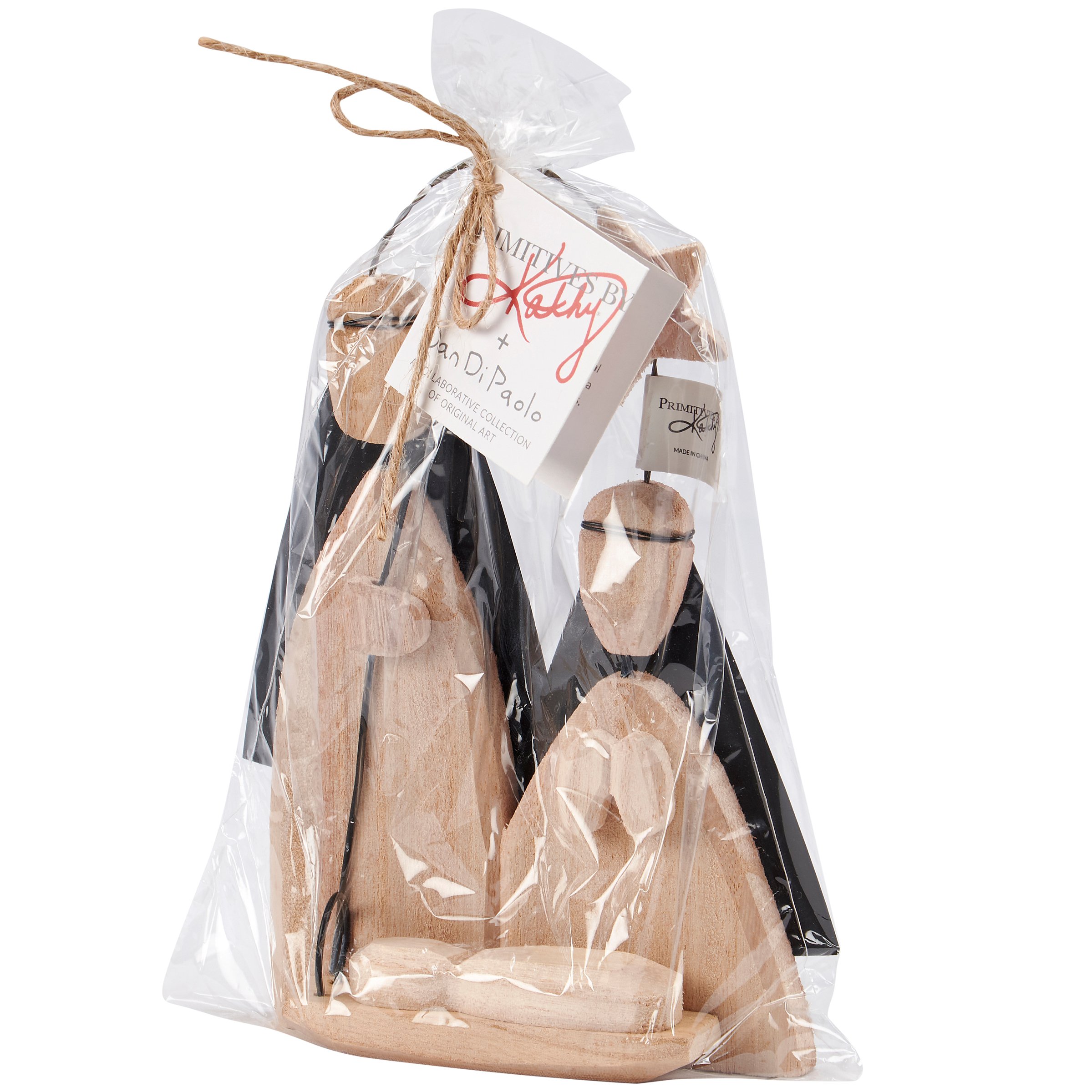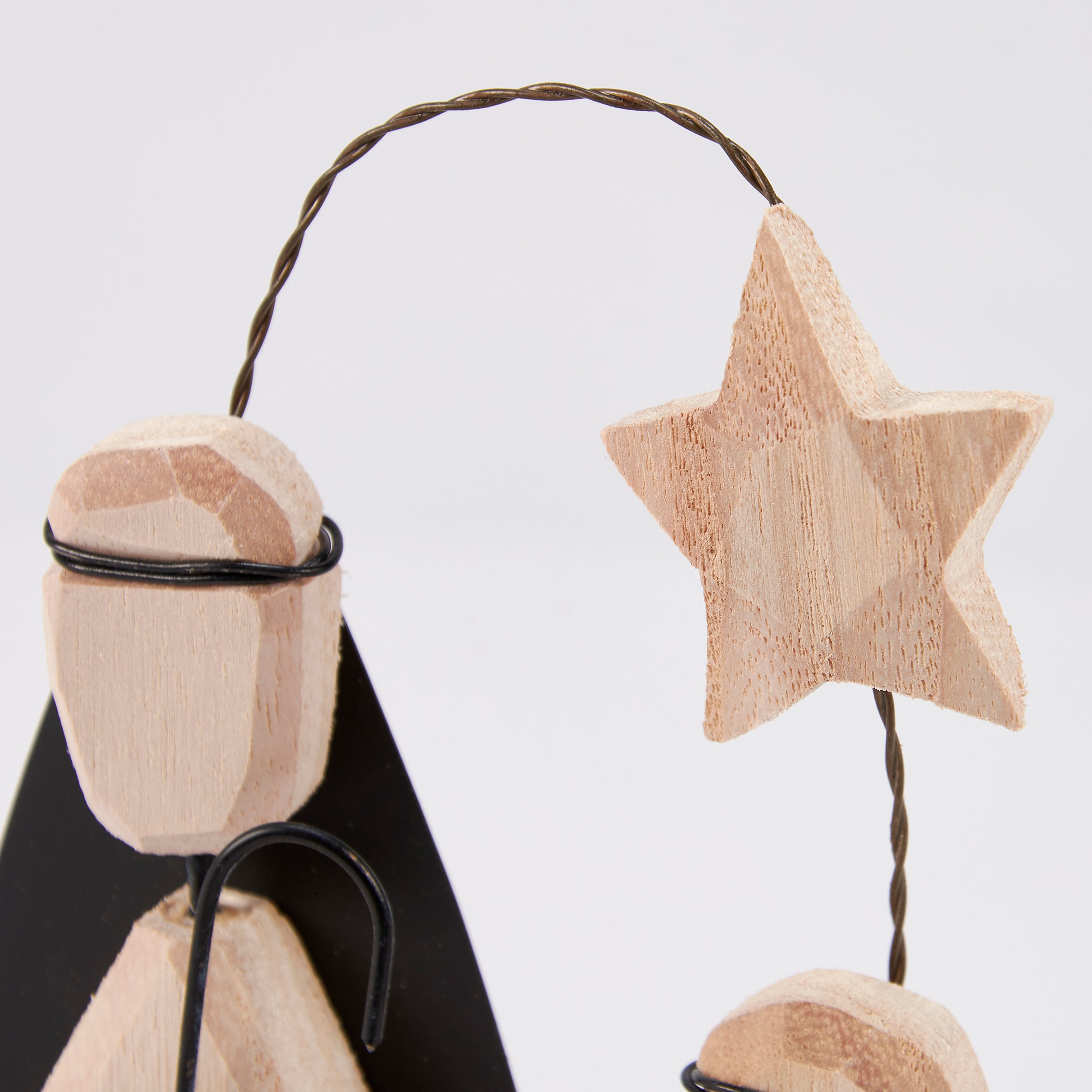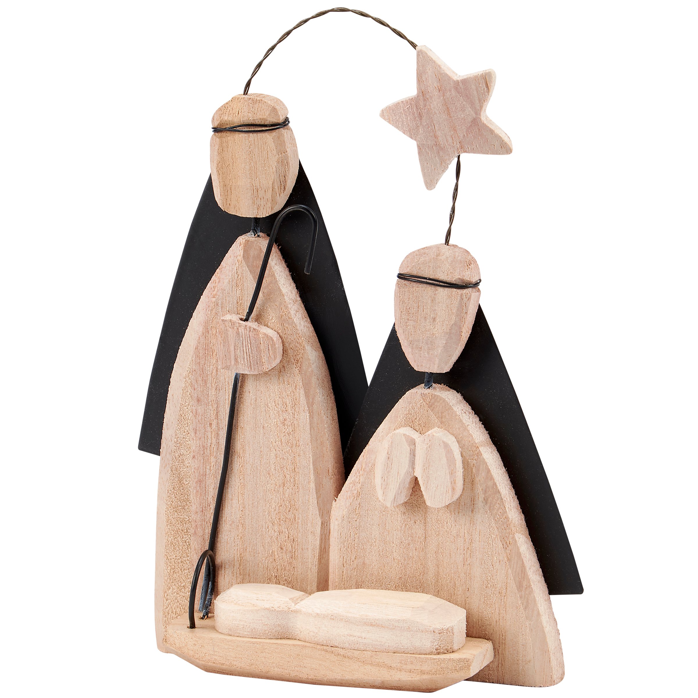 A wooden hanging decor piece from our Christmas Collection displaying a rustic nativity scene recreated from an original hand carved piece with metal accents. Nativity decor features shaped metal wire and distressed details to create a handmade feel. Our Carved Holy Family hanging decor is designed to hang via twisted wire hanger with wooden star accent or can free-stand on flat surface for display. A rustic nativity home accent perfect for seasonal display.