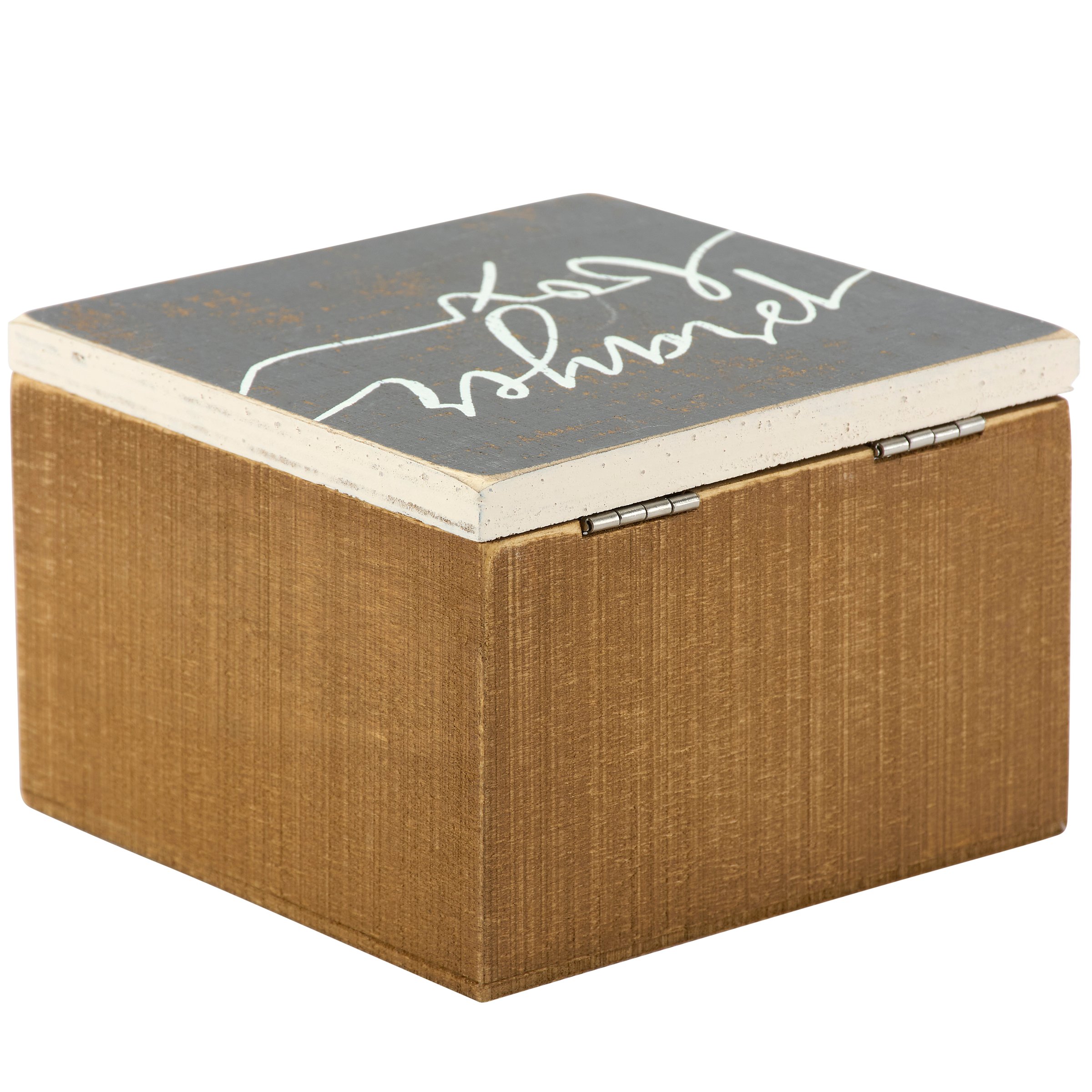A wooden hinged box from our Faith Collection features a hand lettered "Prayer Box" top sentiment in a neutral palette with natural wood trim. This Wooden Pray Box complements well with existing decor or coordinating design pieces.