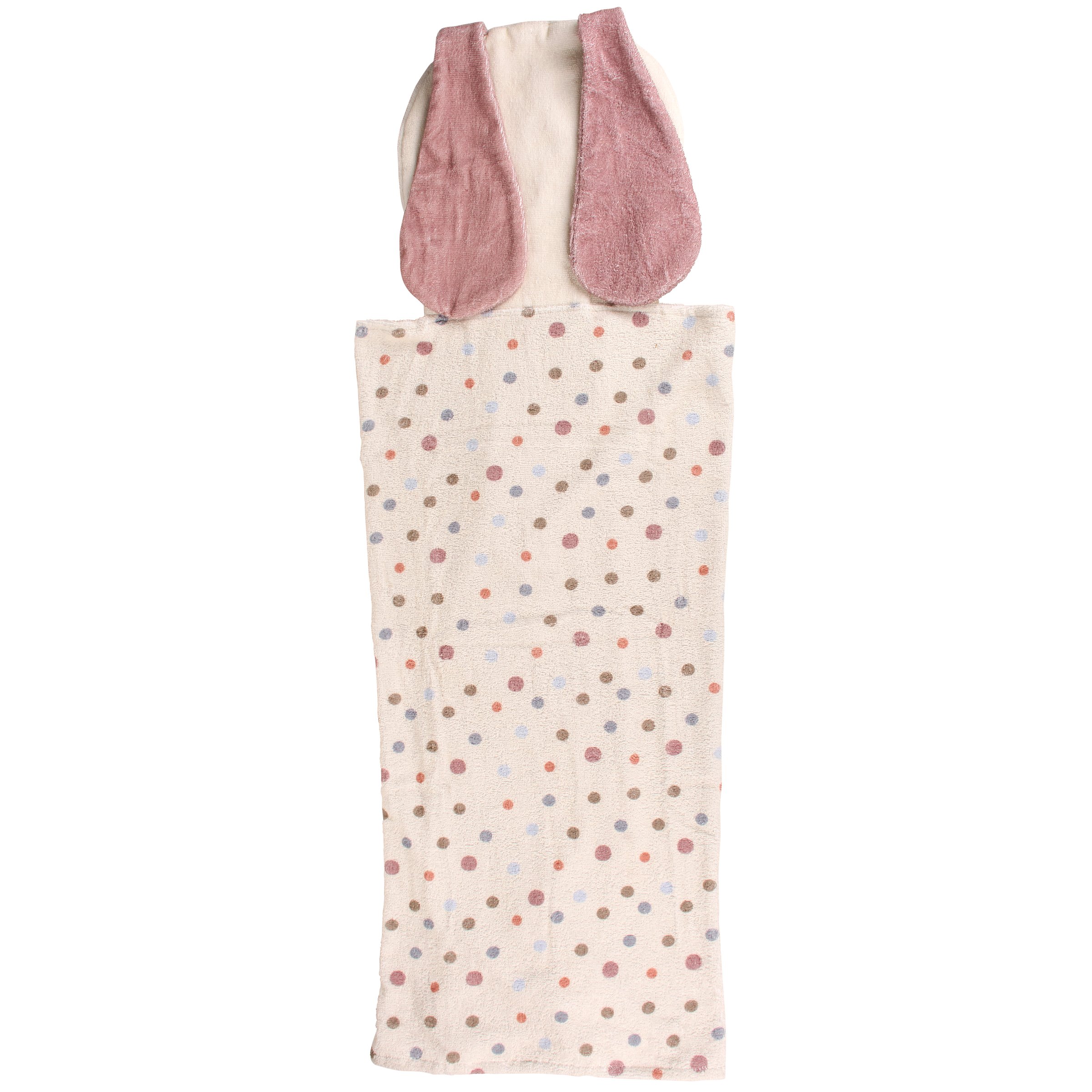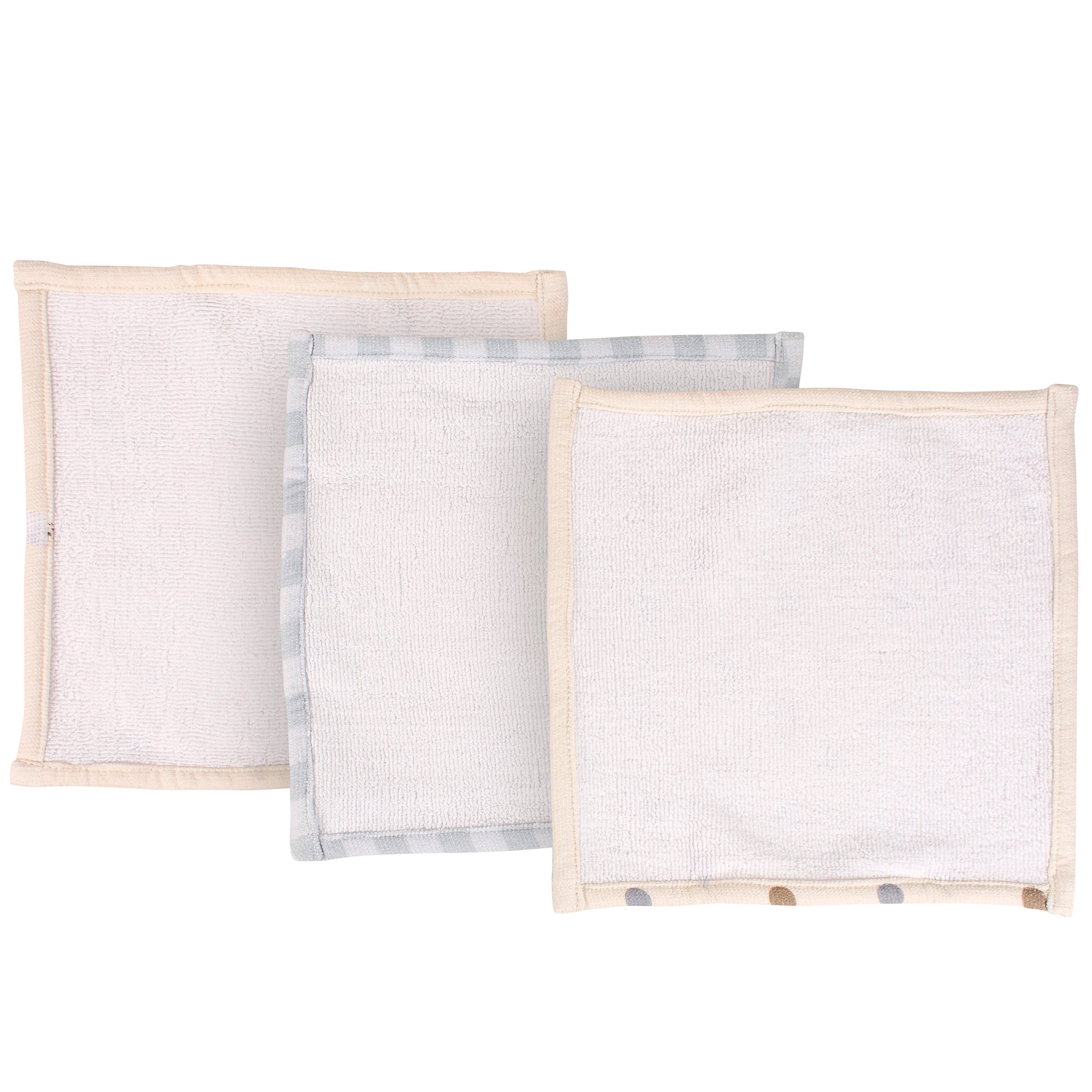 A cotton towel set from our Baby & Kids Collection that includes a children's hooded bath towel and three washcloths displaying coordinating pet inspired designs replicated from original block print style art. Children's hooded towel features absorbent terrycloth and an attached hood with puppy ear accents and embroidered face details. Washcloths display all-over designs on the front including polka dot pattern, checkered pattern, and dog pattern. Our Puppy hooded towel set is conveniently machine washable for easy cleaning. Towel set is neatly packaged together with cotton tape displaying hood design and washcloth designs as well as a product information card making it great for gifting. Recommended for ages 0-24 months. A cute pet-themed gift set perfect for baby showers or everyday moments.