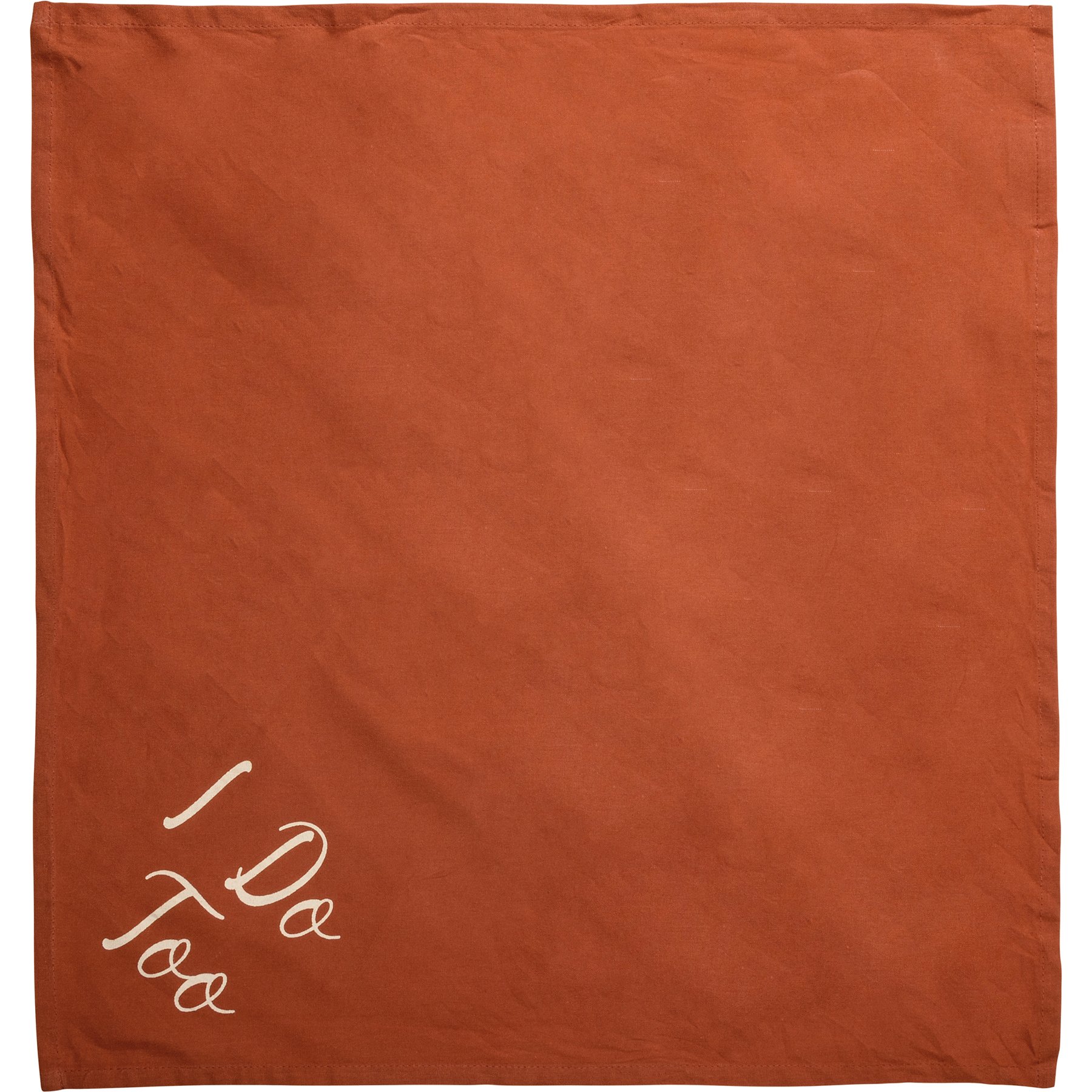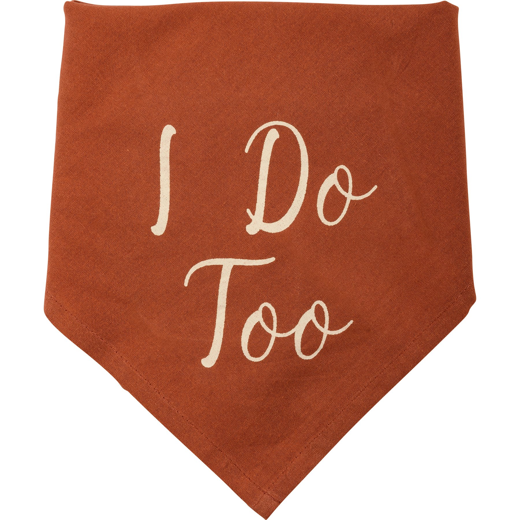 A large reversible pet bandana from our Pet Collection featuring handlettered "I Do Too" sentiment. 21" x 21". Our large I Do Too pet bandana is machine-washable.