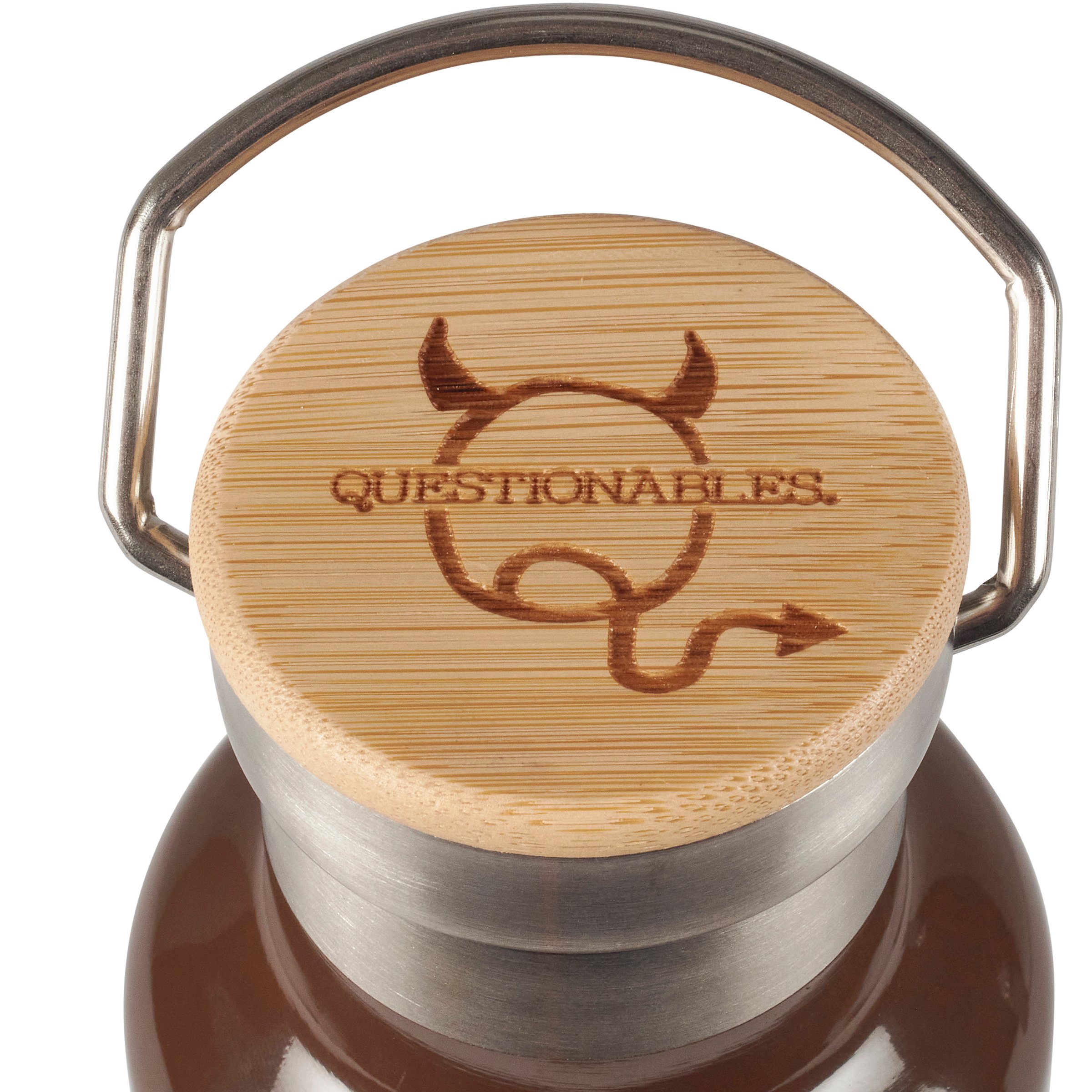 Give anyone that steps into personal space a vibe check with this insulated stainless steel water bottle displaying a full wrap-around earthy design of snails in a bold color palette. Questionables insulated bottles keep up to 25 oz beverages cold for 24 hours and hot for 12 hours and includes a coordinating lid with bamboo top. BPA free bottle is hand wash only; do not microwave. Our Snails insulated bottle is an everyday accessory with a down-to-earth style perfect for staying hydrated on-the-go or at home.