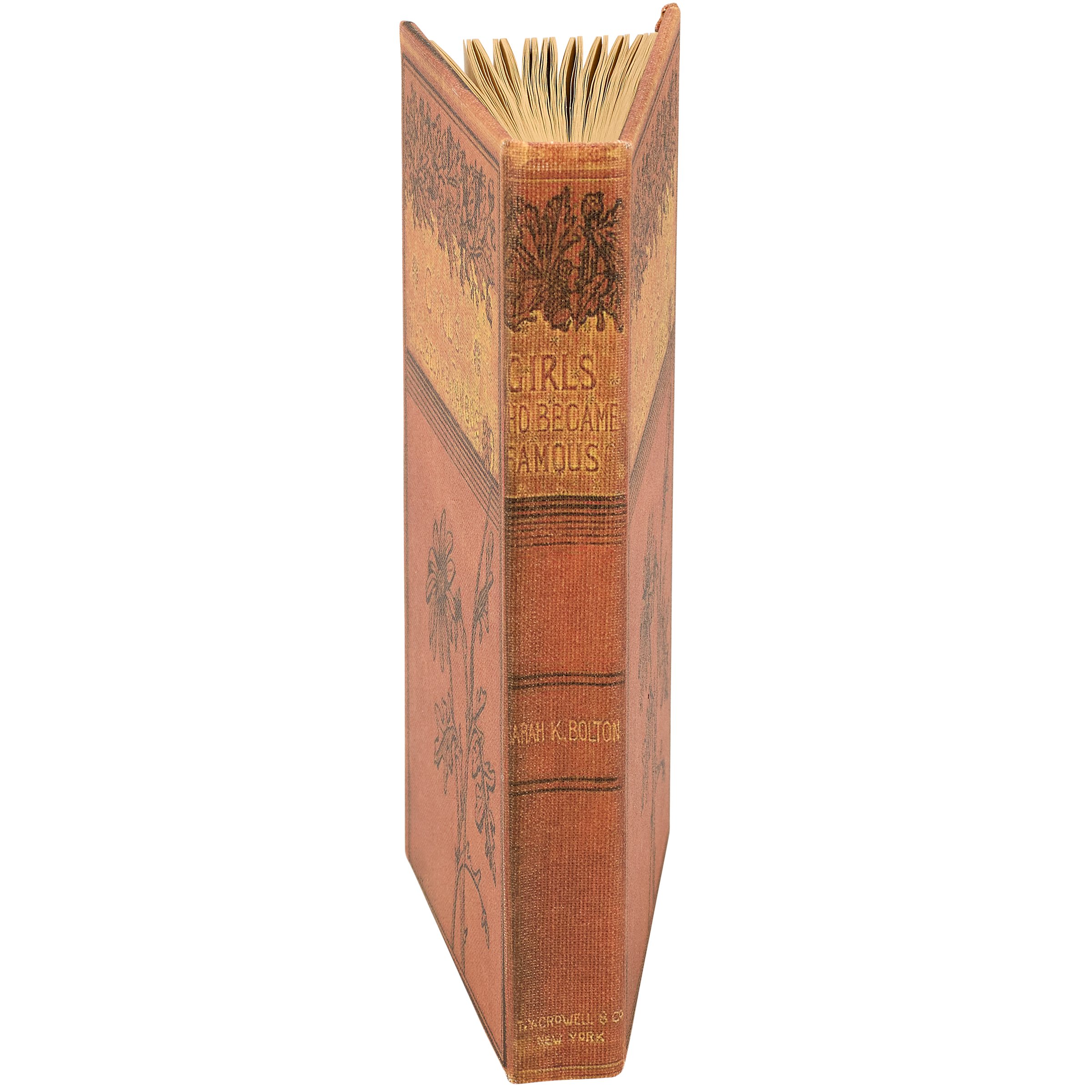 A high-quality decorative journal from our Dark Academia Collection displaying a vintage book inspired double-sided design. Vintage book design features a textured linen wrap with illustrated florals and book title that reads "Girls Who Became Famous." Journal spine also displays a coordinating design with book title and author to give the appearance of a book when on a shelf. Our Famous Girls journal includes 170 lined pages on vintage style paper to complete the aged appearance. A vintage book-themed gift perfect for any home office or desk.