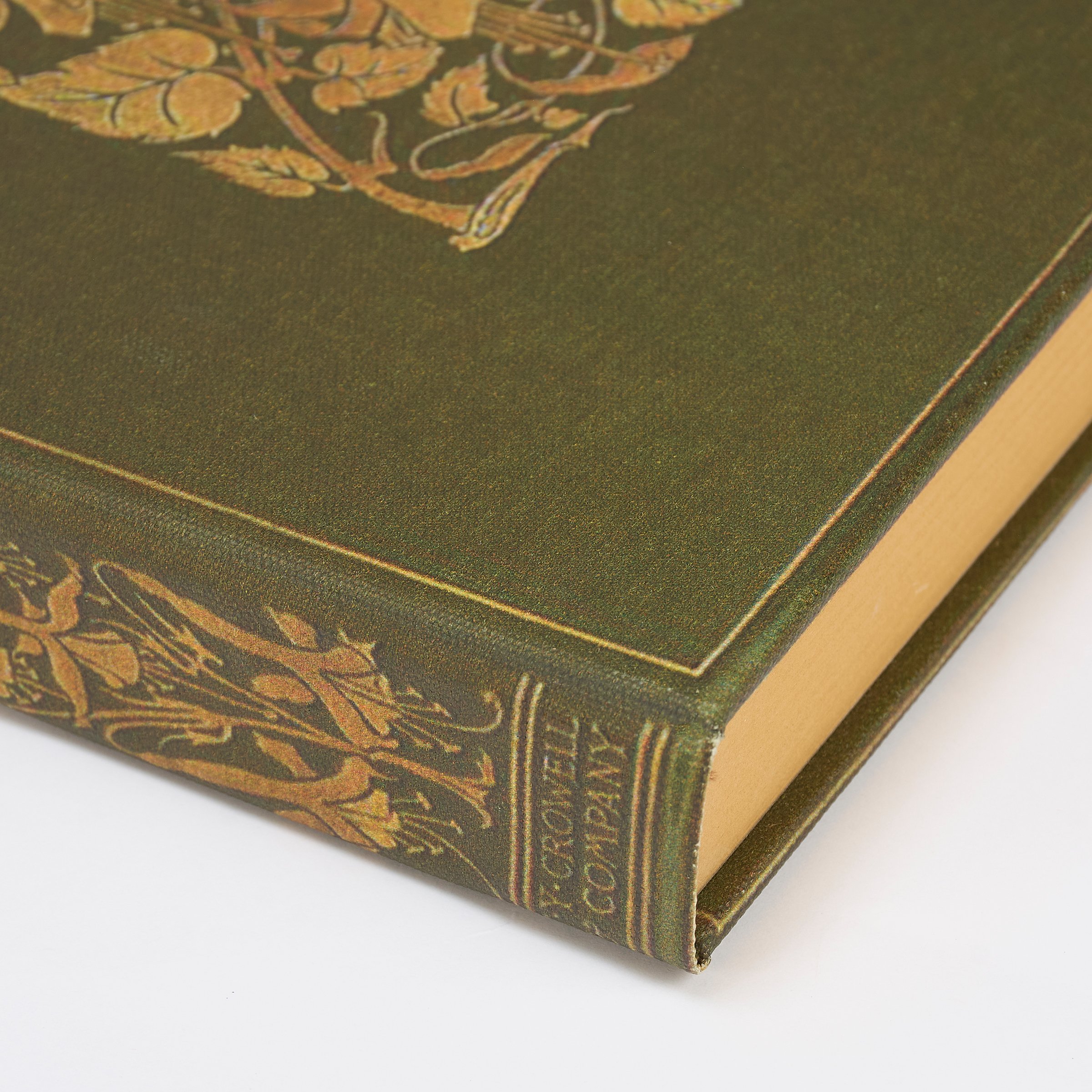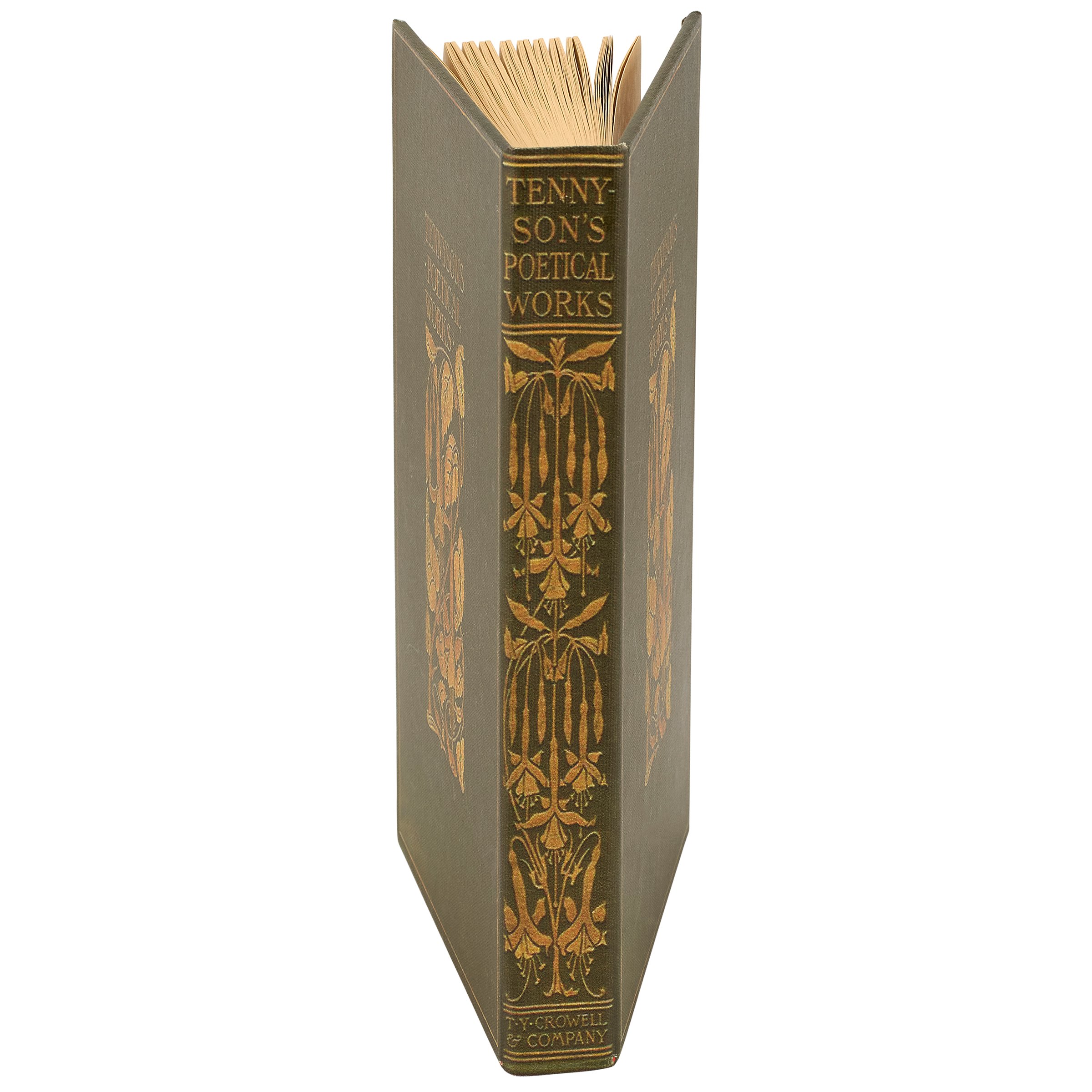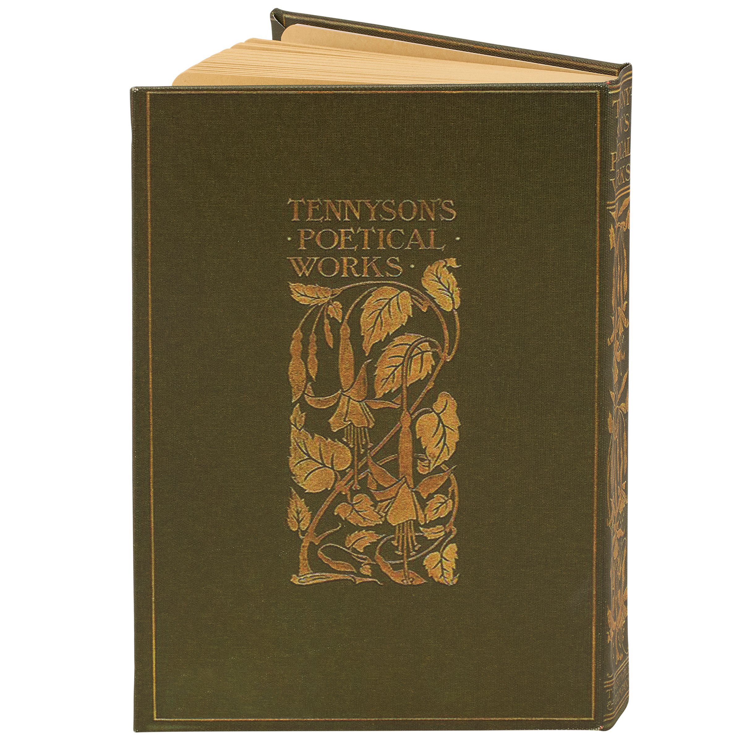 A high-quality decorative journal from our Dark Academia Collection displaying a vintage book inspired double-sided design. Vintage book design features a textured canvas wrap with illustrated florals and book title that reads "Tennyson's Poetical Works." Journal spine also displays a coordinating design with book title and author to give the appearance of a book when on a shelf. Our Tennyson's Poetical Works journal includes 170 lined pages on vintage style paper to complete the aged appearance. A vintage book-themed gift perfect for any home office or desk.