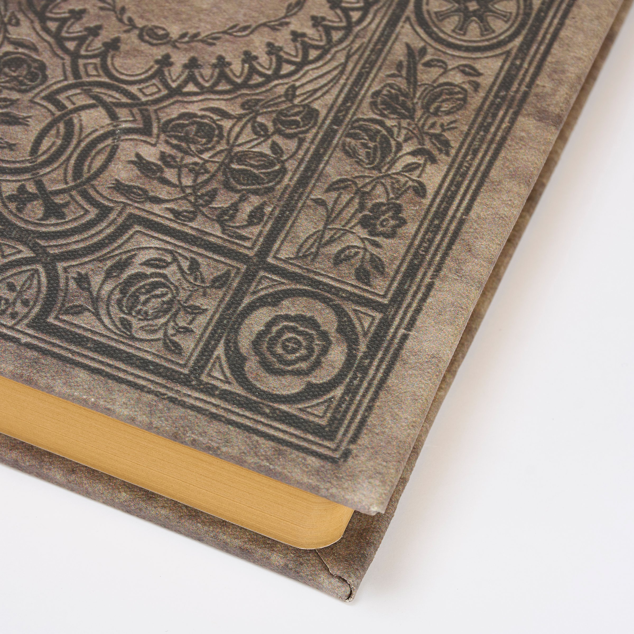 A high-quality decorative journal from our Dark Academia Collection displaying a vintage book inspired design. Vintage book design features a textured canvas wrap with distressed details displaying a damask inspired front cover. Journal spine also displays a coordinating design to give the appearance of a book when on a shelf. Our Vintage Damask journal includes 170 lined pages on vintage style paper to complete the aged appearance. A vintage book-themed gift perfect for any home office or desk.