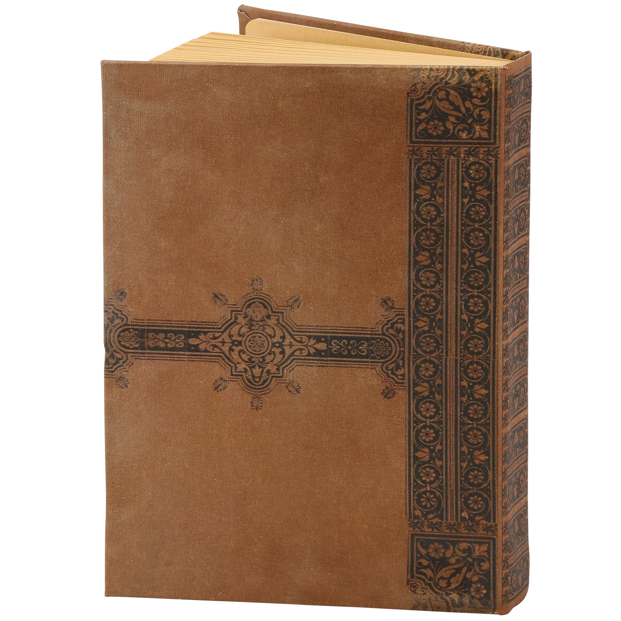 A high-quality jdecorative ournal from ourĀ Dark Academia Collection displaying a vintage book inspired design. Vintage book design features a textured canvas wrap with distressed details displaying a vintage emblem design on the covers. Journal spine also displays a coordinating design to give the appearance of a book when on a shelf. Our Vintage Emblem journal includes 170 lined pages on vintage style paper to complete the aged appearance. A vintage book-themed gift perfect for any home office or desk.