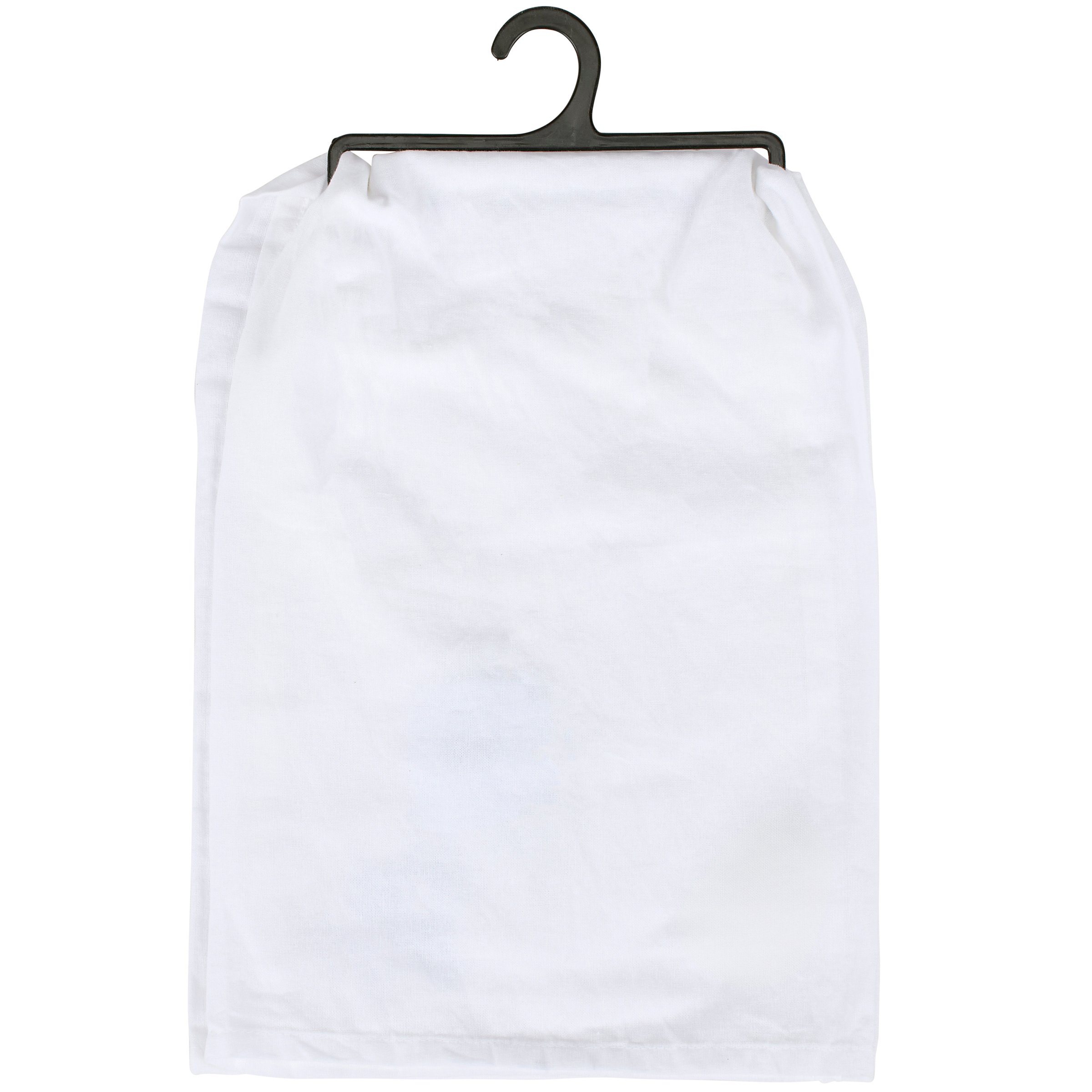 A black and white cotton kitchen towel from our Valentine's Day Collection displaying a playful hand illustrated design of cuddling cats and their tails making a heart with red illustrated accents and a fun love-themed sentiment that reads "I'd Spend All 9 Lives With You!" Our All 9 Live With You kitchen towel is conveniently machine-washable for easy cleaning. Seasonal kitchen towel is packaged on a black plastic hanger to easily display on rack. A fun cat-themed Valentine's Day gift perfect for a seasonal kitchen accessory.