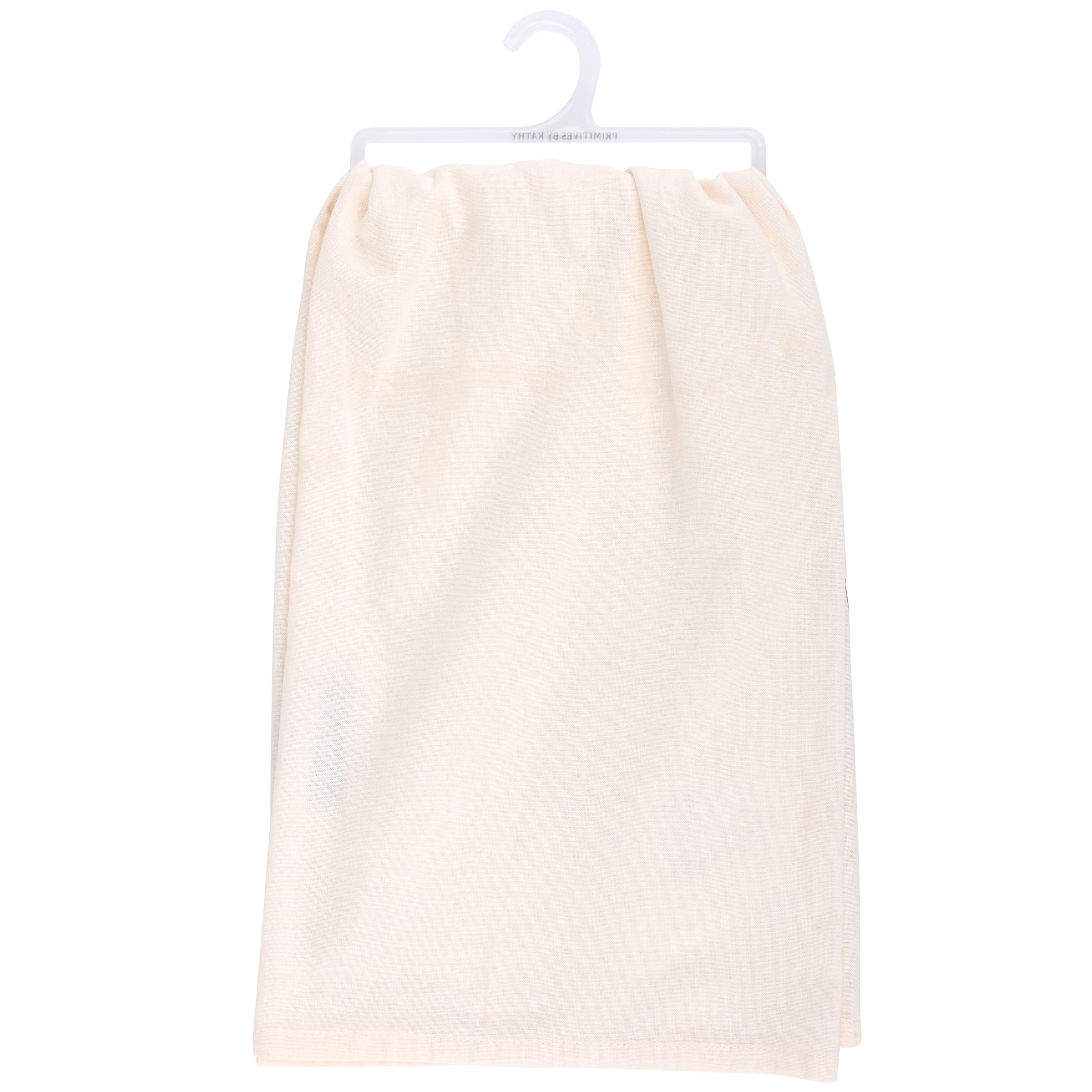 A cotton kitchen towel from our Primitive Collection displaying a rustic design of a coffee cup character wearing sunglasses with a sassy coffee themed sentiment that reads "Don't Talk, Just Pour." Our Don't Talk Just Pour kitchen towel is conveniently machine-washable for easy cleaning. Coffee kitchen towel is packaged on a clear plastic hanger to easily display on rack. A fun coffee themed gift perfect for adding personality to any kitchen.