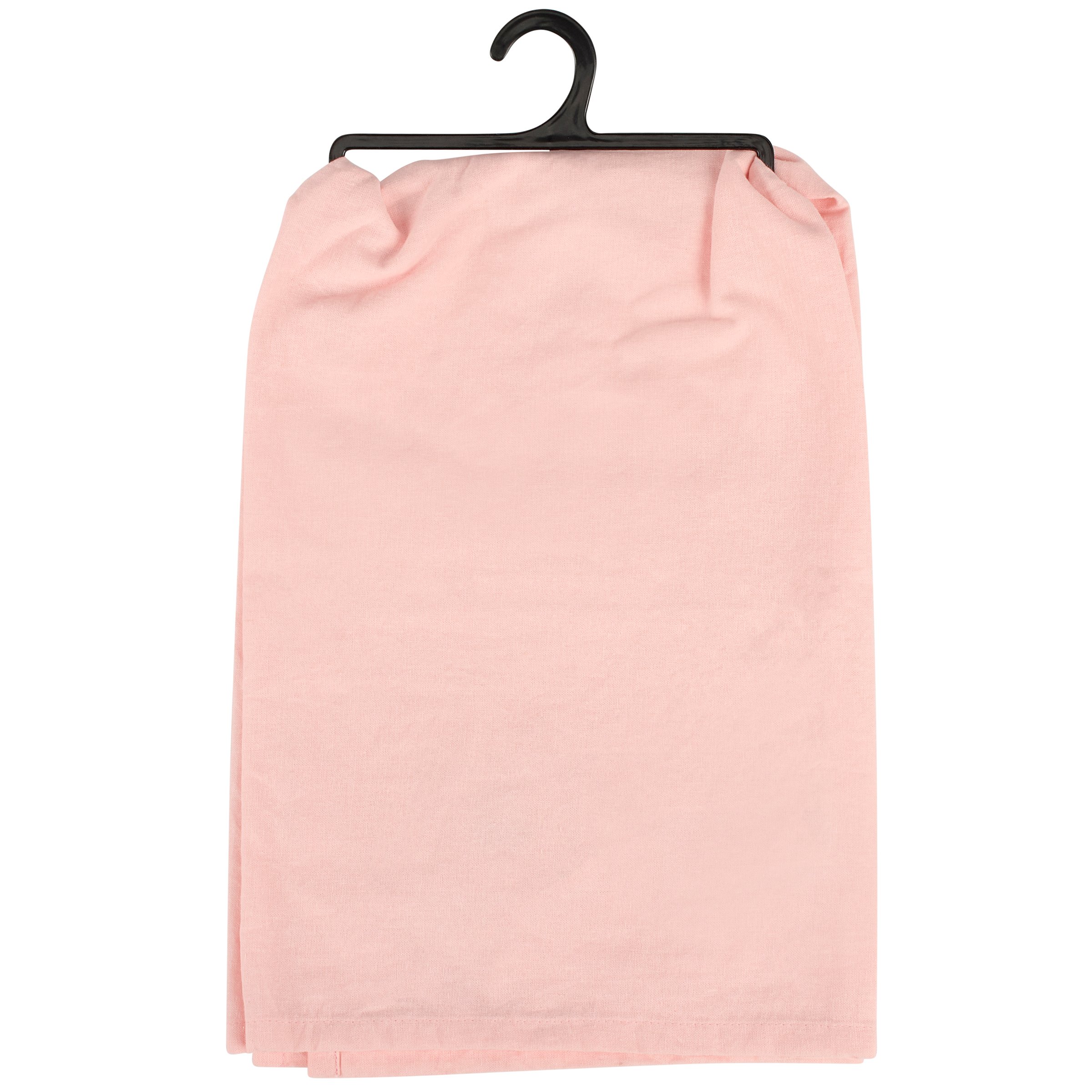 A pink cotton kitchen towel from our Easter & Spring Collection displaying a playful hand illustrated design of a tipped over Easter basket with Easter eggs and chocolate bunny above a funny Easter sentiment that reads "Easter Egg Hunts: Proof Your Child Can Find Things When They Really Want To." Our Easter Egg Hunts kitchen towel is conveniently machine-washable for easy cleaning. Easter kitchen towel is packaged on a black plastic hanger to easily display on rack. A fun Easter kitchen accessory perfect for adding seasonal style to any kitchen.