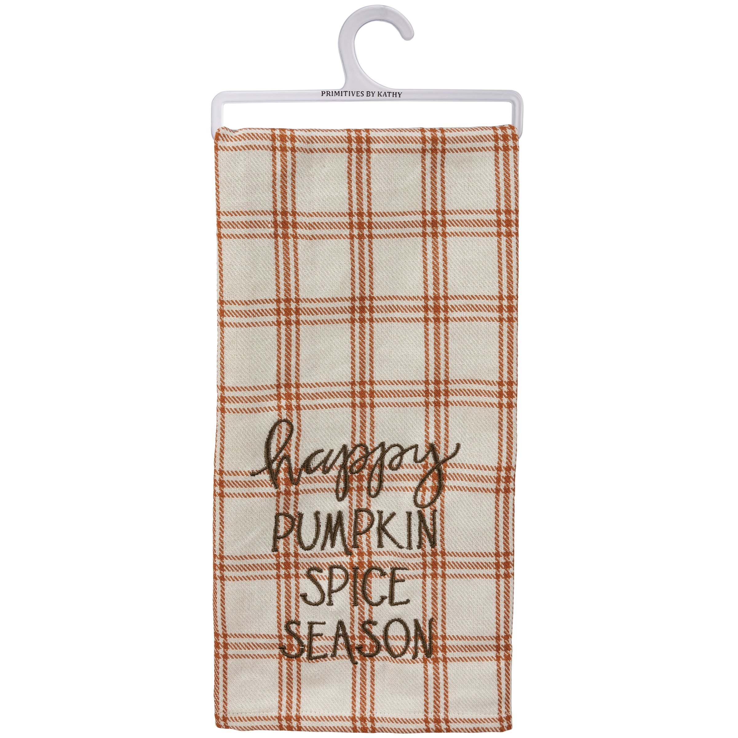 Happy Pumpkin Spice Season Plaid Kitchen Towel
