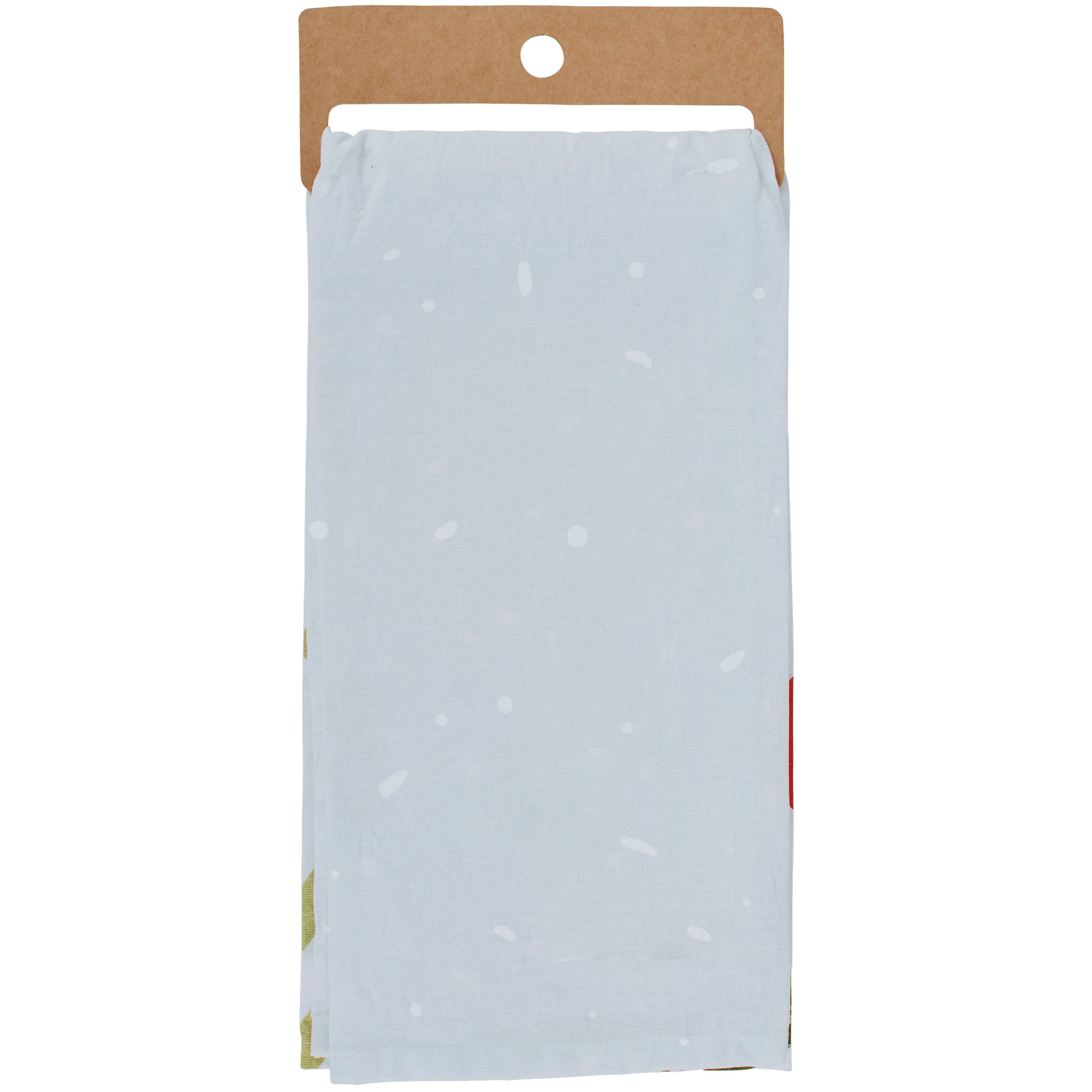 A cotton kitchen towel from our Christmas Collection displaying a cardinal on a branch and all-over snow design in a unique hand illustrated style with an uplifting sentiment that reads "Heaven May Be Far Away But We Know You're Here With Us Every Day." Our Here With Us Every Day kitchen towel is machine-washable for convenient cleaning. Packaged on a cardboard hanger with hole to easily display on rack. A lovely and functional seasonal kitchen accent.