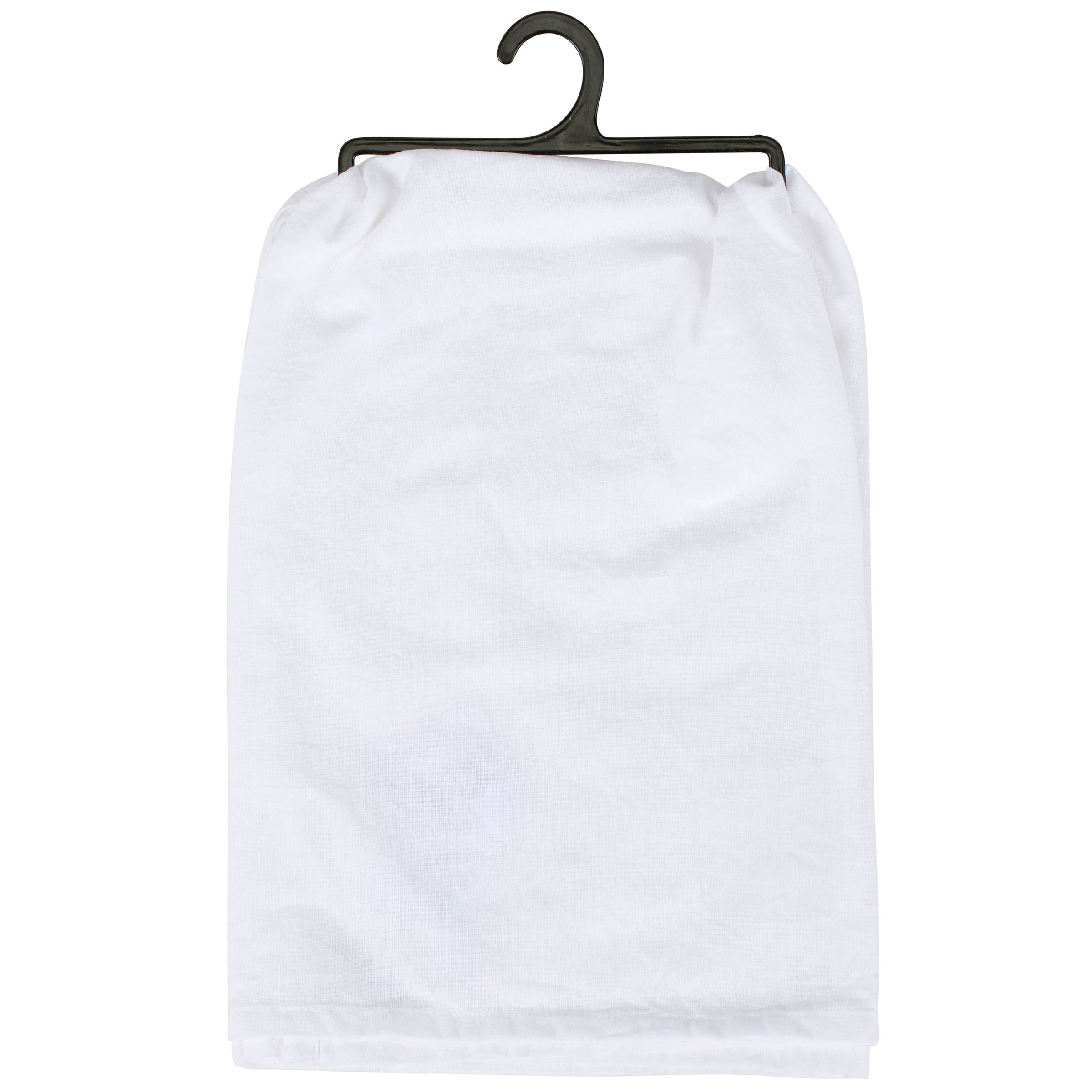 A black and white cotton kitchen towel from our Valentine's Day Collection displaying a playful hand illustrated design of sad dog with red heart accents and a fun love-themed sentiment that reads "Life Without You Would Be... Ruff!" Our Life Without You Would Be Ruff kitchen towel is conveniently machine-washable for easy cleaning. Seasonal kitchen towel is packaged on a black plastic hanger to easily display on rack. A fun dog-themed Valentine's Day gift perfect for a seasonal kitchen accessory.