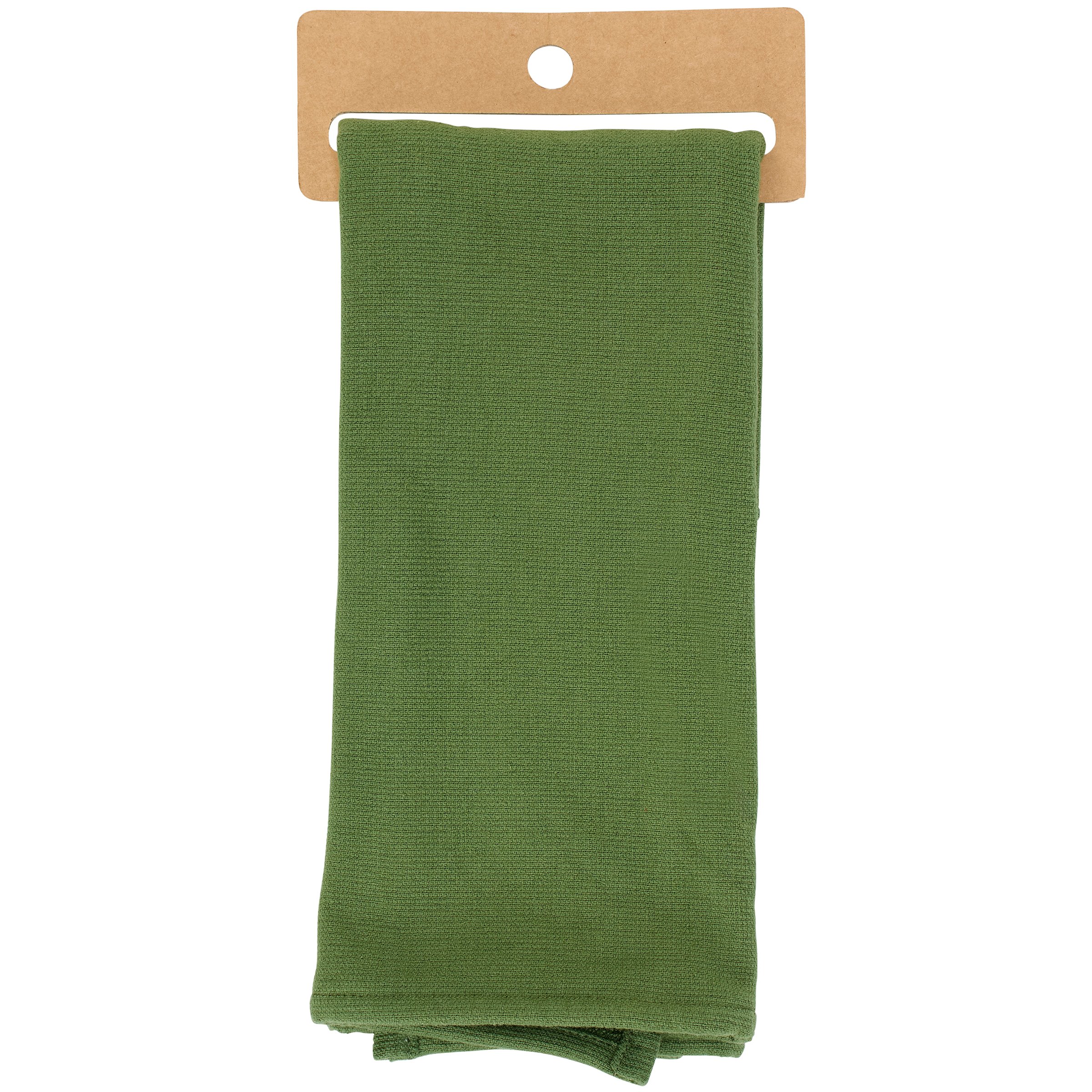 A cotton kitchen towel from our Christmas Collection featuring a farm inspired Christmas design with a stitched art panel and on holiday green towel. Art panel displays a charming winter scene of an angus cow wearing a holiday wreath replicated from original artwork painted onto burlap canvas, giving the art a unique depth and texture. Christmas cow kitchen towel features a terrycloth layer on the back for added absorbency. Our Snowy Angus kitchen towel is conveniently machine-washable for easy cleaning. Seasonal kitchen towel is packaged on a cardboard hanger with hole to easily display on rack. A farm-themed Christmas kitchen accessory perfect for seasonal use.