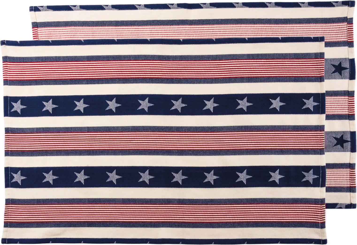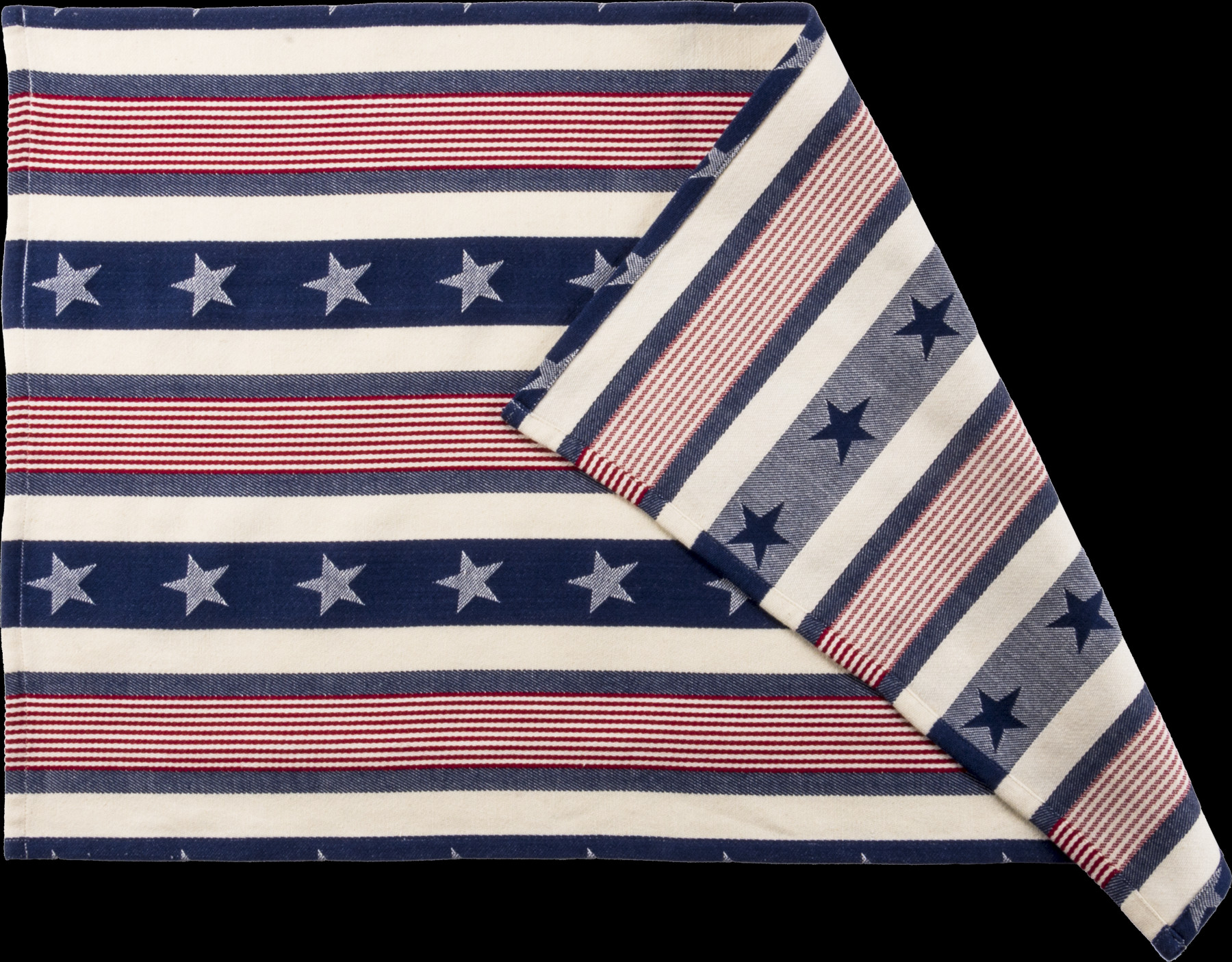 A patriotic-inspired double-sided kitchen towel from our Patriotic Collection featuring 100% cotton jacquard woven thread and stars and stripes design. This Stars and Stripes kitchen towel is machine-washable.