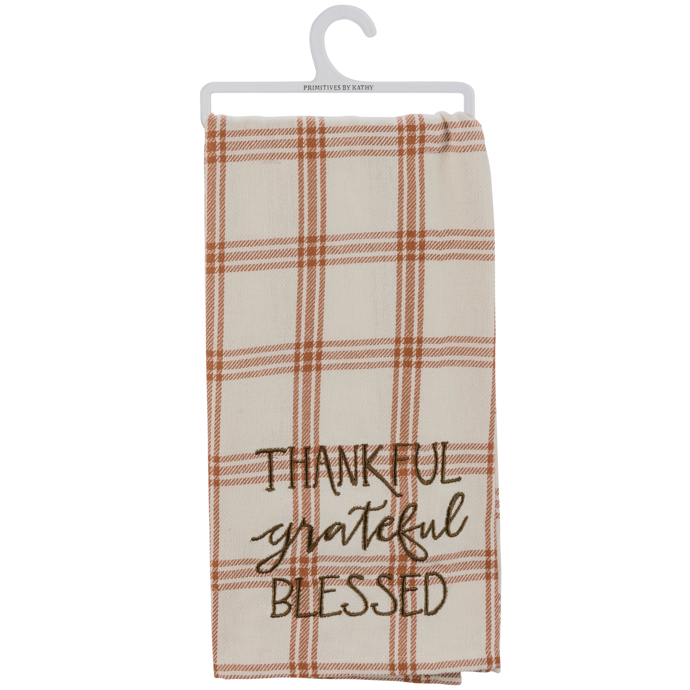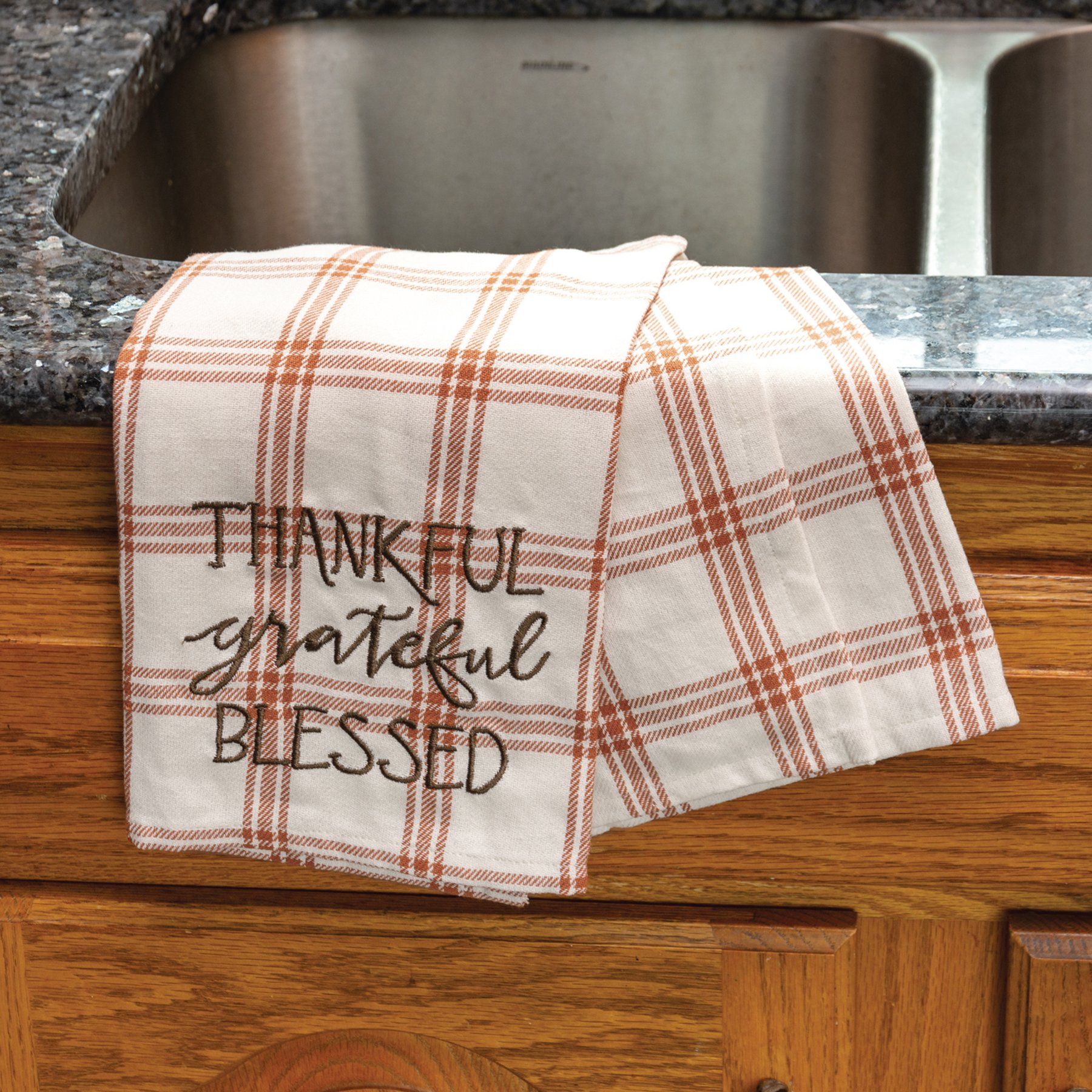 Thankful Grateful Blessed Plaid Kitchen Towel