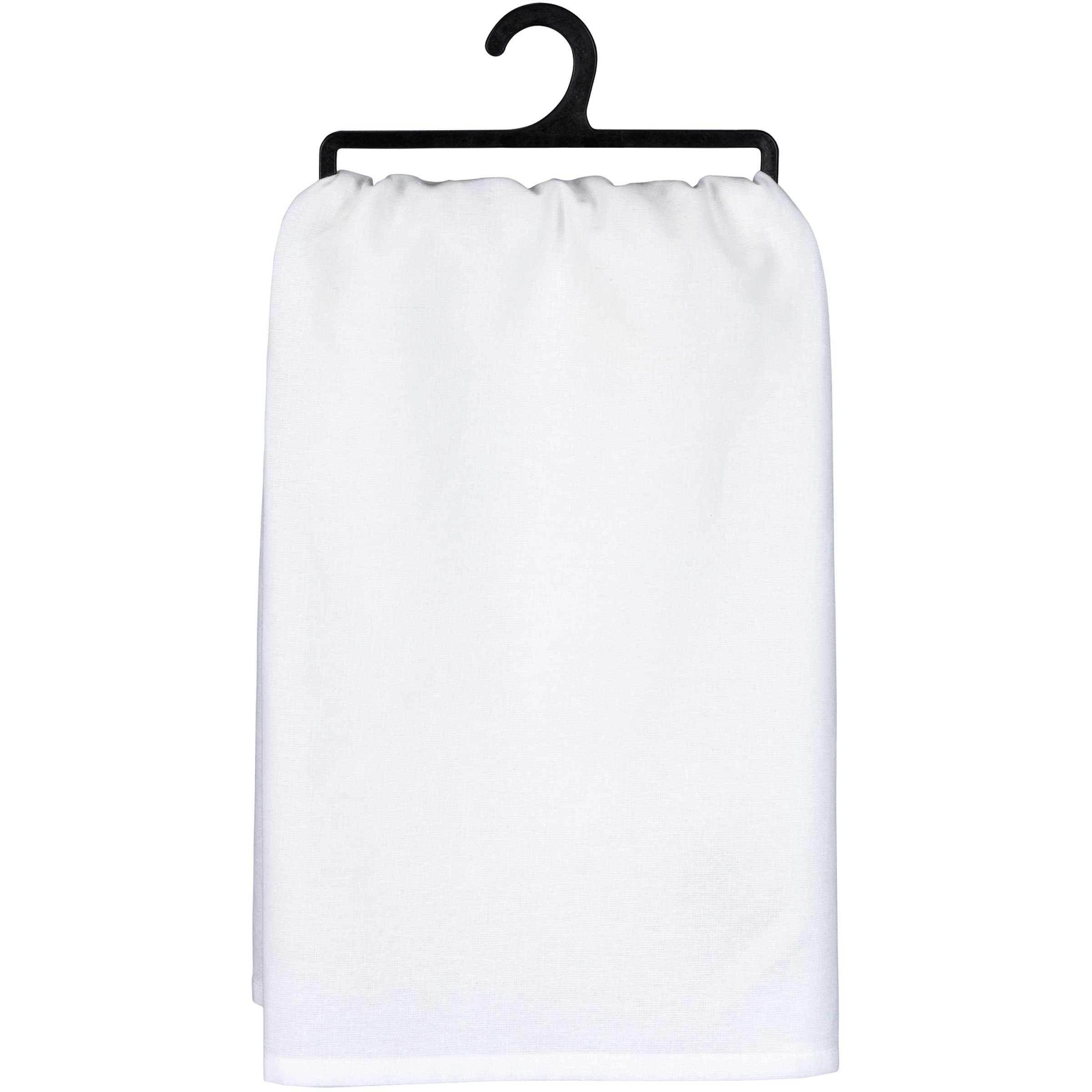 A black and white cotton kitchen towel from our Pet Collection displaying a fun hand illustrated design of a cat knocking over a drink with a humorous sentiment that reads "I'll Do What I Want." Our I'll Do What I Want kitchen towel is conveniently machine-washable for easy cleaning. Packaged on a black plastic hanger to easily display on rack. A fun pet-themed kitchen accessory perfect for everyday use.