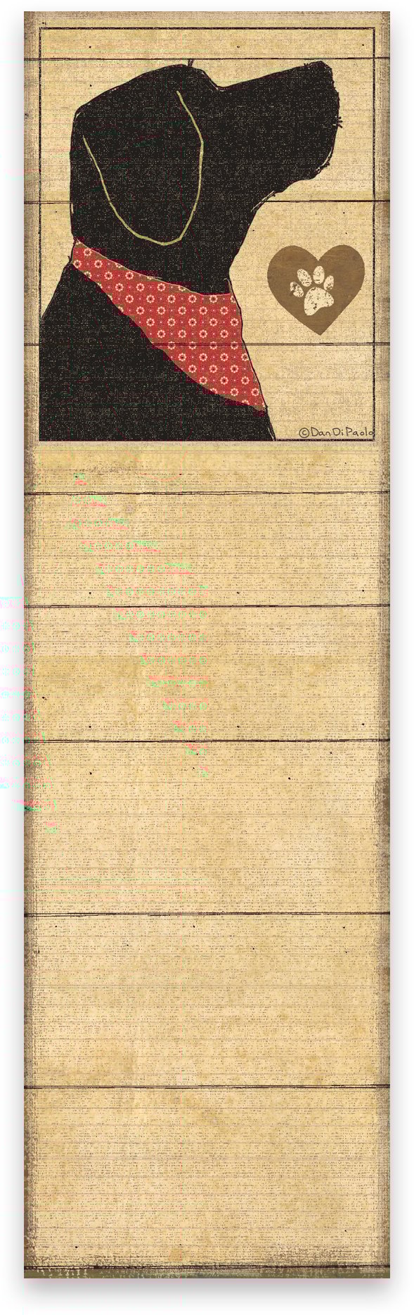 A list notepad displaying a rustic design of a dog and paw print in a heart on a slat wood background with space to write underneath. Our Dog list pad includes 60 pages and a strong magnet to easily hang on magnetic surface for display. Proudly made in the USA. A rustic pet-themed gift perfect for adding functional style to any space.