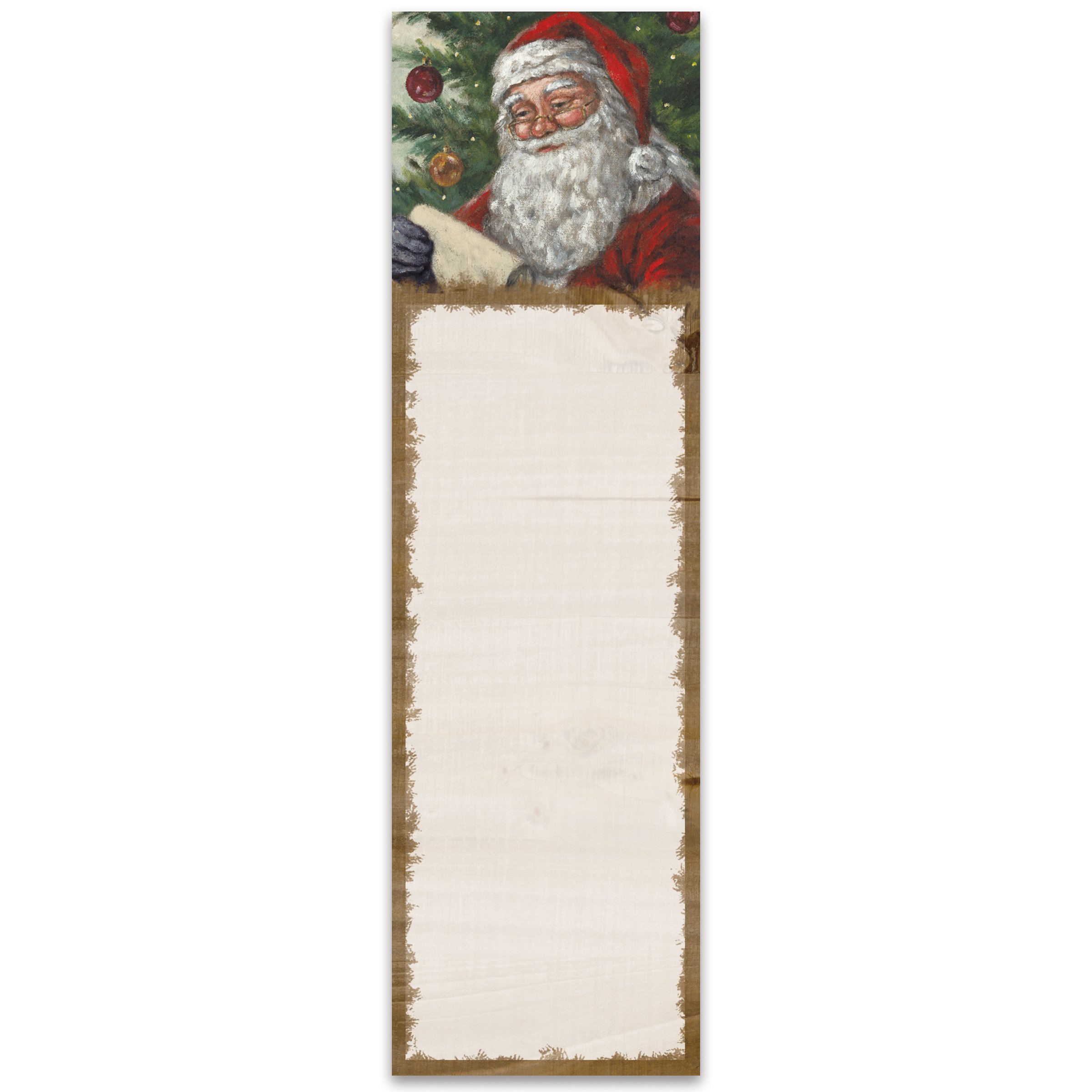 A list notepad from our Christmas Collection displaying a charming scene of Santa checking his nice list with a decorative space underneath for writing. Santa design is replicated from original artwork painted onto burlap canvas, giving the art a unique depth and texture. Our Santa's Nice List pad includes 60 pages and a strong magnet to easily hang on magnetic surface for display. Proudly made in the USA. A rustic Christmas gift perfect for adding functional style to any space.