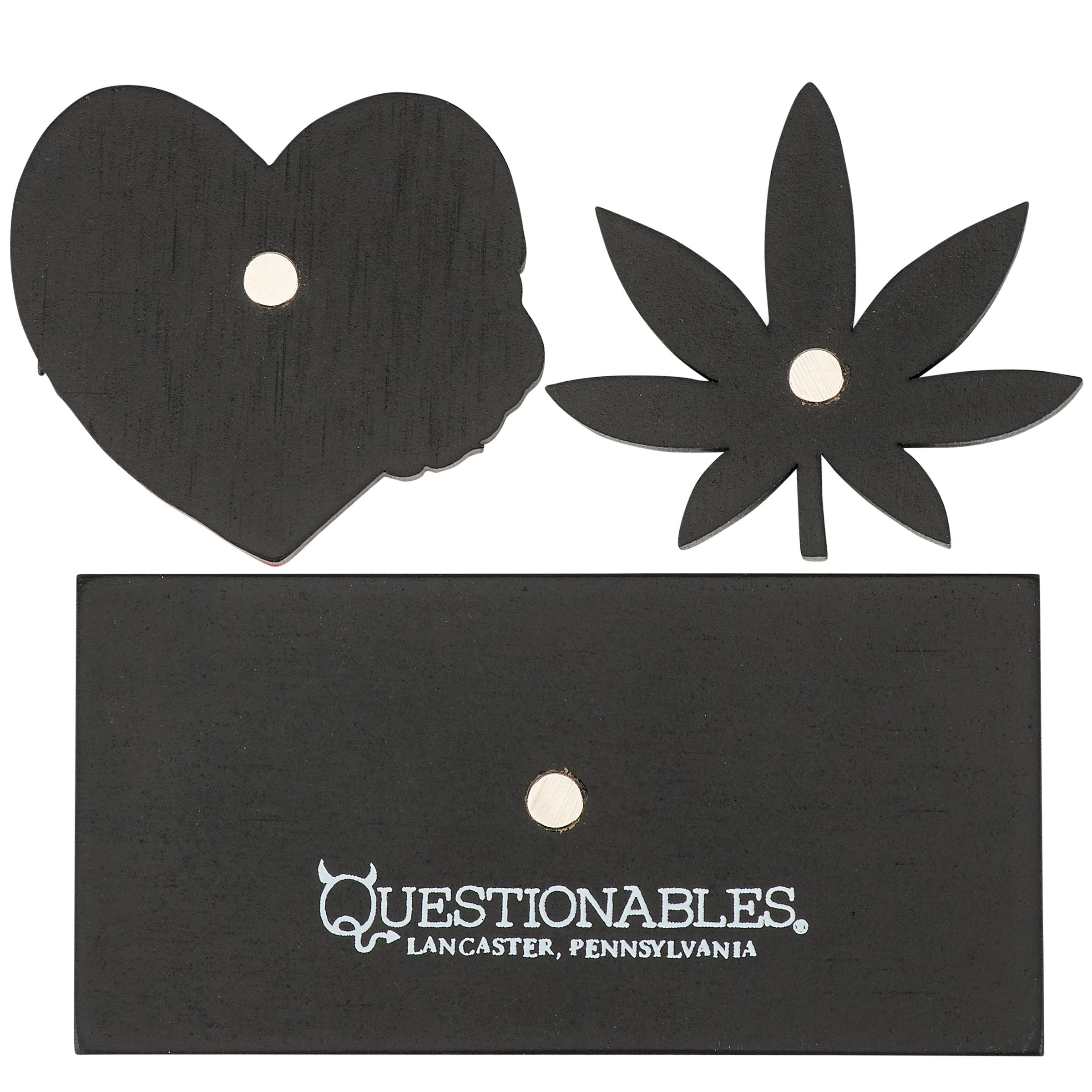 Show everyone how easy it is to get to know you with this set of 3 wooden magnets displaying colorful weed and pet inspired designs on each as well as a fun sentiment. Magnet designs include cat heads on a heart, a pot leaf, and a "Cats & Weed Are All I Need" sentiment. Questionables magnet sets are placed on a sturdy metal cards and packaged in a poly bag making it great for gifting with a hole in the card for easy store rack display. Our Cats & Weed All I Need magnet set is perfect for adding personality to any space.