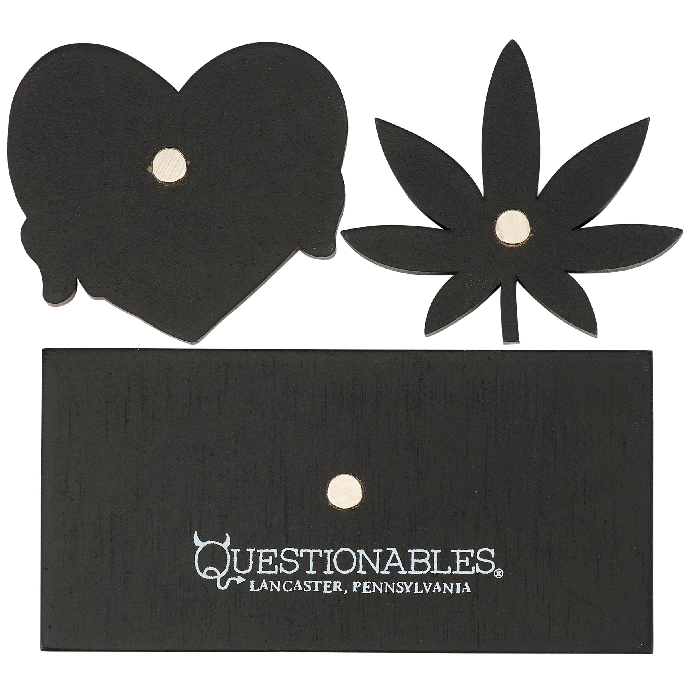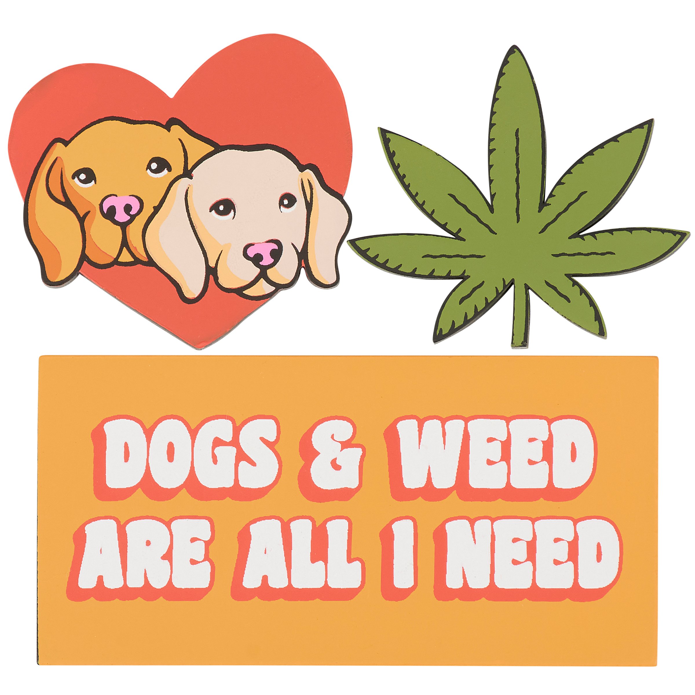 Show everyone how easy it is to get to know you with this set of 3 wooden magnets displaying colorful weed and pet inspired designs on each as well as a fun sentiment. Magnet designs include dog heads on a heart, a pot leaf, and a "Dogs & Weed Are All I Need" sentiment. Questionables magnet sets are placed on a sturdy metal cards and packaged in a poly bag making it great for gifting with a hole in the card for easy store rack display. Our Dogs & Weed All I Need magnet set is perfect for adding personality to any space.