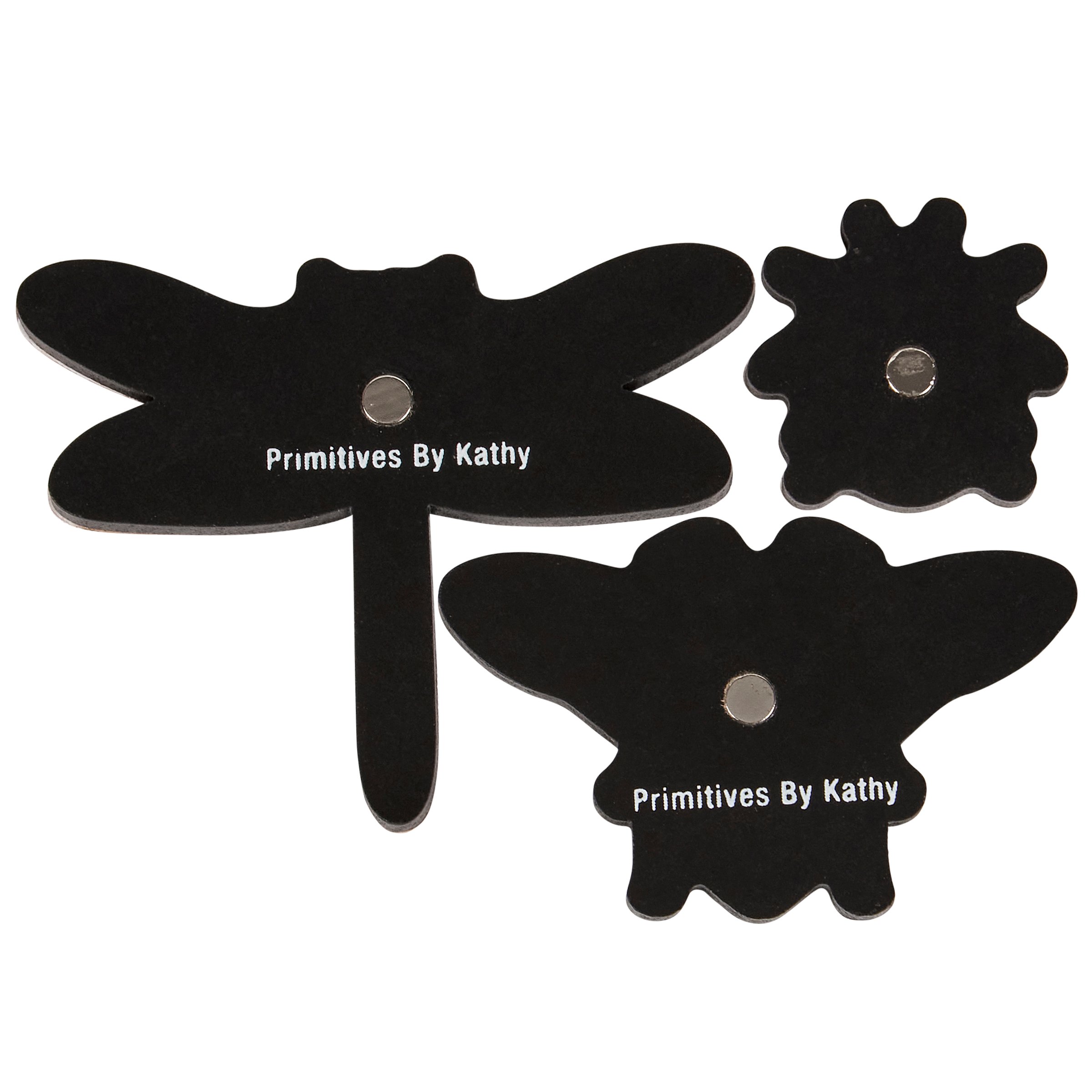A set of 3 wooden magnets from our Garden Collection cut in the shape of the displayed garden bug designs on each including a dragonfly, ladybug, and honey bee featuring floral details in their designs. Each garden bug design is replicated from original artwork hand illustrated in an intricate style. Our Garden Bug magnet set is packaged on a galvanized metal card and in poly bag for easy rack display and gifting. A set of garden-themed home accents with a variety of display options.