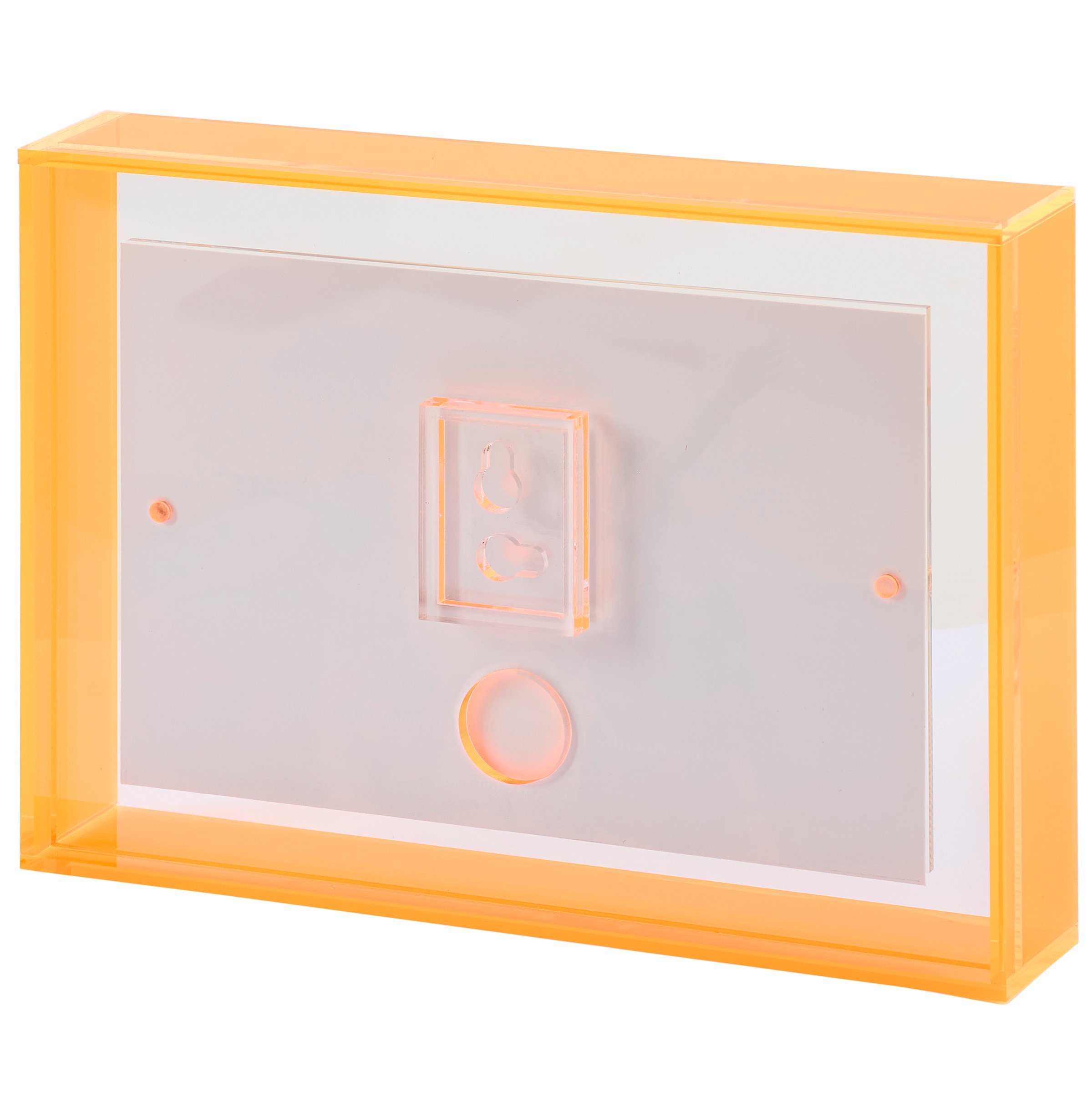 Display favorite memories as a stylish home accent in a variety of ways with our magnetic block frames featuring neon acrylic designs. Highlight special moments using the magnets to easily swap a preferred picture and create a fun floating effect. Our Neon Orange magnetic block frame fits a 4 inch by 6 inch photo and can be used in a portrait or landscape orientation. Free stand on a flat surface for display or hang on a wall using the keyhole slots on the back.