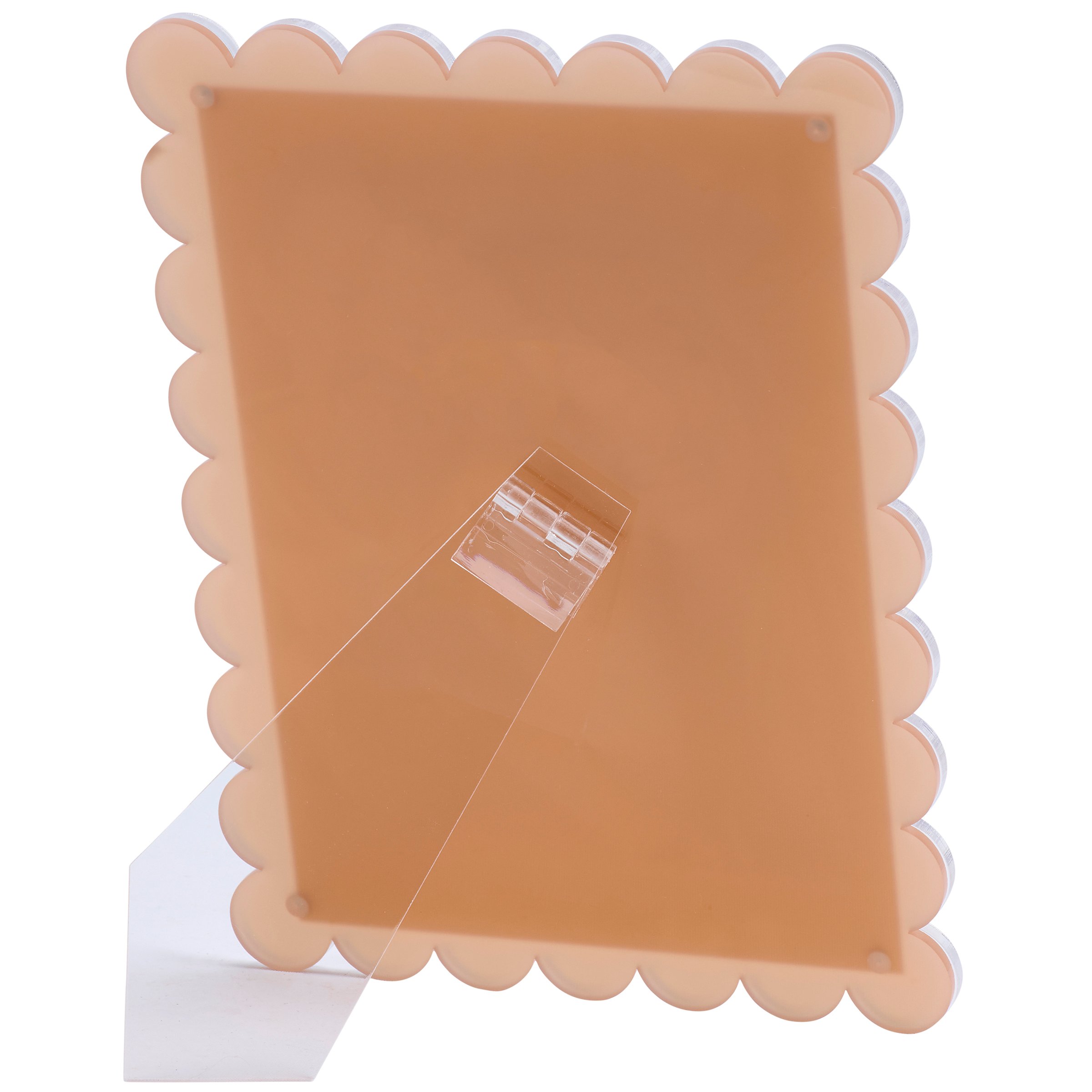 Display favorite memories as a stylish home accent in a variety of ways with our magnetic photo frames featuring a fun scallop edge design. Highlight special moments using the magnets in each corner to remove the front acrylic piece and easily swap a preferred picture anytime. Our Pastel Scallop magnetic photo frame fits a 5 inch by 7 inch photo and can be used in a portrait or landscape orientation using the easel back to free stand.