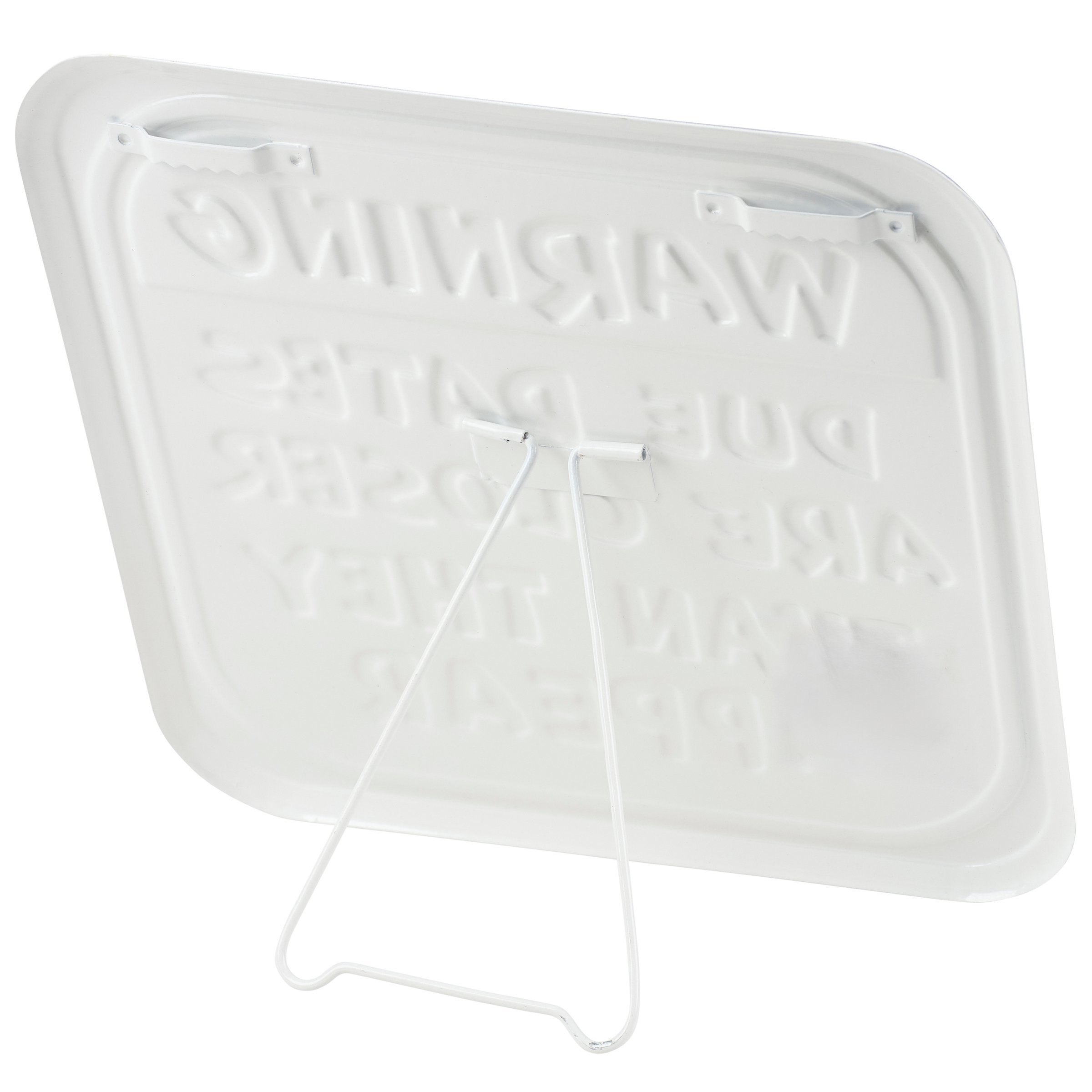 A metal décor piece from our Teacher Gift Collection displaying a hand illustrated warning sign design with a funny teacher inspired sentiment that reads "Warning - Due Dates Are Closer Than They Appear." This funny teacher sign features embossed details to accent the original hand illustrated art for added dimension. Our metal Due Dates Warning sign is easy to hang for display via the attached sawtooth hangers or free stand using easel on the back. A fun gift for teachers perfect for displaying in classrooms or home office.