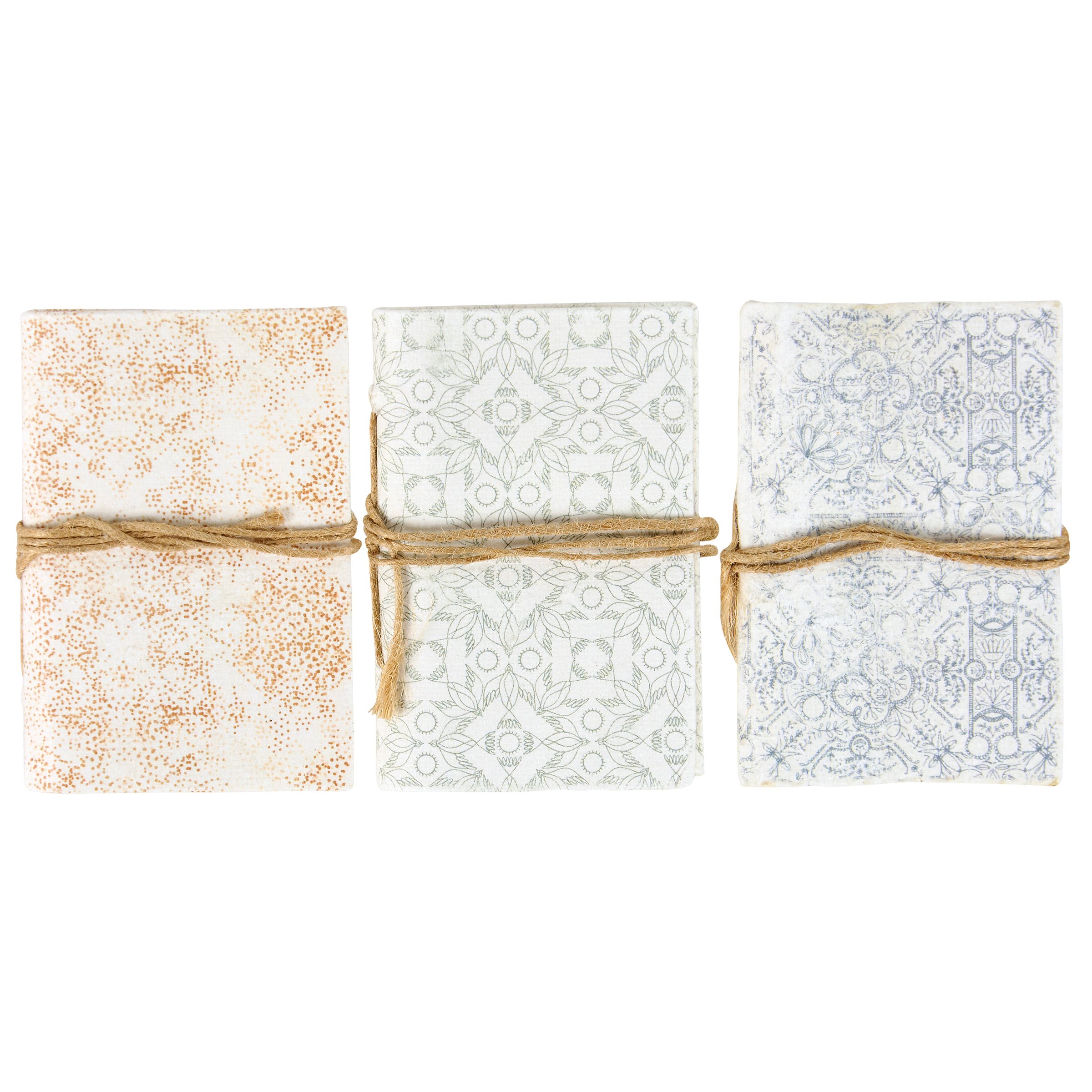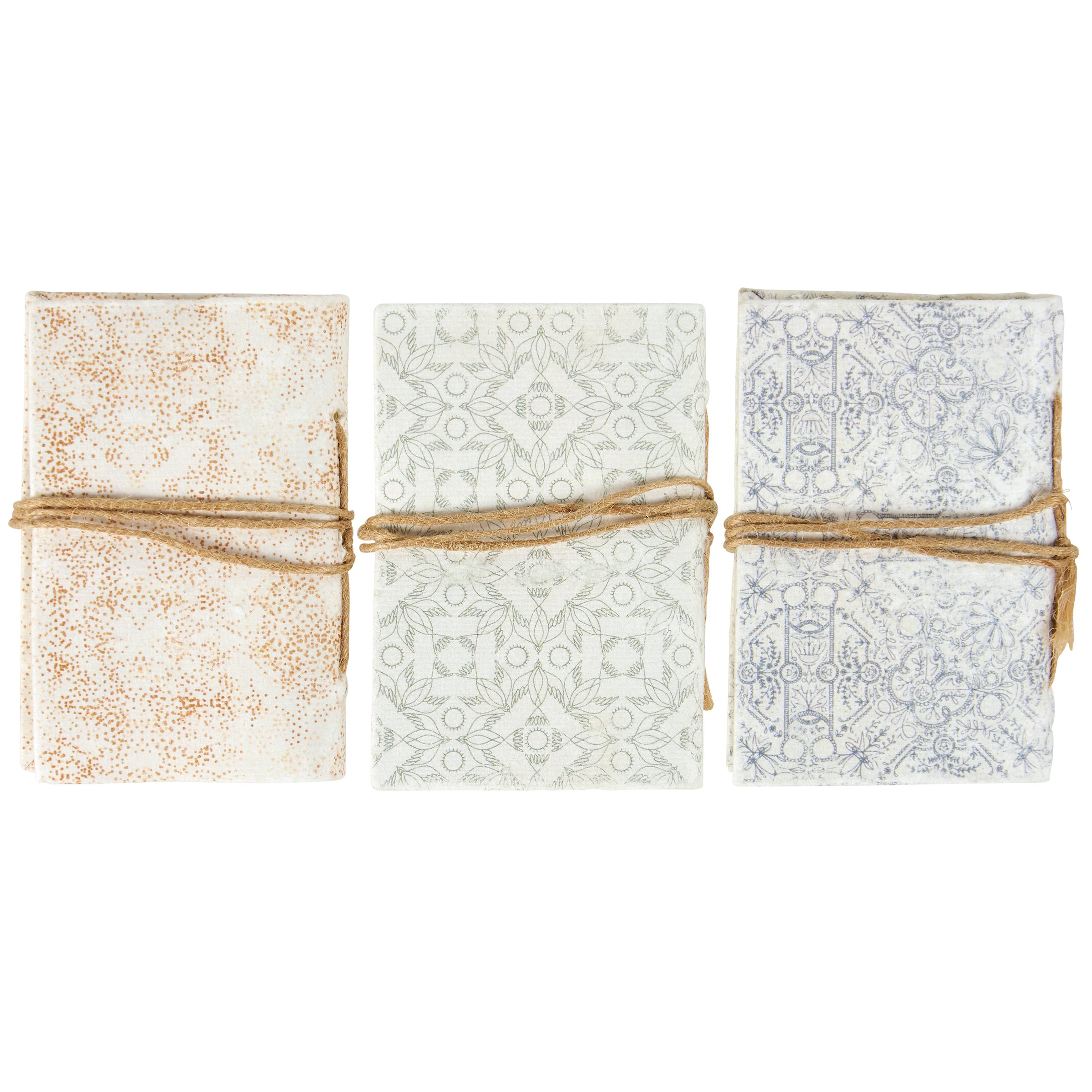 A set of three decorative mini notebooks from our Art Nouveau Collection displaying art nouveau inspired double-sided designs on a textured paper cover. Each nouveau notebook contains 96 unlined pages to pen anything that is desired. Our mini Nouveau Botanical notebook set includes jute tie closures to keep each secure. Notebook set comes packaged stacked and wrapped with cotton tape making it great for gifting. A stylish vintage gift perfect for any home office or desk.