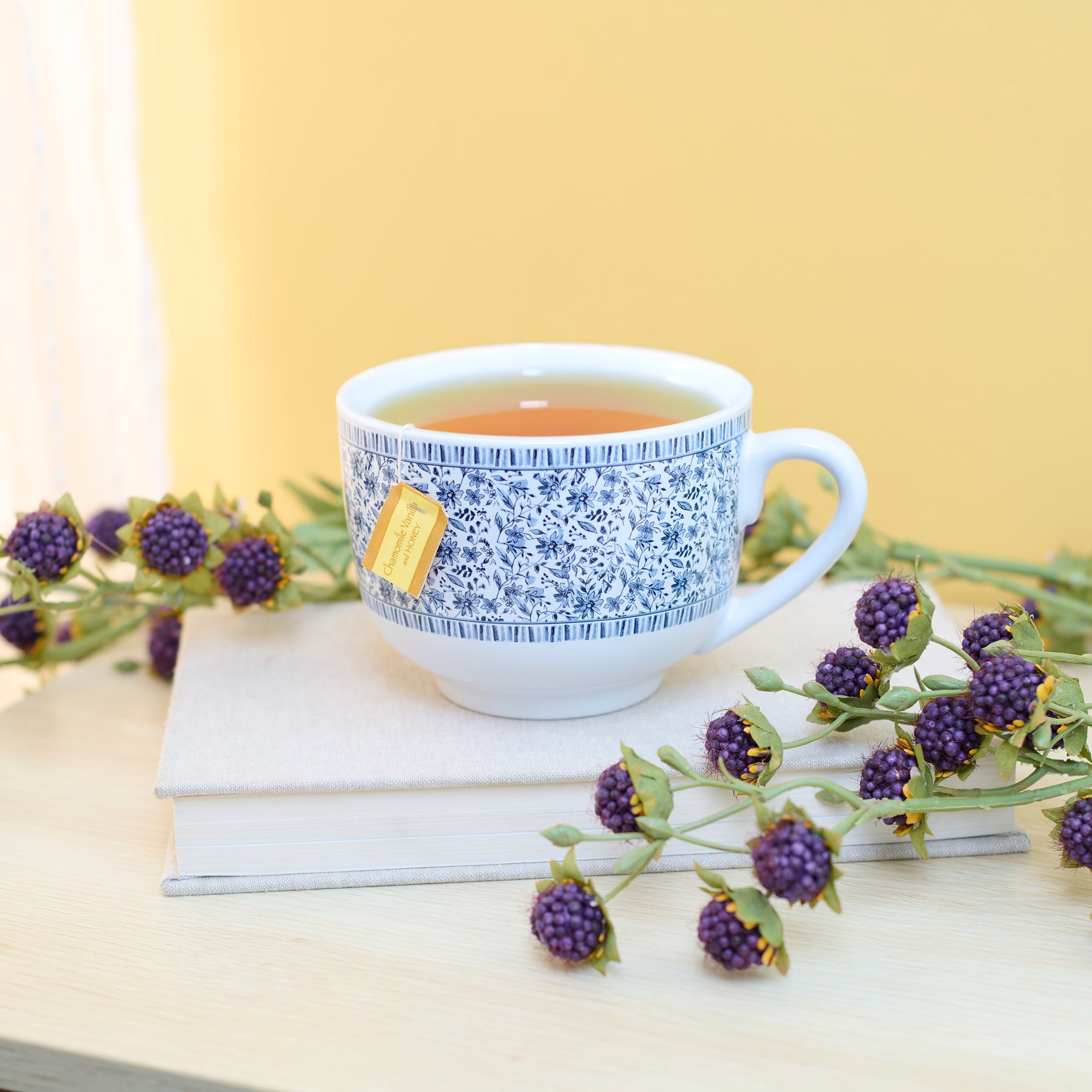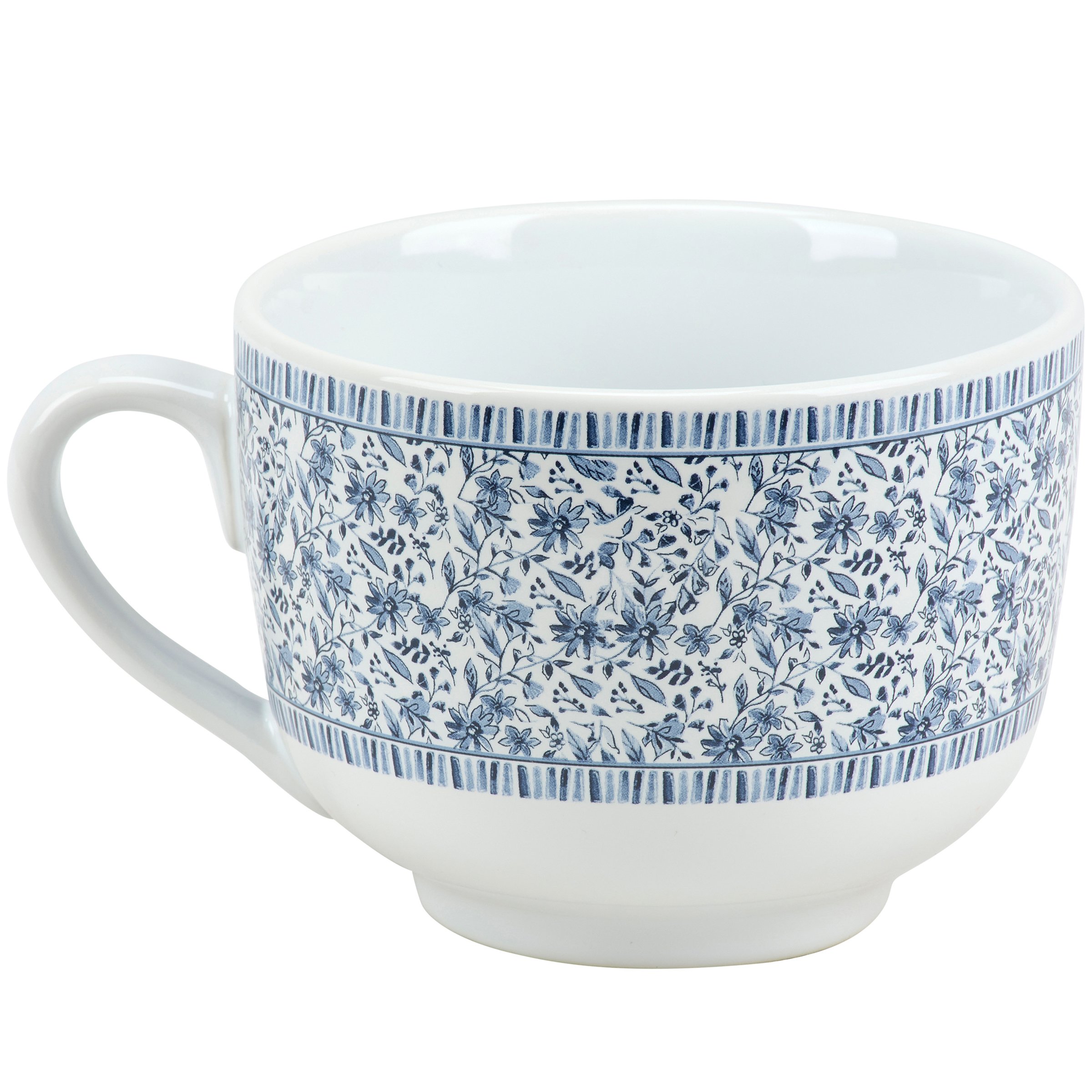 A stoneware 20 oz mug from our Home Collection featuring a full wrap-around design displaying a pattern of florals in a calming indigo color palette replicated from original hand painted watercolor art. This indigo mug also features an inside design with a blue floral at the bottom. Our Blue Florals mug is microwave, oven, dishwasher, and food safe for easy use. A stylish gift perfect for everyday drinkware.