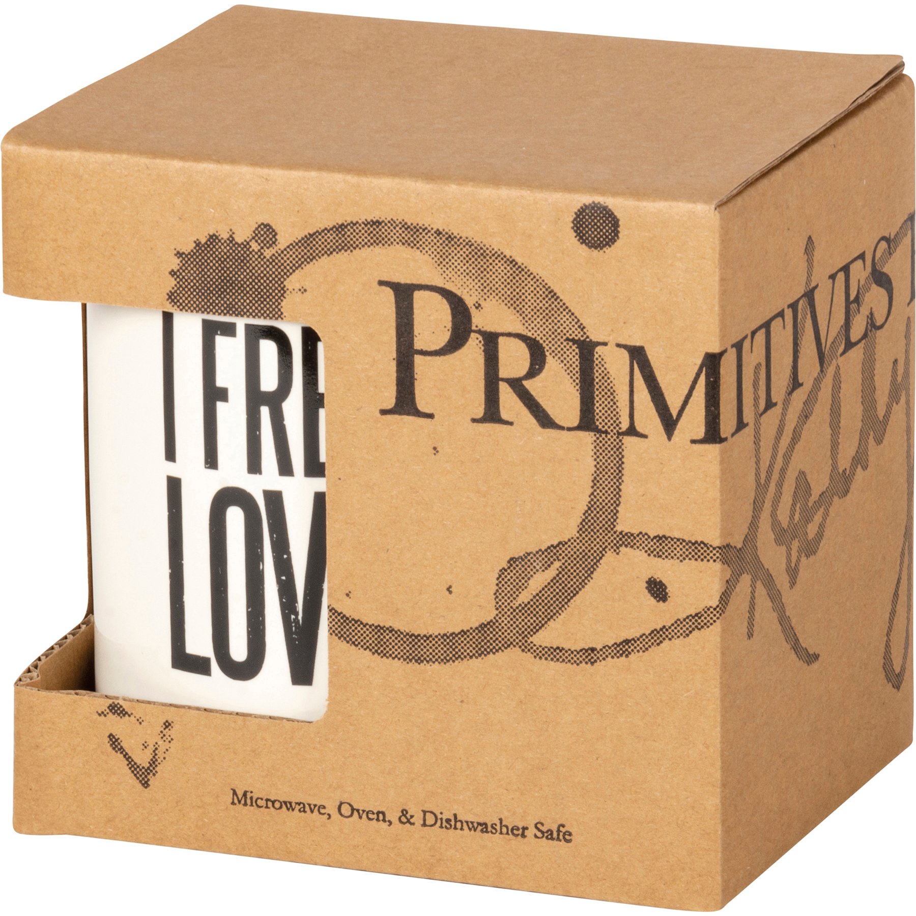 A black and white stoneware coffee mug from our Drinkware & Accessories lends a double-sided and distressed "I Freaking Love You" sentiment. Microwave, oven, dishwasher, and food safe. The I Freaking Love You mug holds 20 oz.