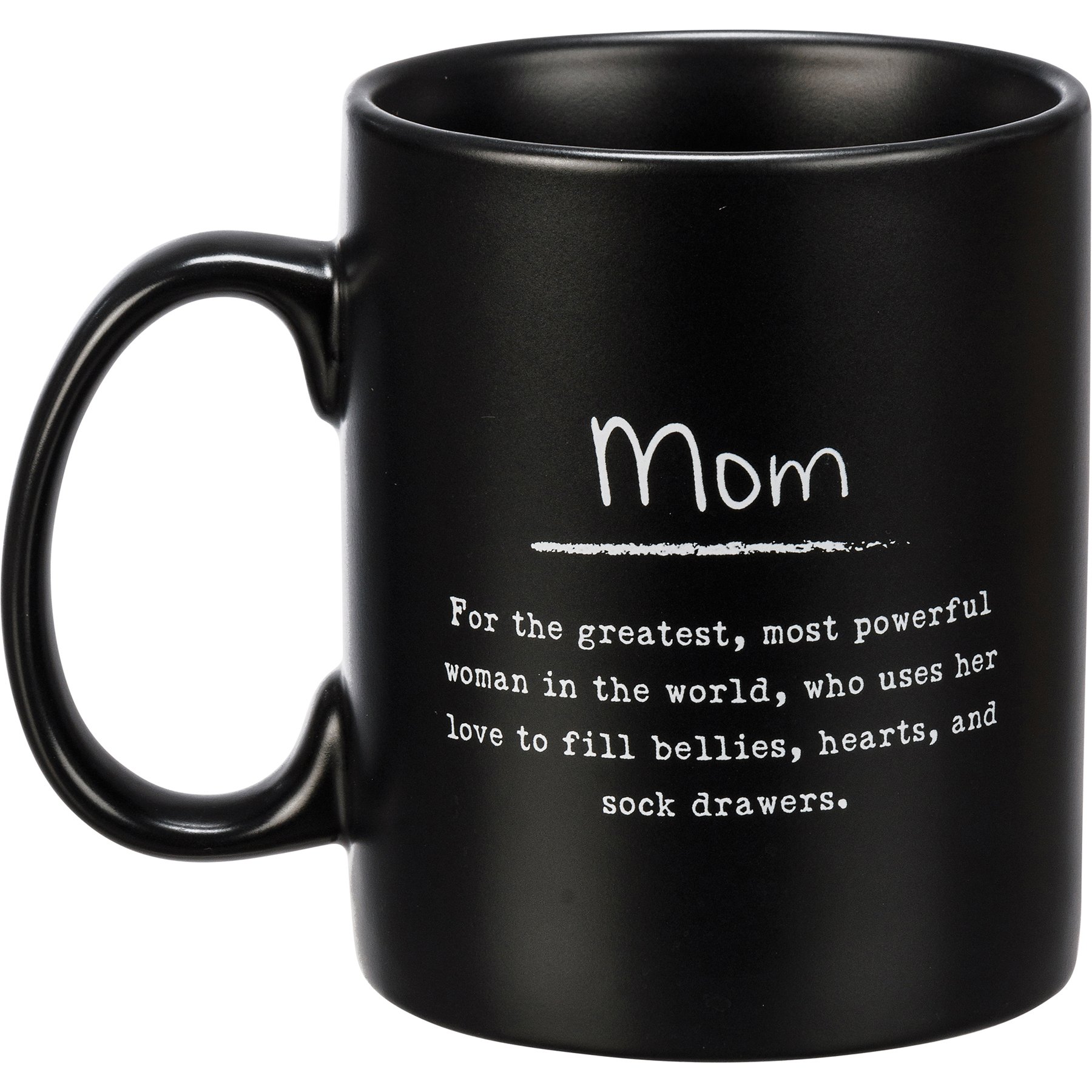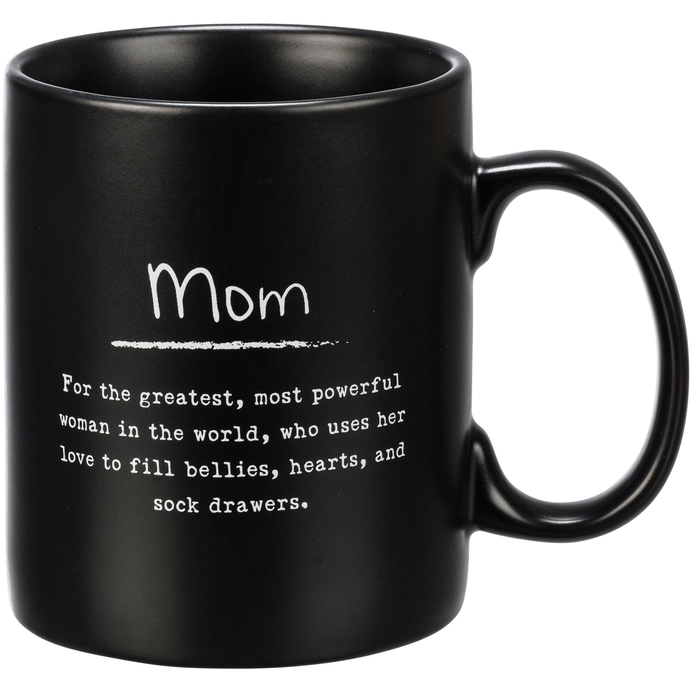 A matte black double-sided stoneware mug from our Poetry Collection features "Mom" sentiment followed by a themed poem. Our Mom mug holds 20 ounces. Microwave, oven, dishwasher, and food safe.