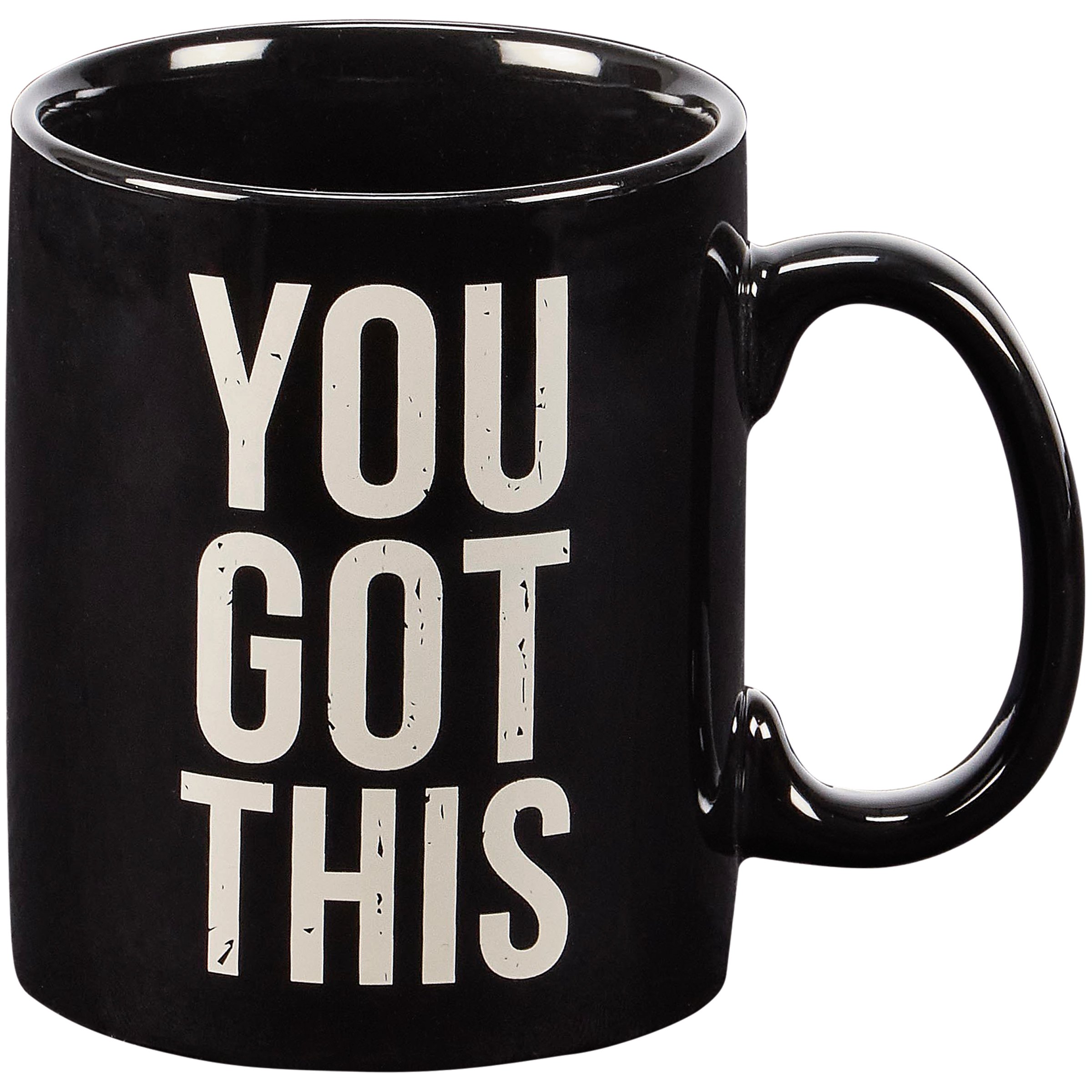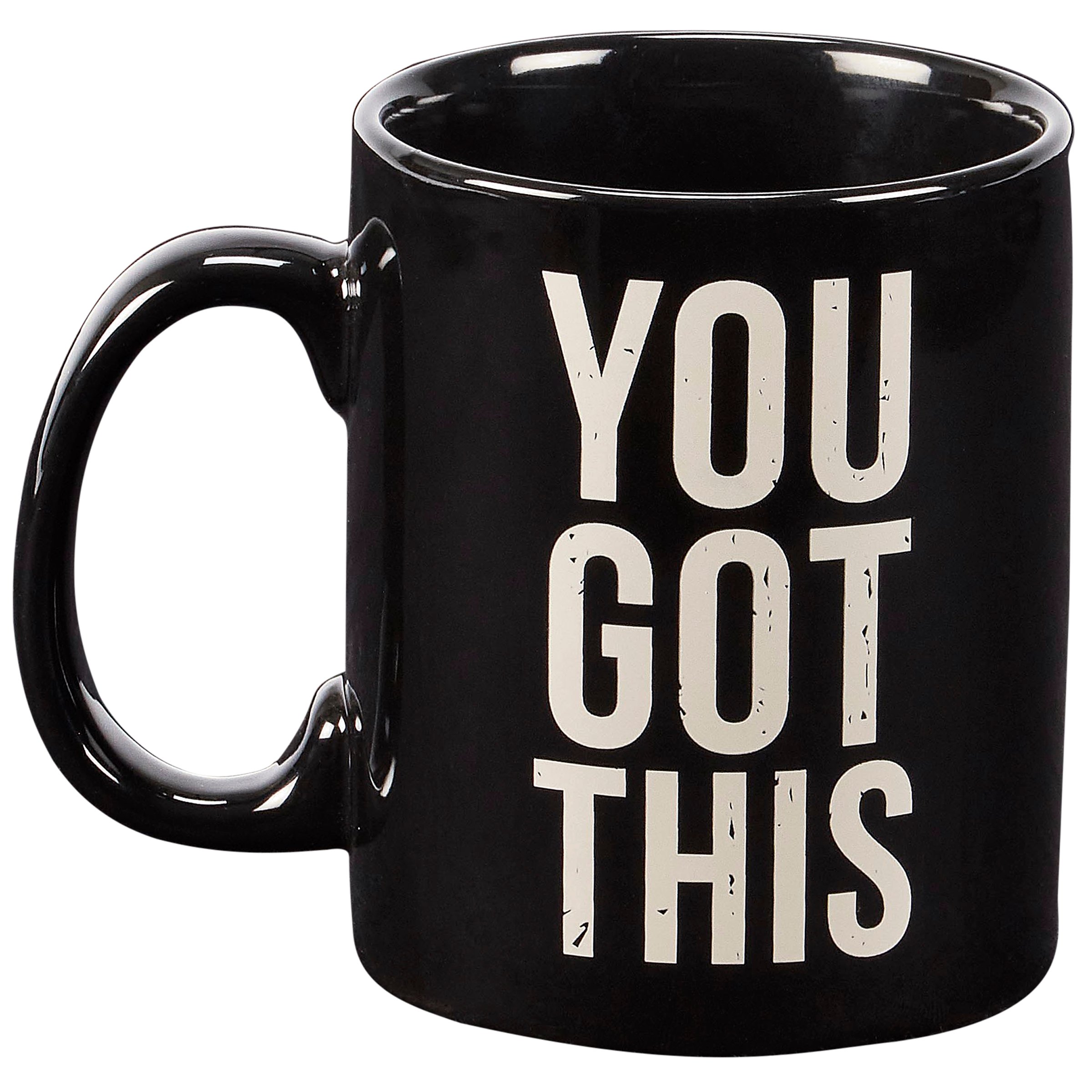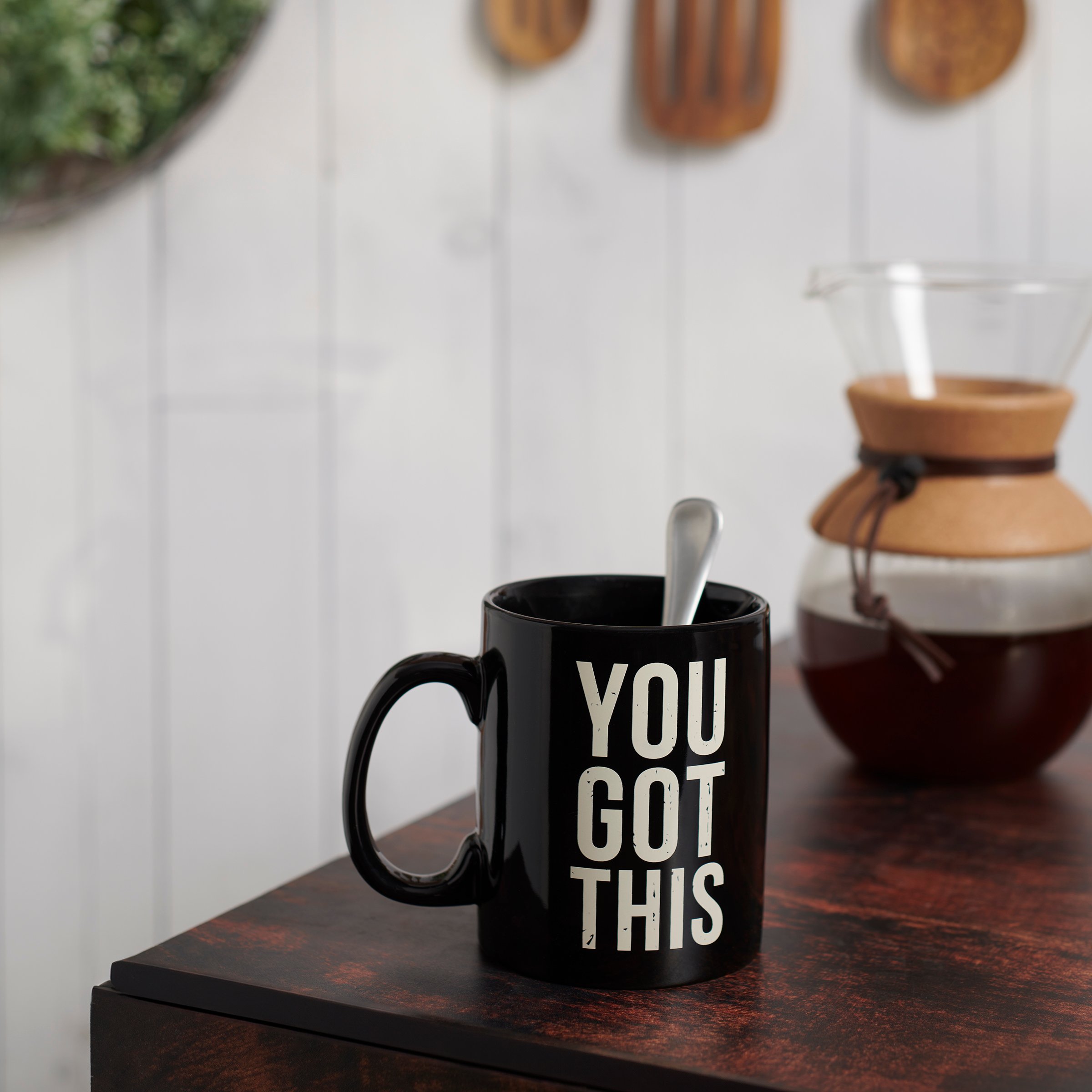 A stoneware 20 oz mug from our Box Sign Style Collection displaying a double-sided design of an inspirational sentiment in a classic box sign style that reads "You Got This." Our You Got This mug is conveniently microwave, oven, dishwasher, and food safe for easy use. An inspirational gift perfect for everyday drinkware.
