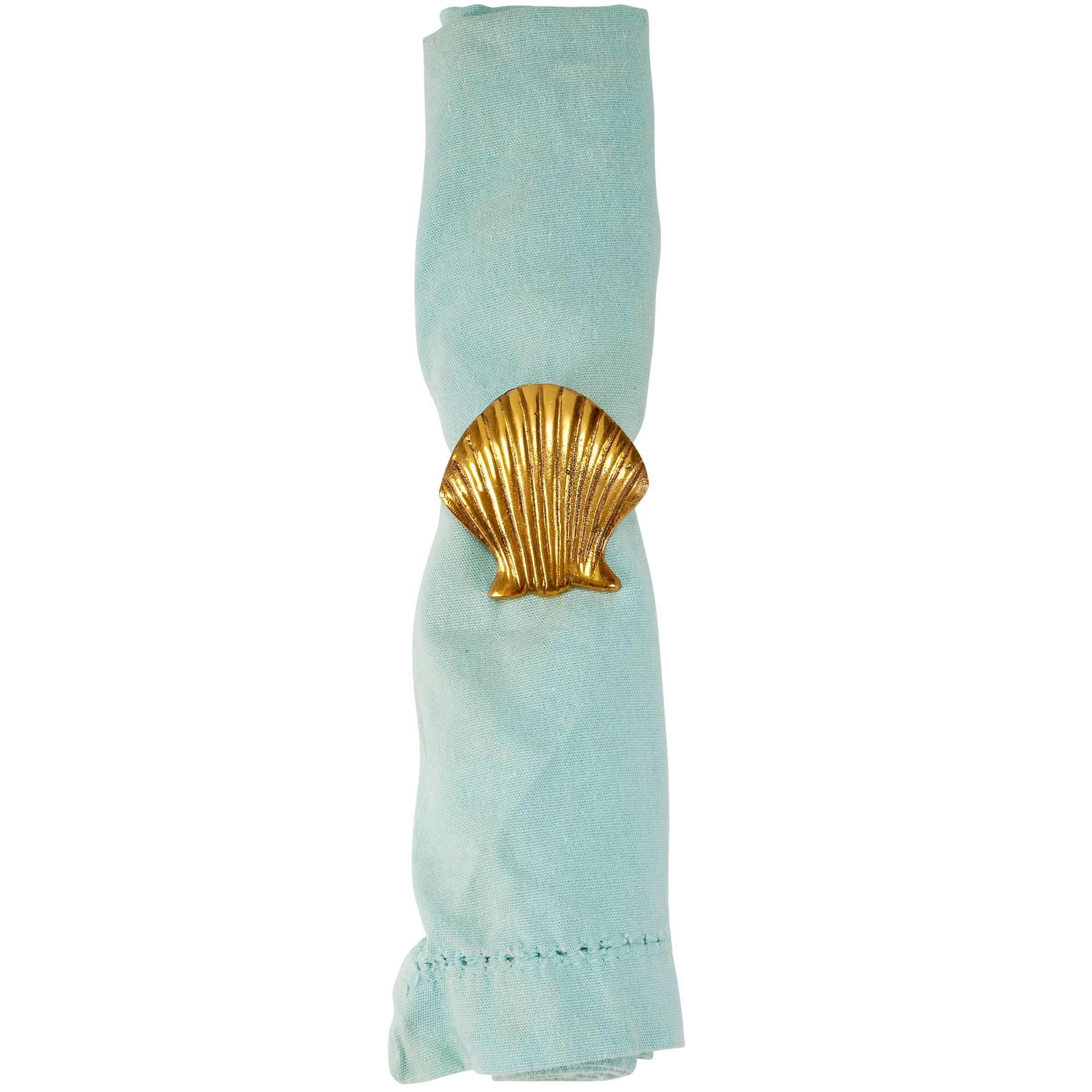 A set of four metal napkin rings from our Beach Collection featuring sculpted beach inspired designs including seashells, starfish, and sea turtle. Our Beach napkin rings include attached metal rings that easily slip over rolled napkins and, when not in use, can be added to table setting as table décor. Napkins pictured not included. Beach napkin rings are a fun set of tabletop accessories perfect for beach-themed tablescapes.