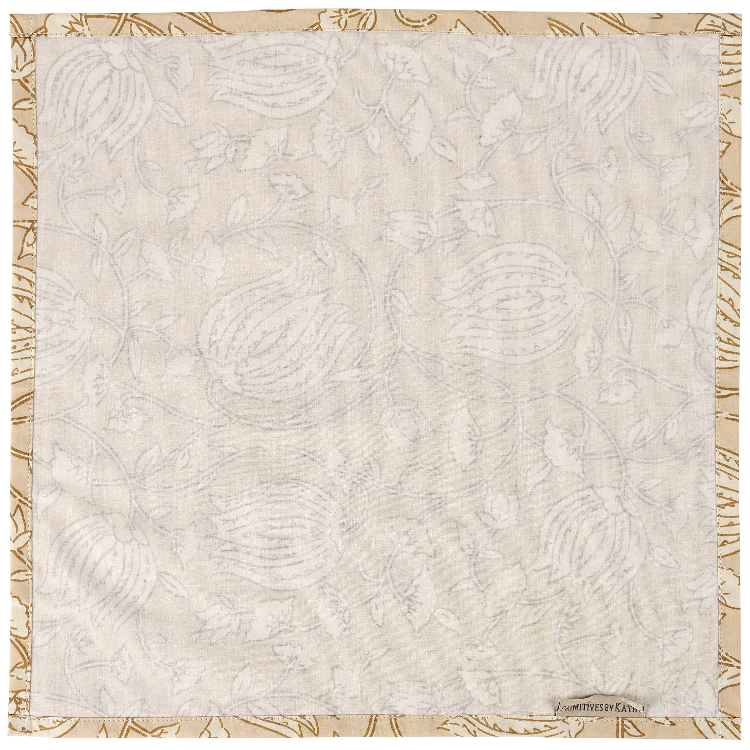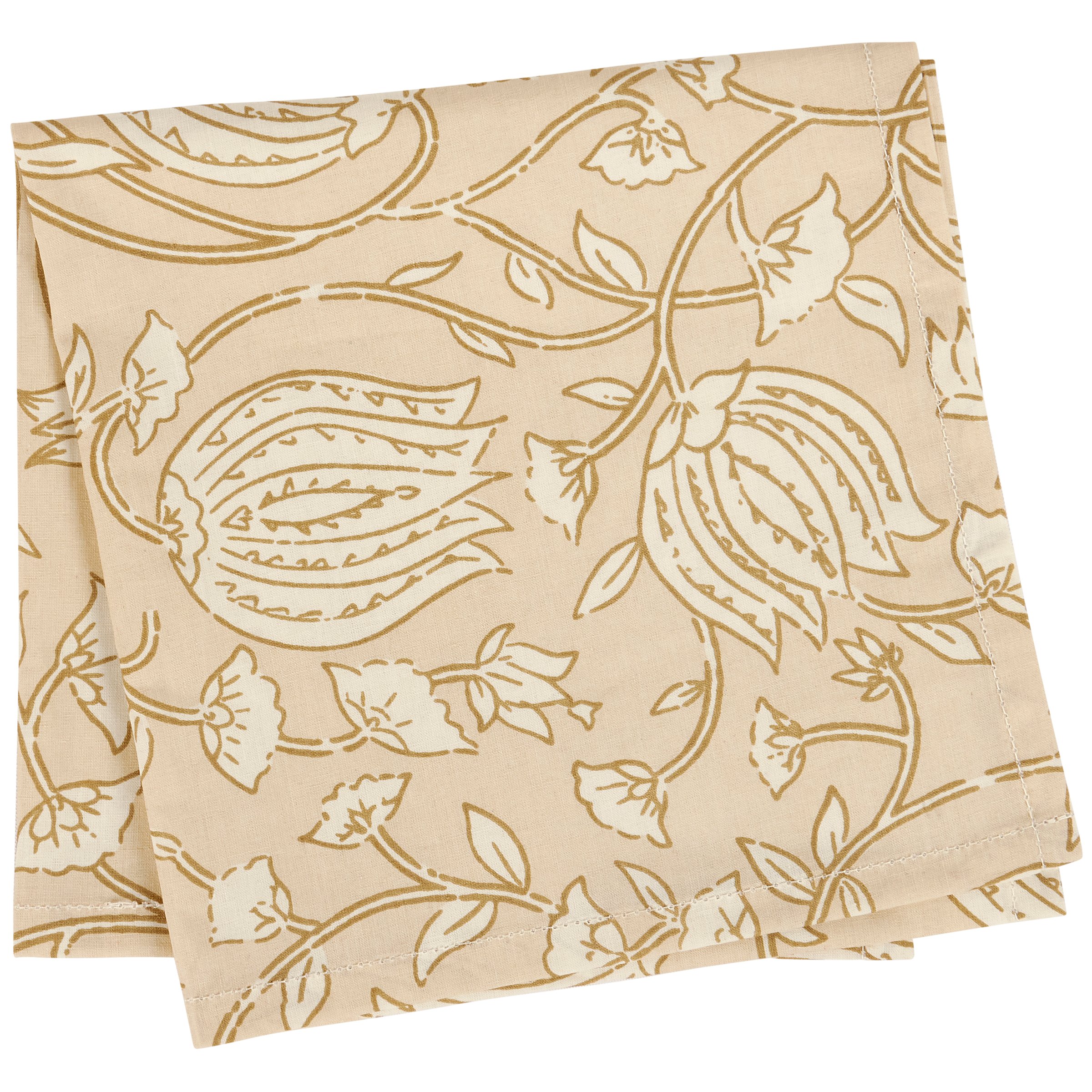 A reusable cotton napkin from our Botanical Collection displaying a floral inspired vintage pattern in a tan color palette. Our Tan Floral napkin is conveniently machine-washable for easy cleaning and reuse. A vintage tabletop accessory perfect for everyday gatherings.
