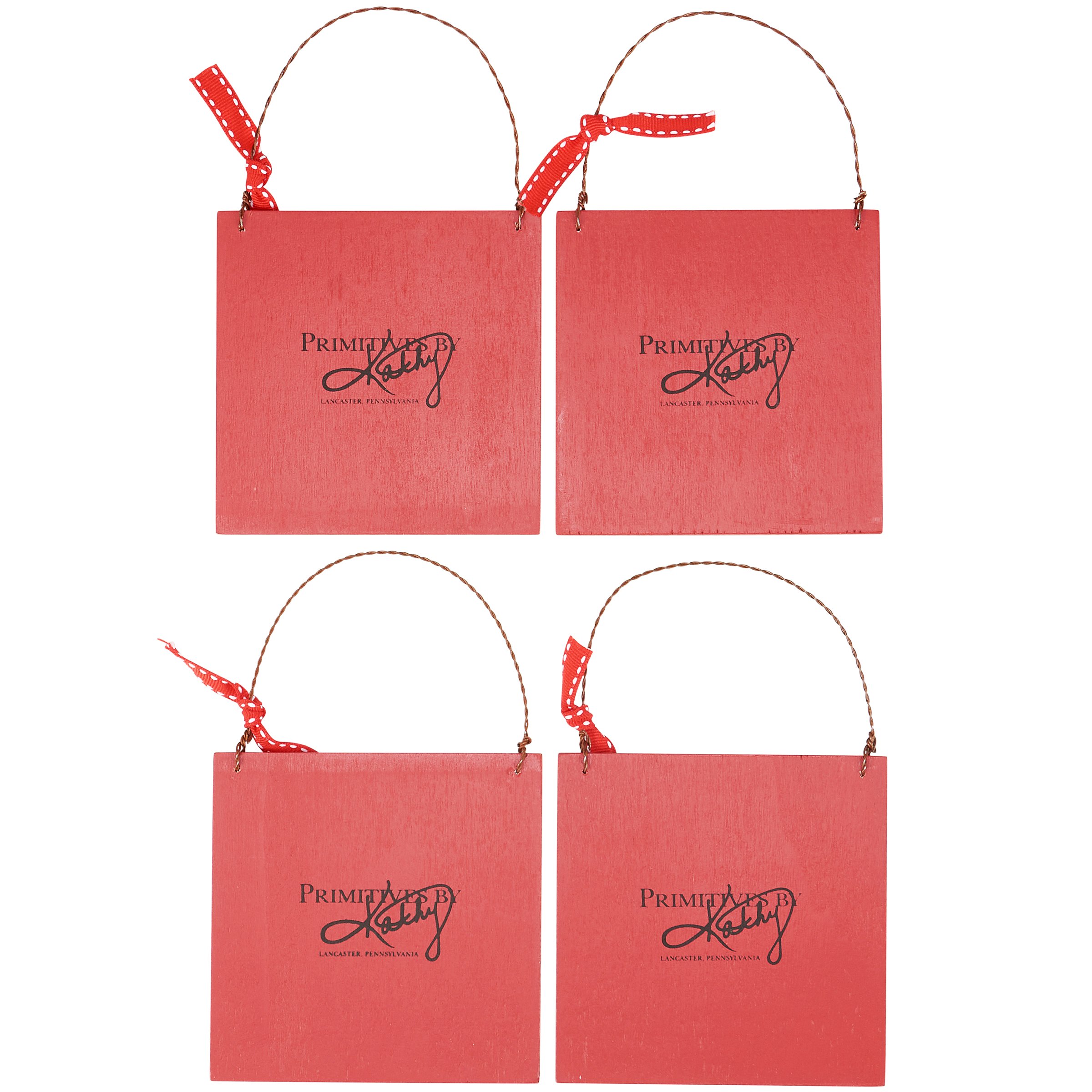 A set of wooden ornaments from our Christmas Collection displaying four charming winter scenes of various farm animals wearing festive Christmas bells. Designs are replicated from original artwork painted onto burlap canvas, giving the art a unique depth and texture. Seasonal ornaments feature distressed details with coordinating red color on the back and red cotton tape accent on hanger. Our Festive Farm ornament set is easy to hang for display via attached twisted wire hangers. Set comes packaged together in a polybag and tied with jute. A rustic set of winter-themed ornaments perfect for seasonal display.