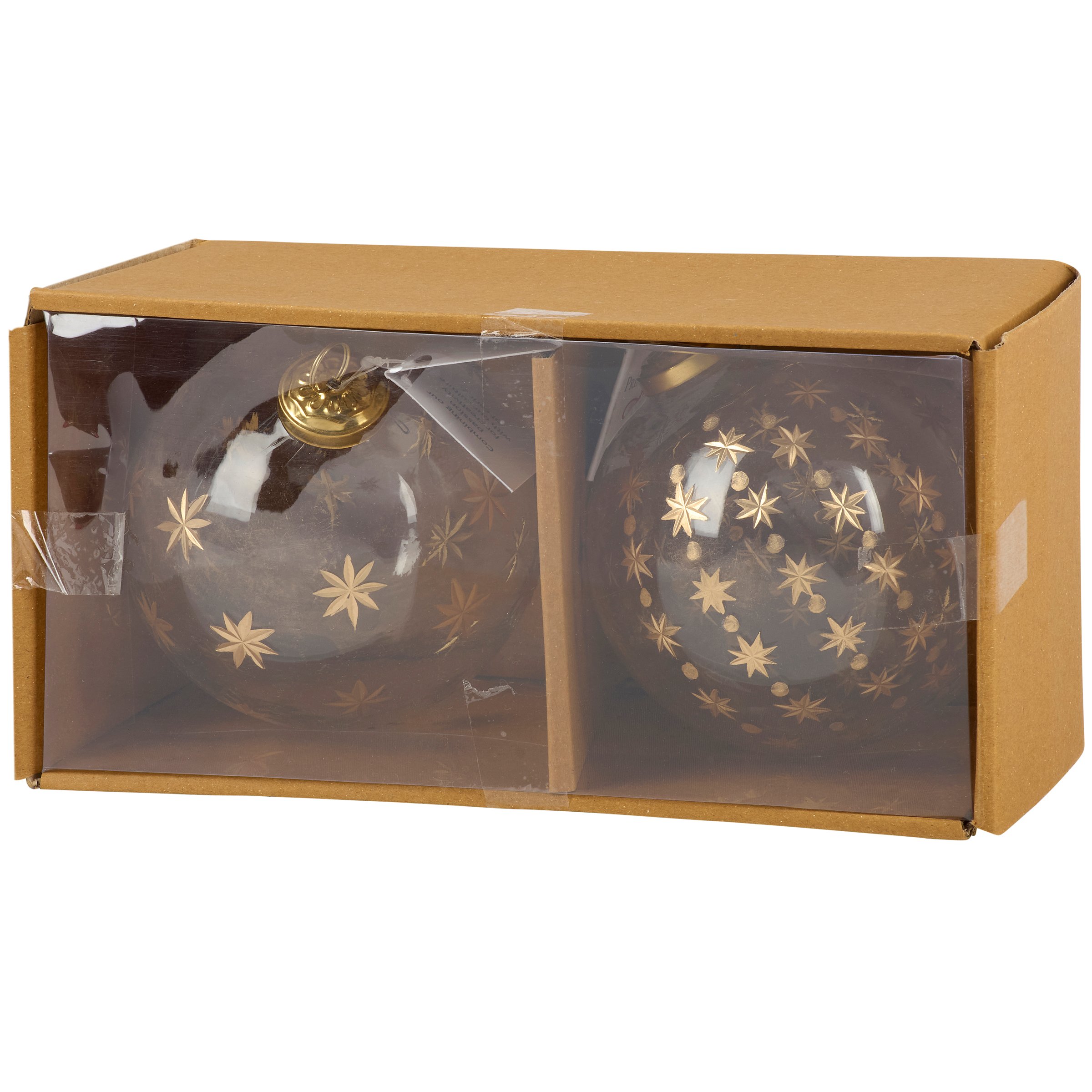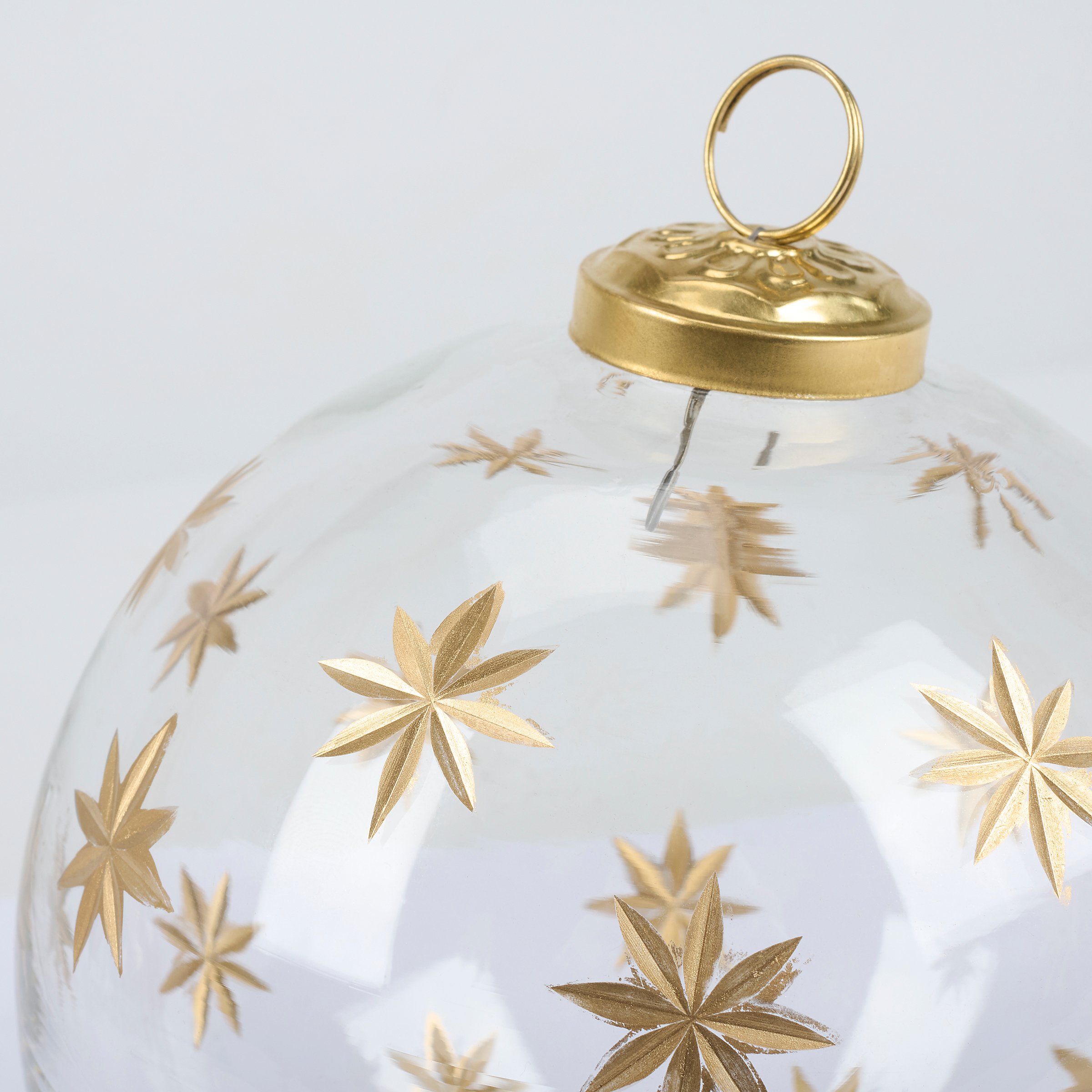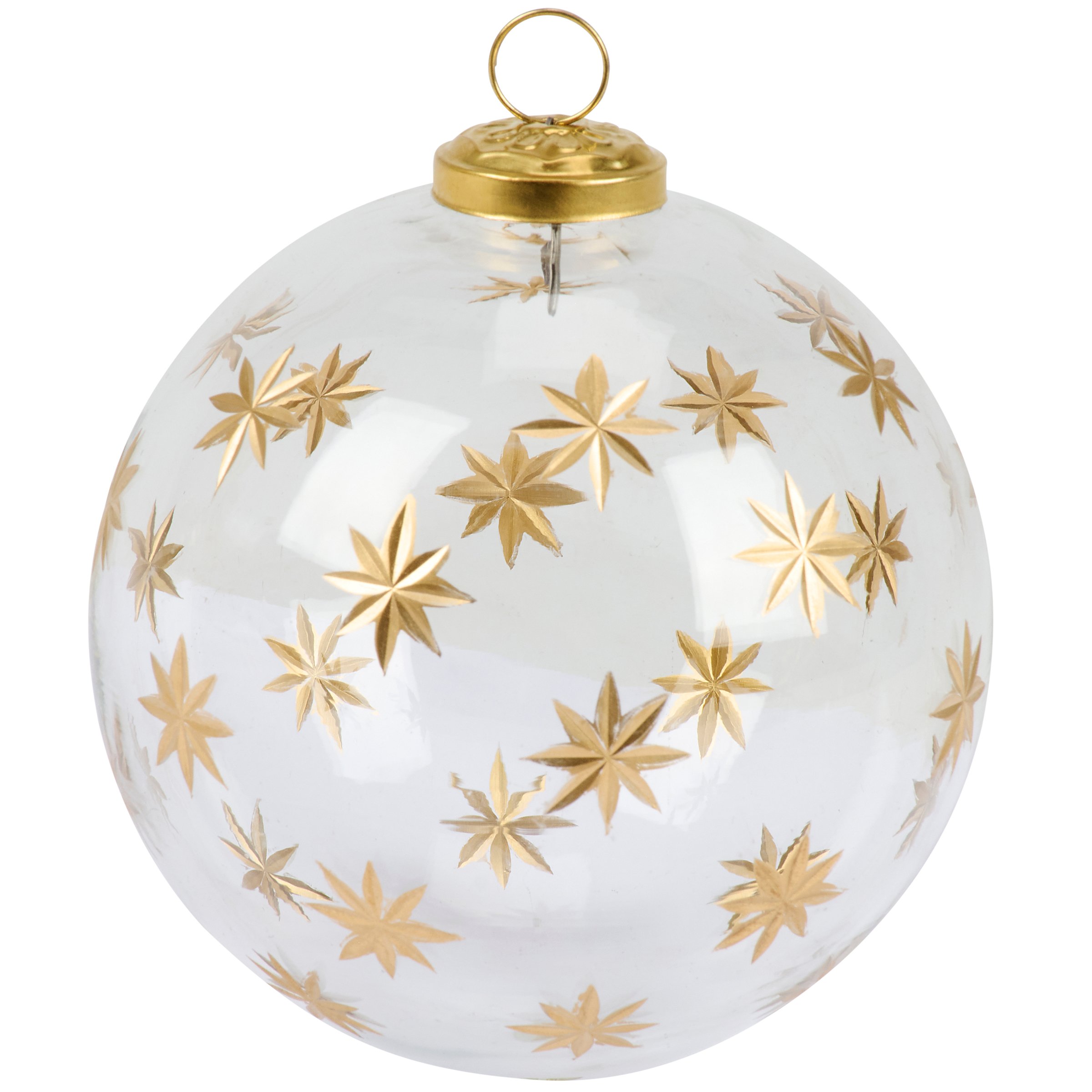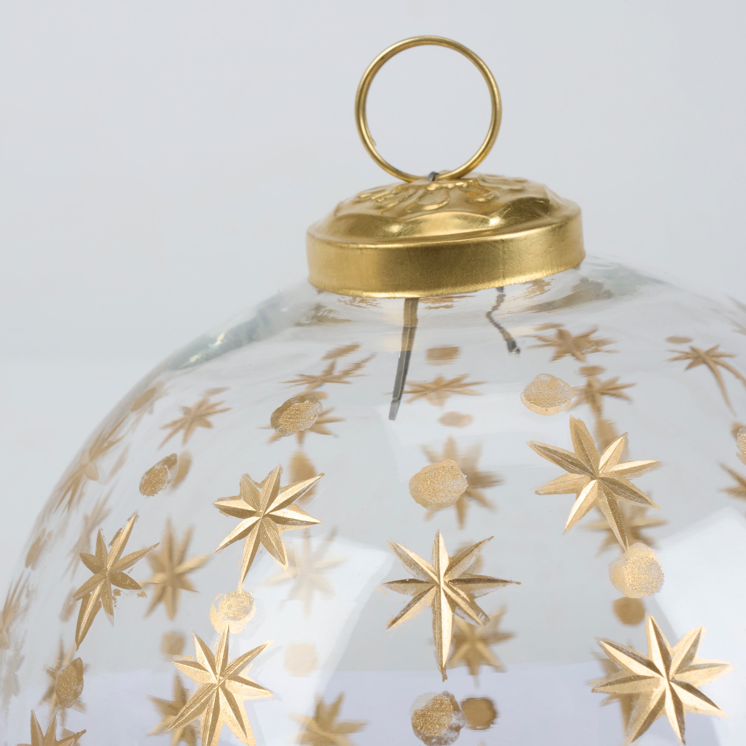 Glass Gold Etched Stars Ornament Set