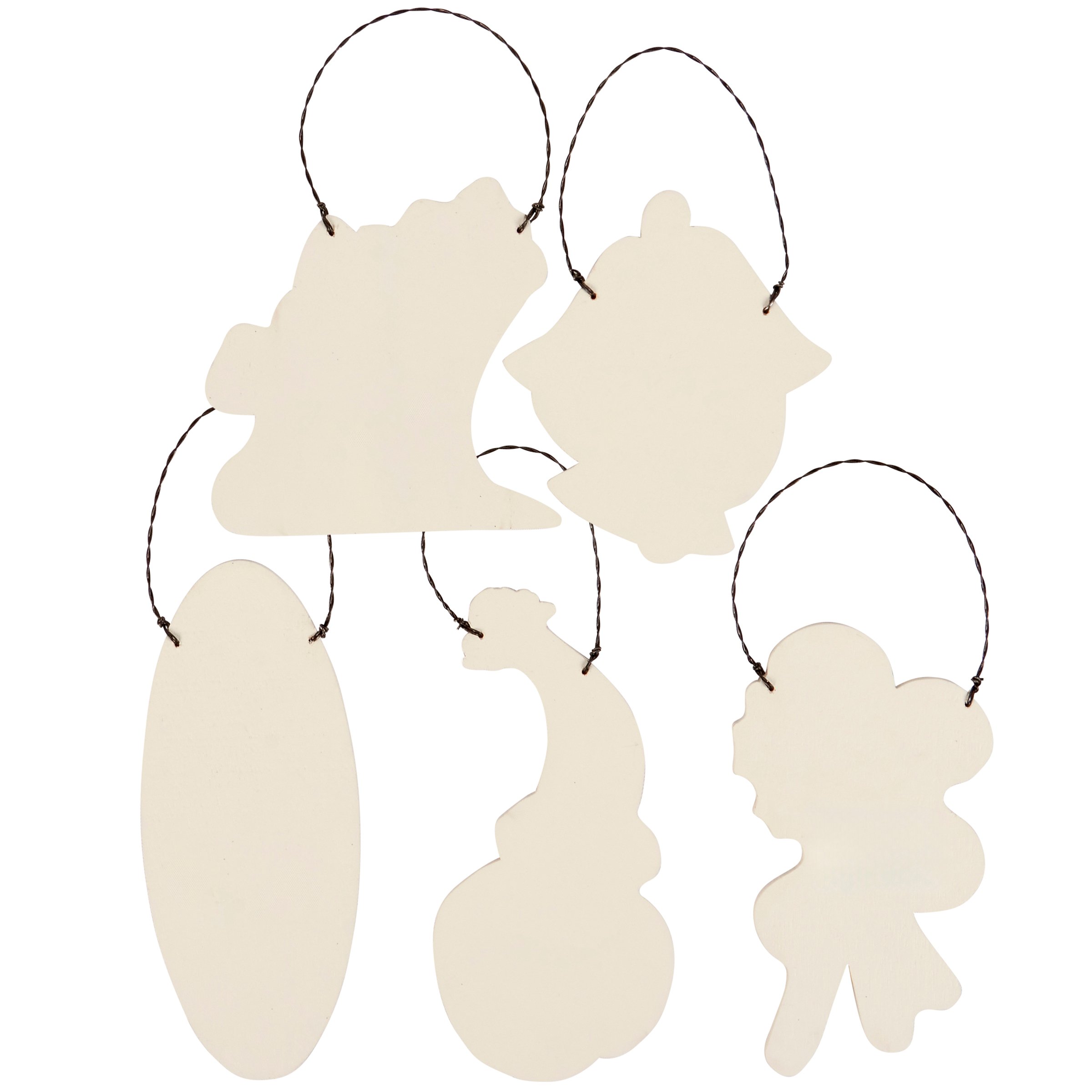 A set of wooden ornaments from our Christmas Collection featuring 5 fun retro holiday designs in a pastel style with glitter accents throughout. Retro holiday ornaments display individual designs including stylish reindeer, Santa, sleigh full of gifts, candy canes, and holiday bells. Our Pastel Christmas ornament set is easy to hang for display via attached twisted wire hangers. Seasonal ornament set comes packaged together in a polybag and tied with pink ribbon. A set of retro Christmas home accents perfect for a Christmas tree or for seasonal decorating.