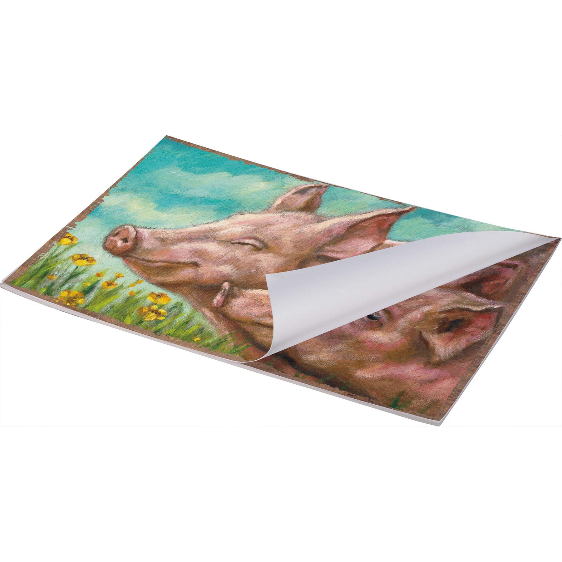 Great for customizing settings and making clean-up a breeze, these paper placemats feature four different farm animal designs. Designs are replicated from original artwork painted onto burlap canvas, giving the art a unique depth and texture. Placemat pad includes 24 single-use, tearaway placemats. Our Farm placemat pad is shrink-wrapped for protection and storage. Made in the USA.