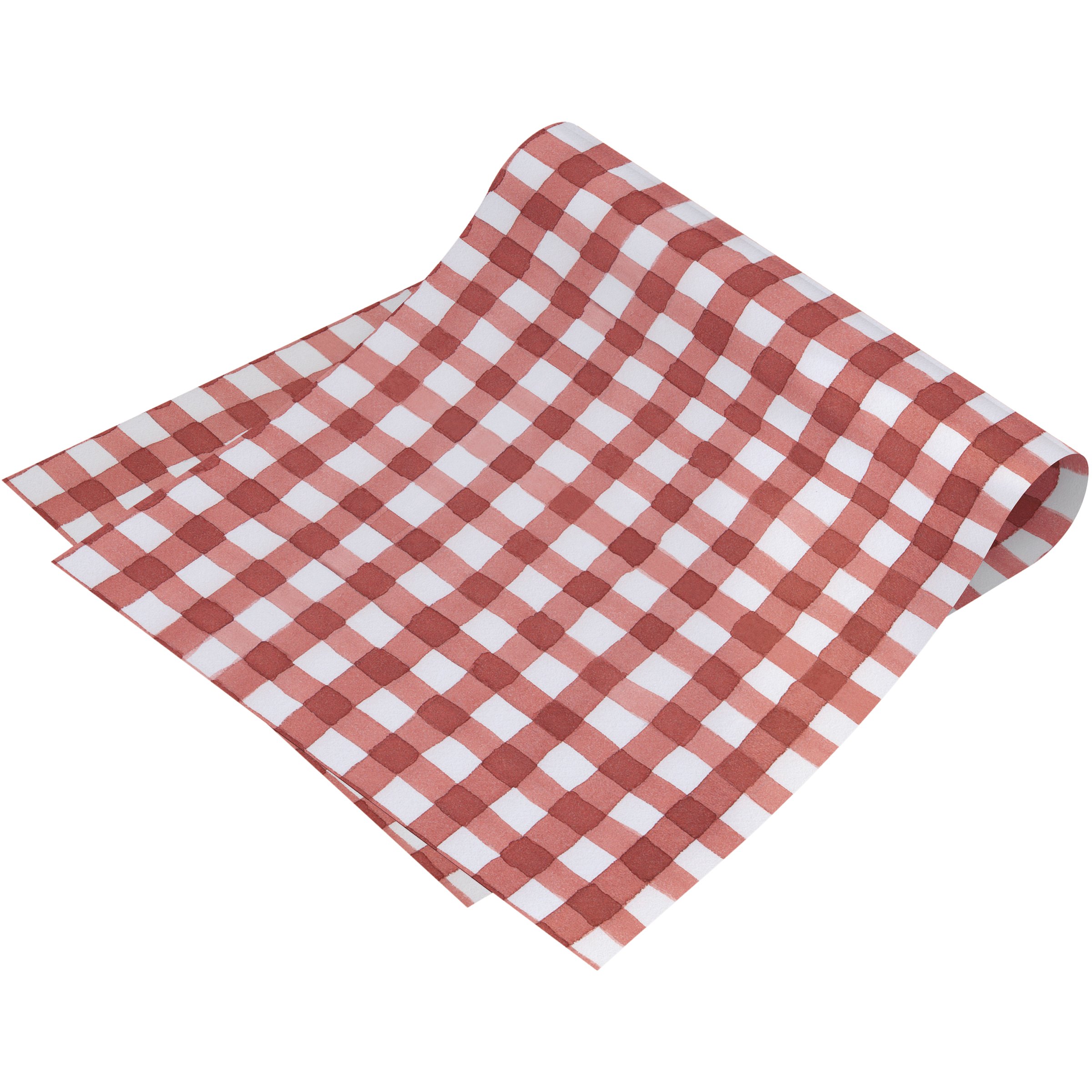 Perfect for customizing place settings and making clean-up a breeze, this paper table runner from our Cottagecore Collection features a hand painted red gingham pattern throughout. Runner includes 30 feet of 20 inch wide paper, packaged on a cardboard roll that conveniently can be cut to the size needed. Shrink-wrapped for protection and ease of display. Our Red Gingham runner can even double as charming everyday gift wrap!