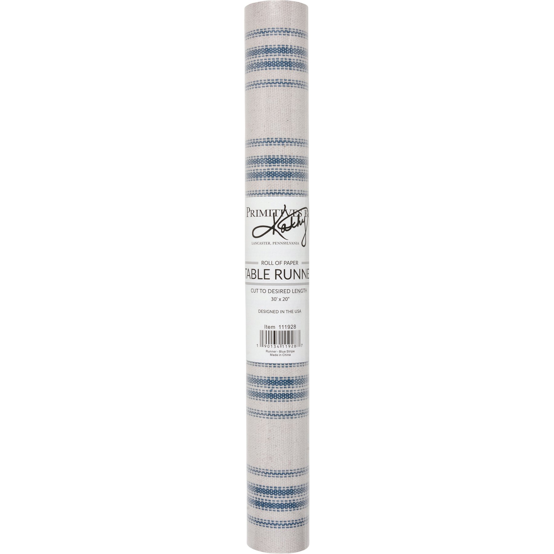Great for customizing place settings and making clean-up a breeze, this paper table runner from our Farmhouse Collection features a rustic blue stripe design on a cream base. Paper runner includes 30 feet of paper (20" wide), packaged on a cardboard roll to be cut to size. Comes shrink-wrapped for protection and ease of display. Our blue stripe runner can even double as wrapping paper!