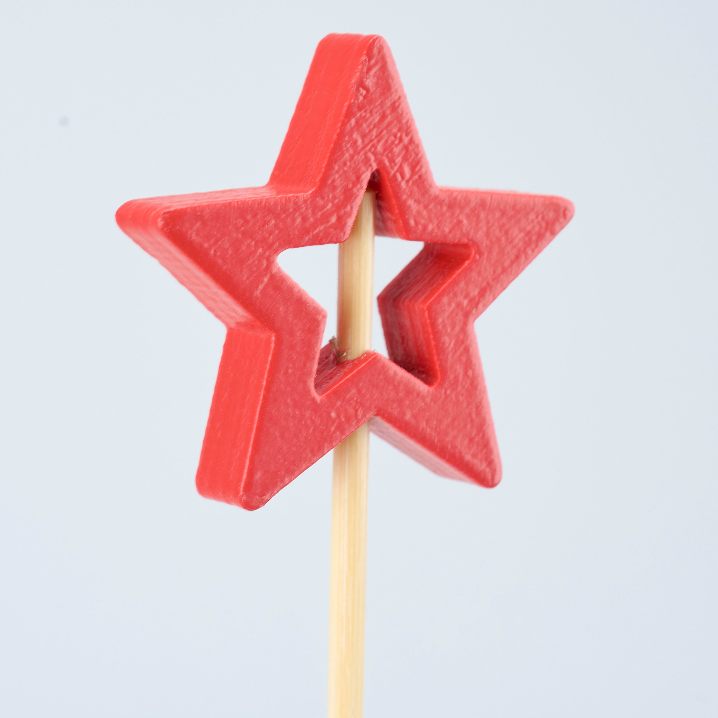 A set of party picks from our Patriotic Collection featuring 20 long bamboo picks with star shaped wood pieces attached to the top displaying a mix of red, white, and blue painted details that add patriotic charm to food displays. Our Open Stars party pick set comes packaged in an acrylic box to easily see designs with a hole for hanging on store racks. A set of fun USA inspired party accessories perfect for patriotic tablescapes.