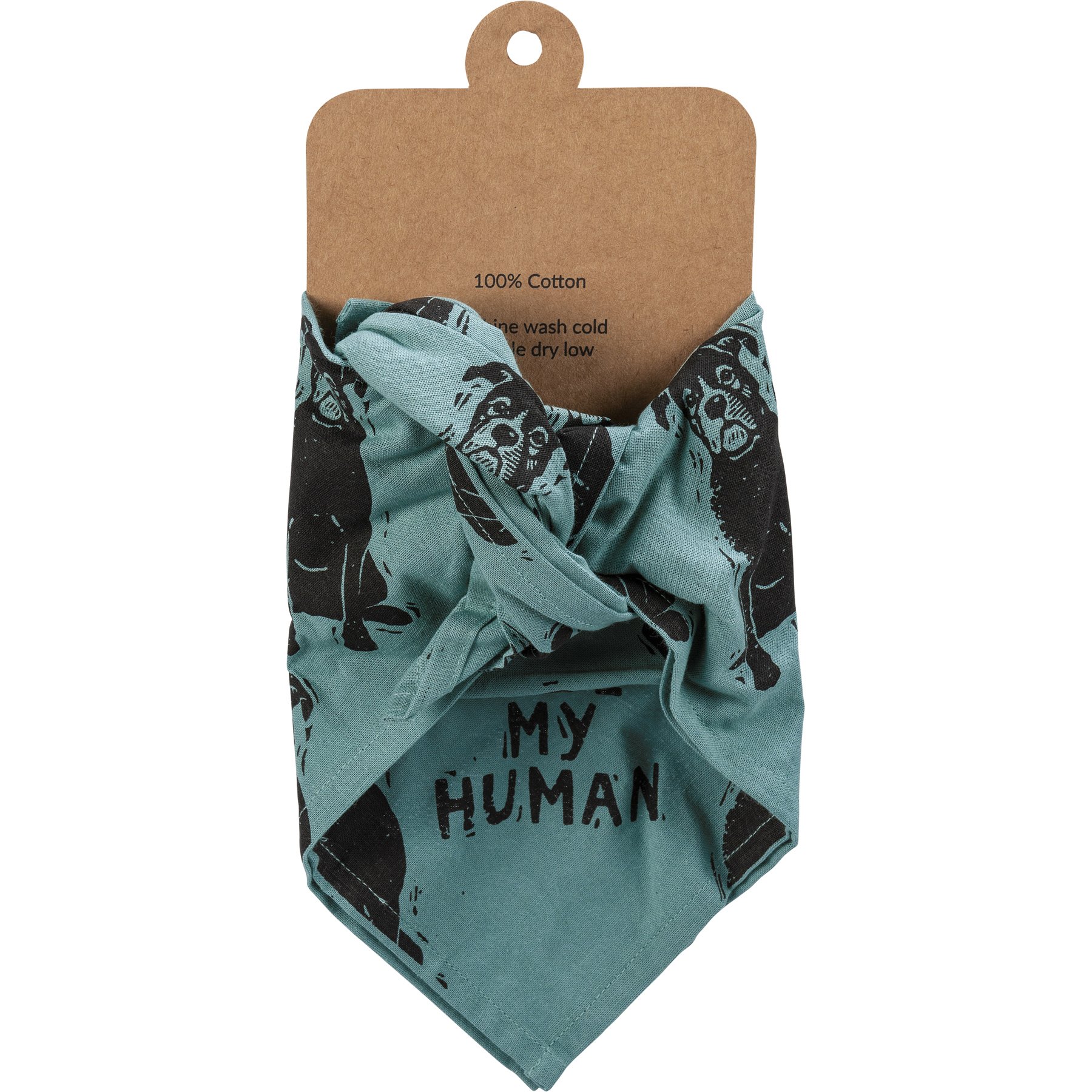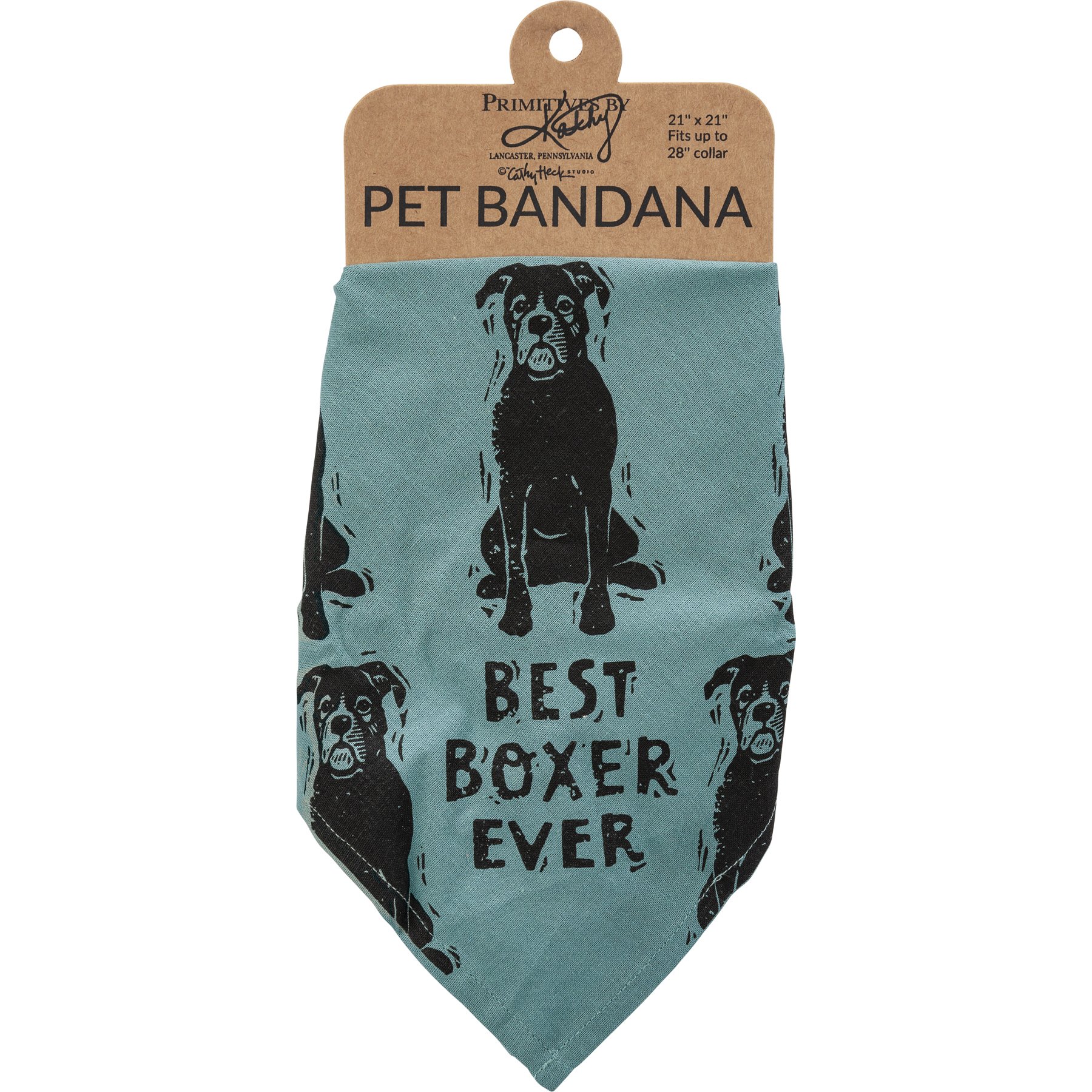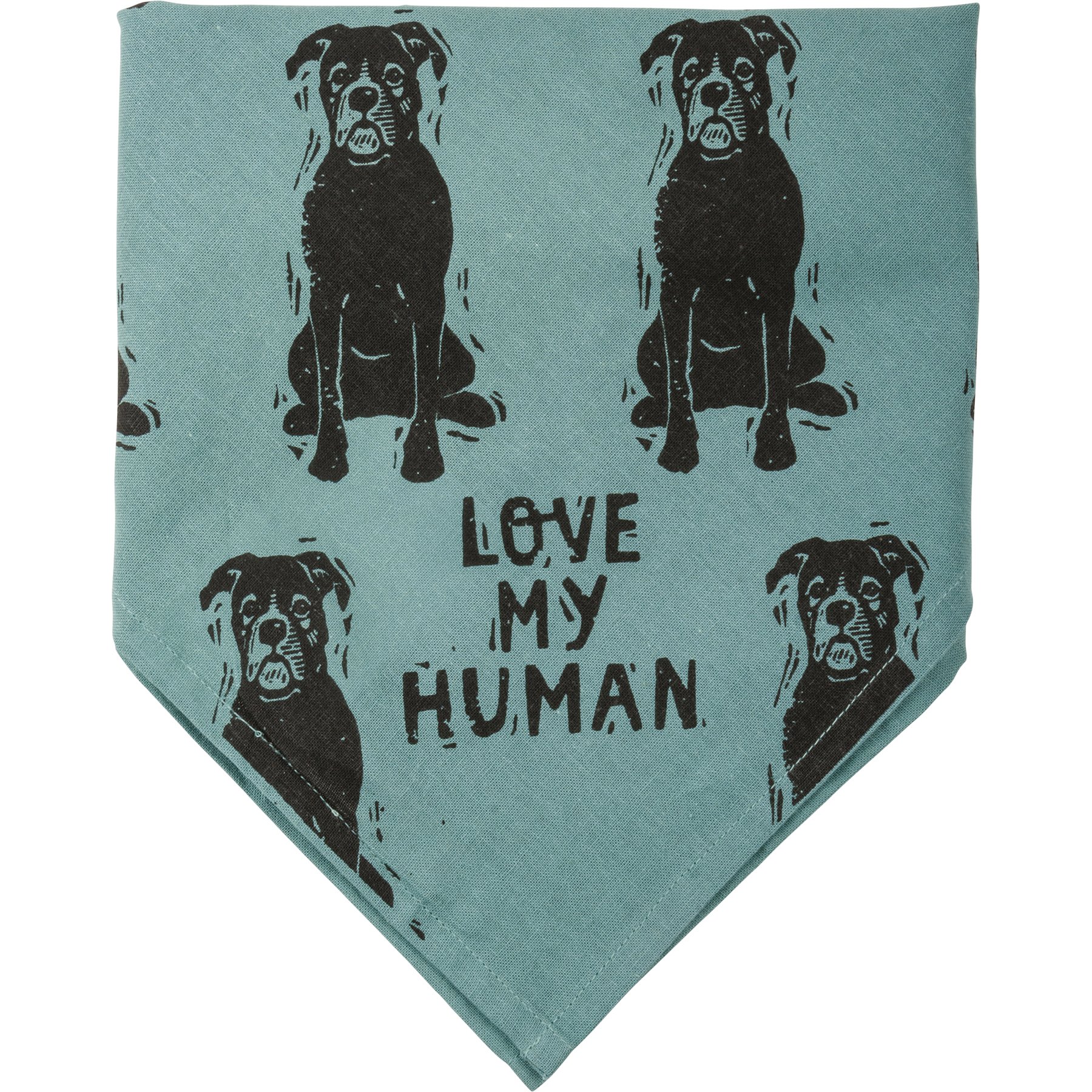 A large reversible pet bandana from our Pet Collection featuring "Best Boxer Ever" and "Love My Human" sentiments on opposite corners with an all-over block print boxer design. Bandana is made of cotton and is machine-washable. Best Boxer Ever pet bandana coordinates with our Love My Boxer Baseball Cap for matching dog and owner outfits.
