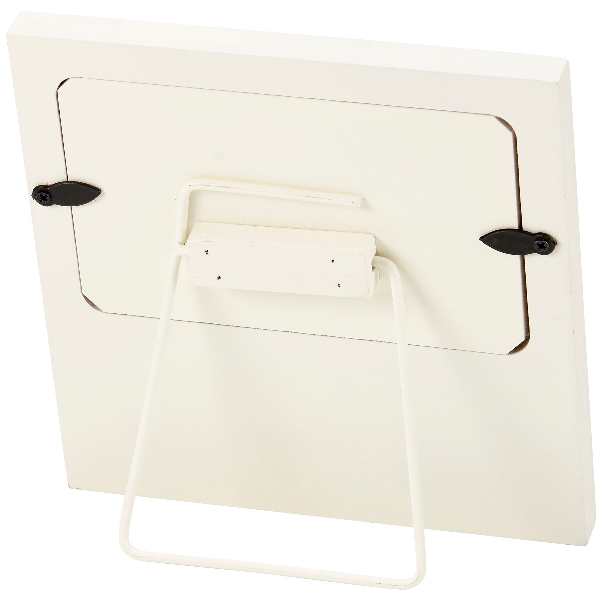A wooden photo frame from our Pet Collection displaying debossed paw print patterns on the top and bottom with distressed details and a heartwarming pet-themed sentiment that reads "All You Need Is Love & A Cat." Photo frame features coordinating cream color on the sides and back. Frame fits a 5 inch by 3 inch photo and can easily be replaced via clips on back. Our Love And A Cat photo frame is easy to display using the attached metal easel on back to free-stand. A pet-themed gift perfect for displaying favorite memories as everyday home décor.