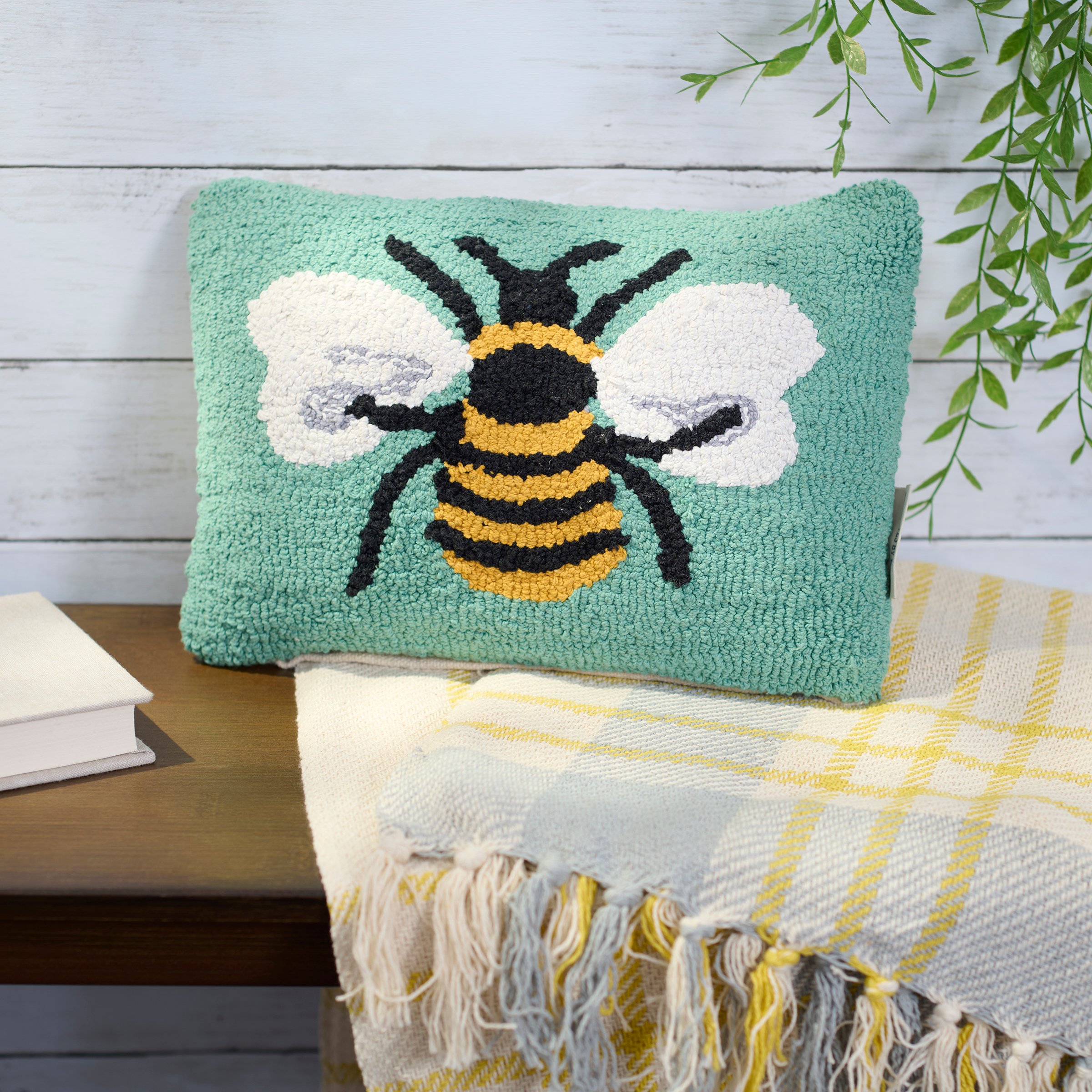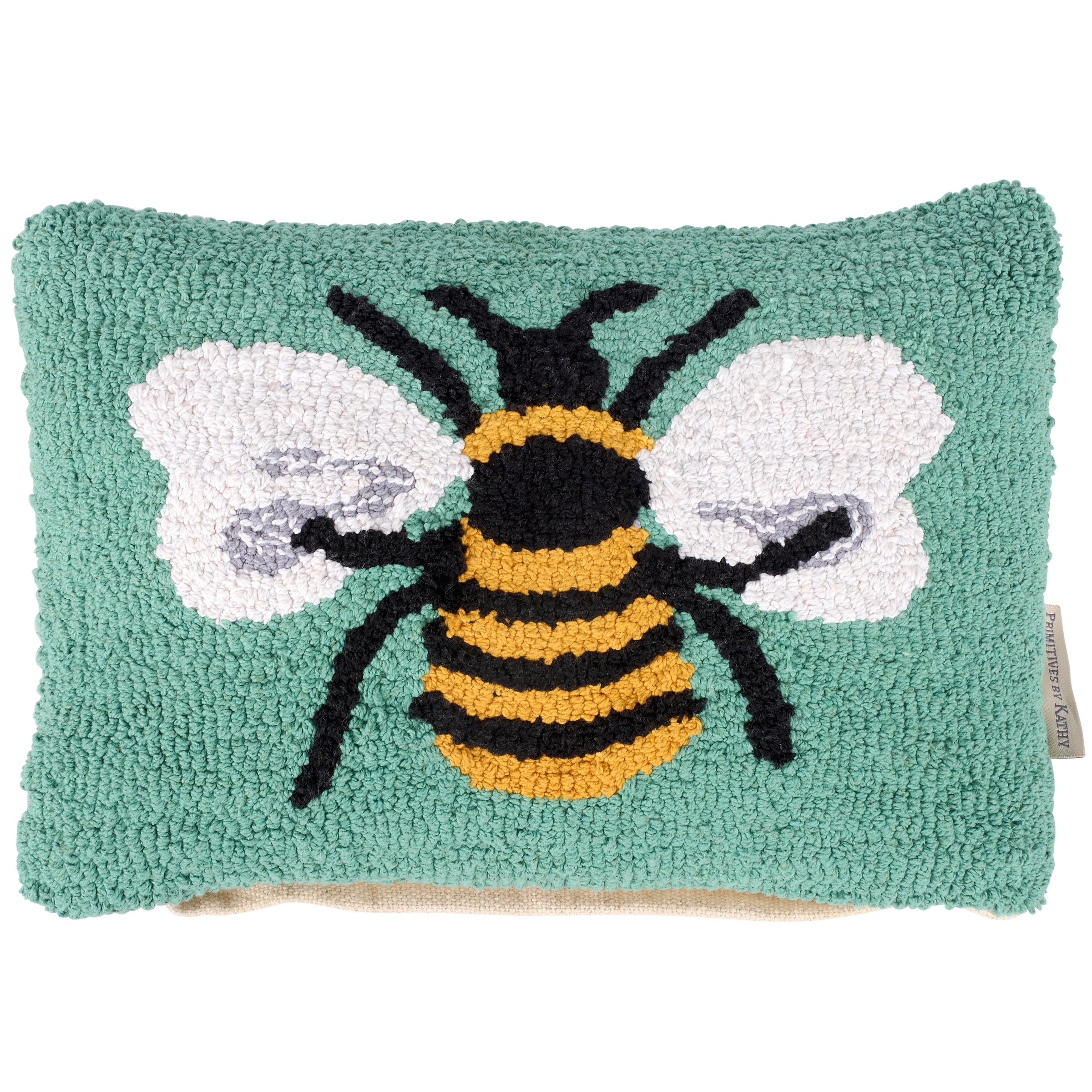 A decorative pillow from our Garden Collection displaying a vibrant bee inspired design made using a hooked cotton technique for a unique texture. This bee pillow features a zipper to easily remove and clean the machine-washable pillow cover. Our Hooked Bee pillow contains polyester filling and is shipped vacuum-sealed for protection and storage. A stylish bee-themed home accent perfect for adding personality to any room.
