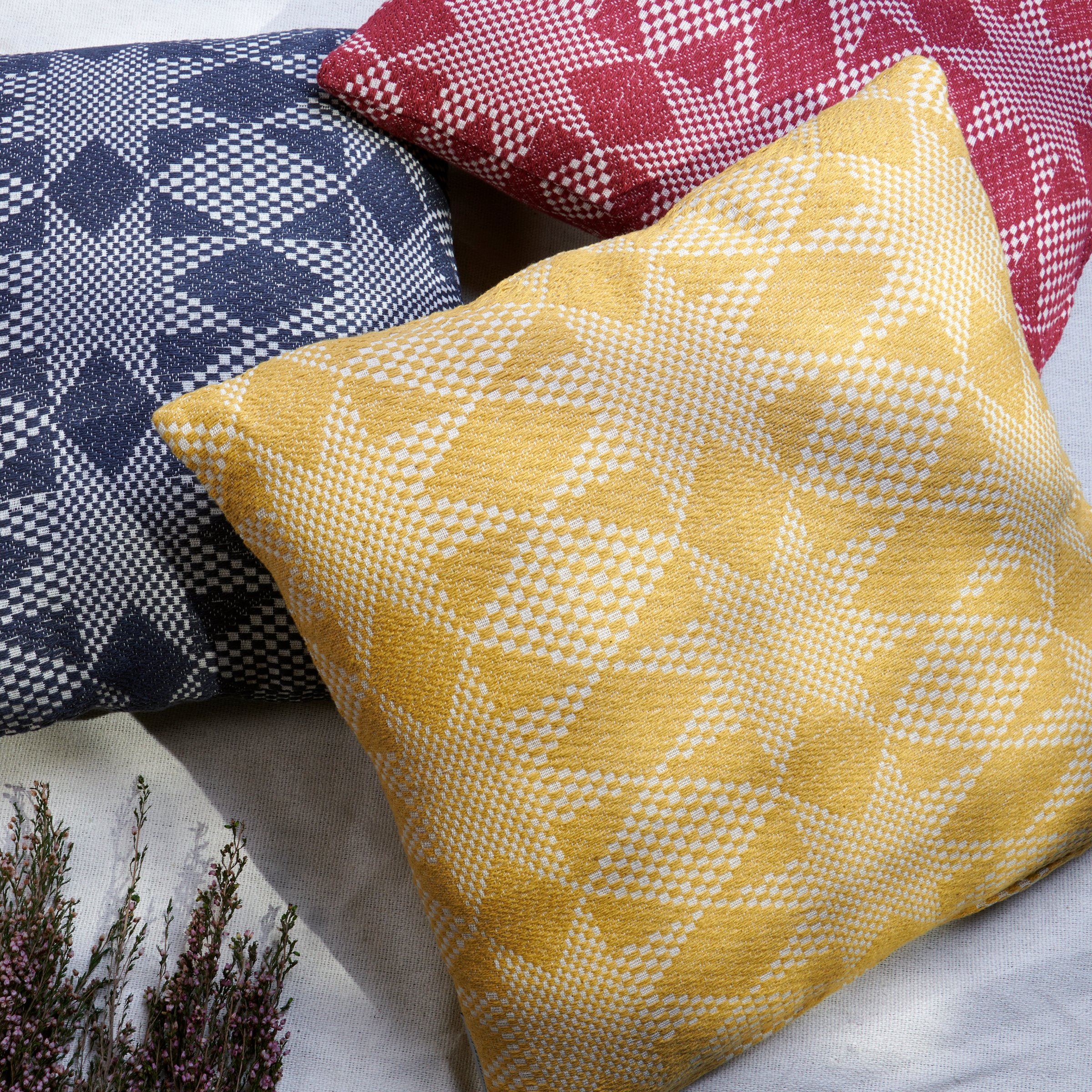 A decorative cotton throw pillow from our Primitive Collection displaying a double-sided design of star patterns in navy and cream. Our Navy Double Star pillow includes a zipper to easily remove and clean machine-washable pillow cover. Pillow contains polyester filling and is shipped vacuum-sealed for protection and storage. A rustic everyday home accent that adds style to any room.