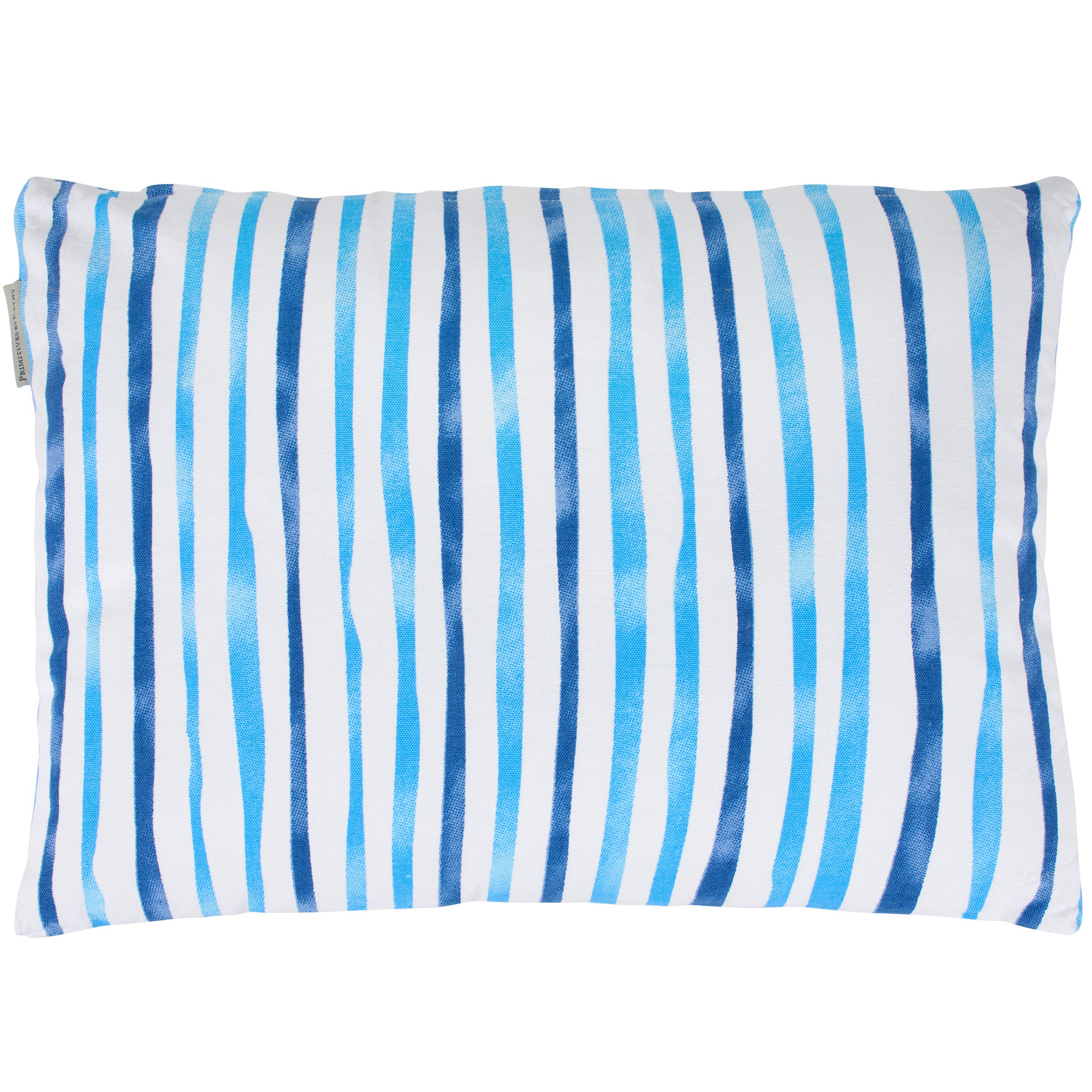 A decorative pillow from our Beach Collection featuring a double-sided design of beach blue stripes in a watercolor style. Our Watercolor Stripe pillow features a zipper to easily remove and clean machine-washable pillow cover. Beach pillow contains polyester filling and is shipped vacuum-sealed for protection and storage. A fun home accent perfect for adding beach style to any room.