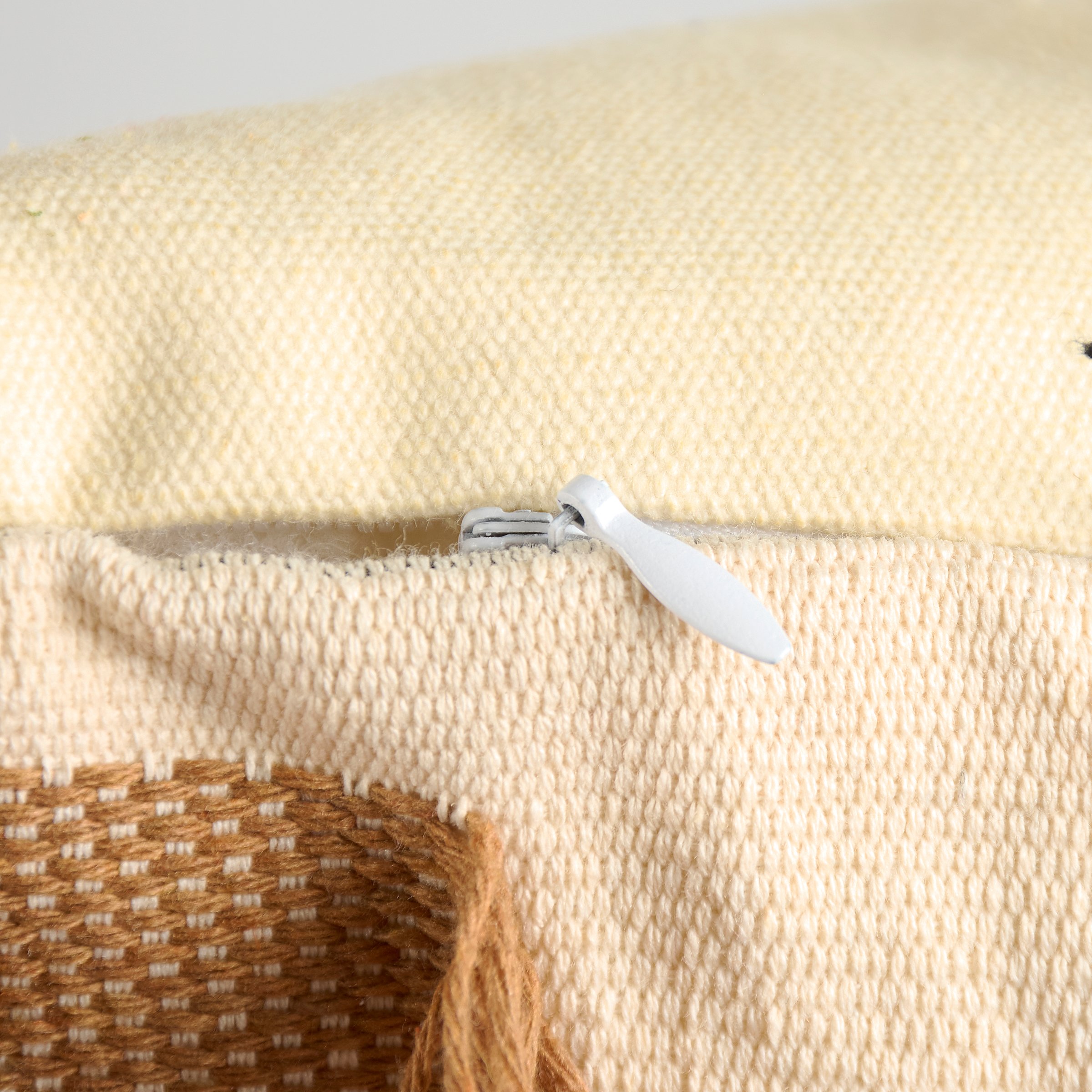 A decorative cotton pillow from our Western Collection displaying a western inspired design with fringe stitched details and coordinating color on the back. Our Western Fringe pillow includes a zipper to easily remove and clean machine-washable pillow cover. Western pillow contains polyester filling and is shipped vacuum-sealed for protection and storage. A western home accent that adds style to any room.