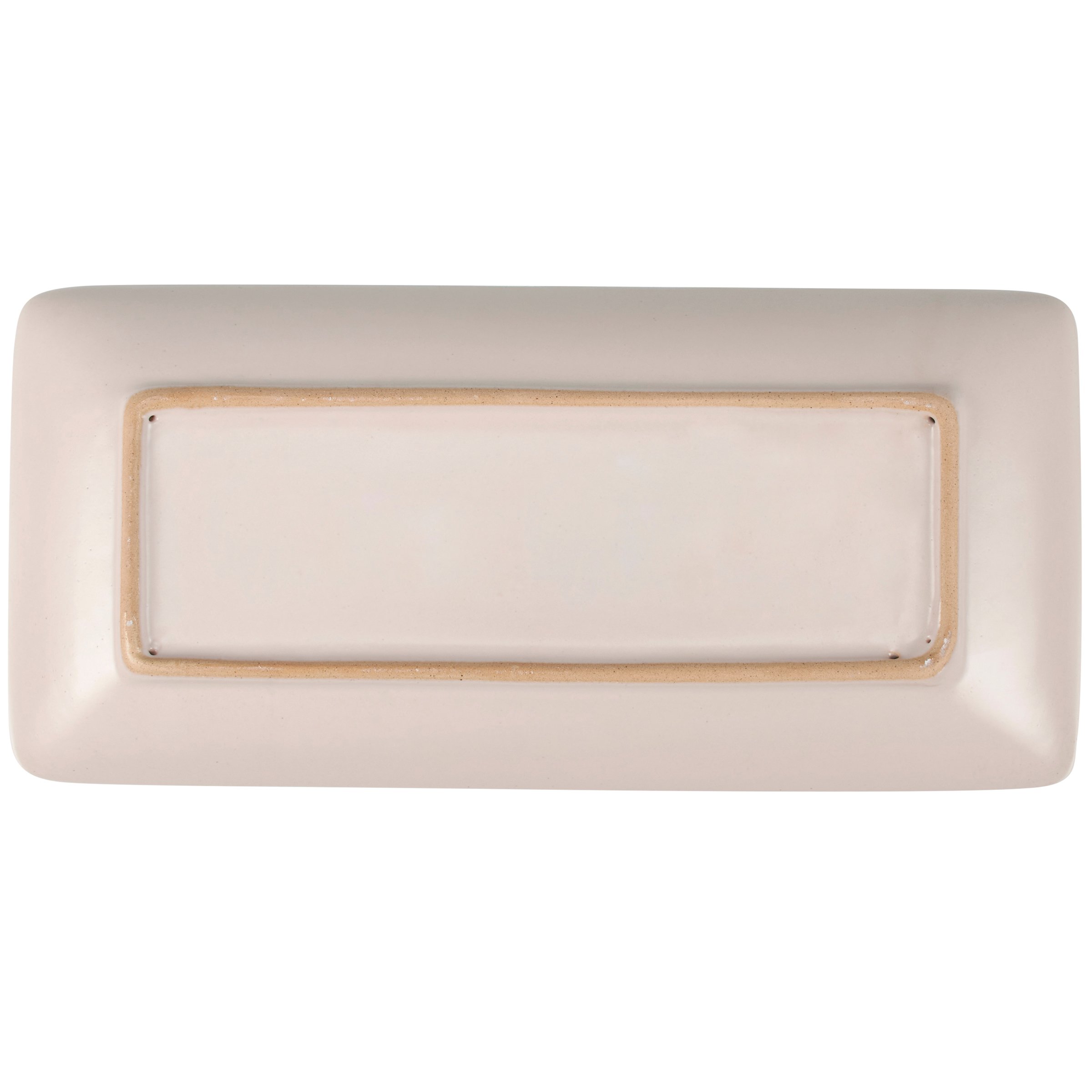 A durable stoneware platter from our Fall & Harvest Collection displaying a cream color with a debossed brown fall leaf pattern across. Platter features bare ceramic along the rim. Our Fall Leaves rectangular platter is microwave, dishwasher, and food safe for convenient use. A piece of rustic tableware perfect for seasonal gatherings.