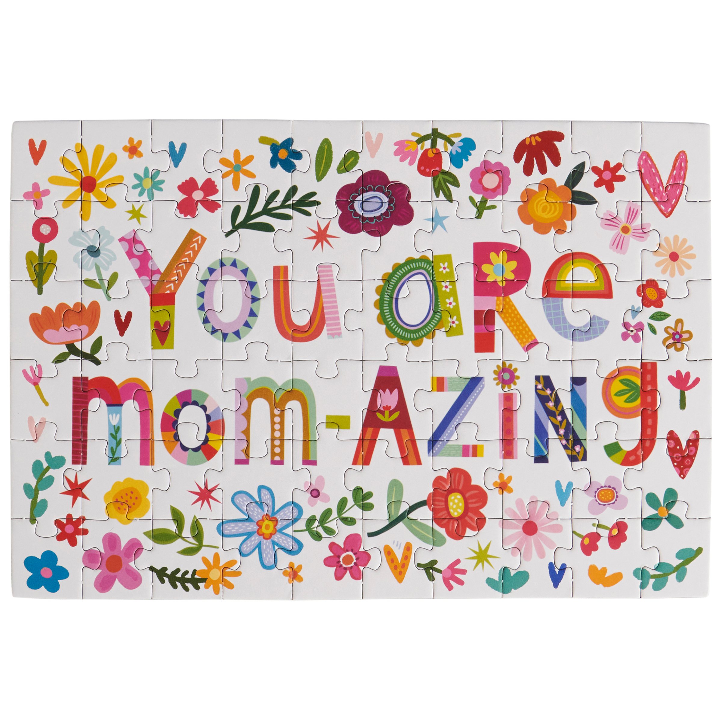 A greeting card puzzle from our Mother's Day Collection combining the excitement of receiving a greeting card with the joy of completing a puzzle. This puzzle card includes a blank space on the back to write a personal message, or express creativity in any way, before breaking up the puzzle for someone special to piece together the fun inside! We get them started with a vibrant hand illustrated design of florals and mom inspired sentiment that reads "You Are Mom-azing." After personalizing the back, they break up the 60 piece puzzle and place the pieces in the included kraft envelope. Puzzle card and envelope is packaged in a polybag with an insert displaying easy-to-follow instructions. Due to the shape and weight, extra postage is required when mailing puzzle cards. Our Mom-azing puzzle card is perfect for Mother's Day or any moment to reach out to friends and family.